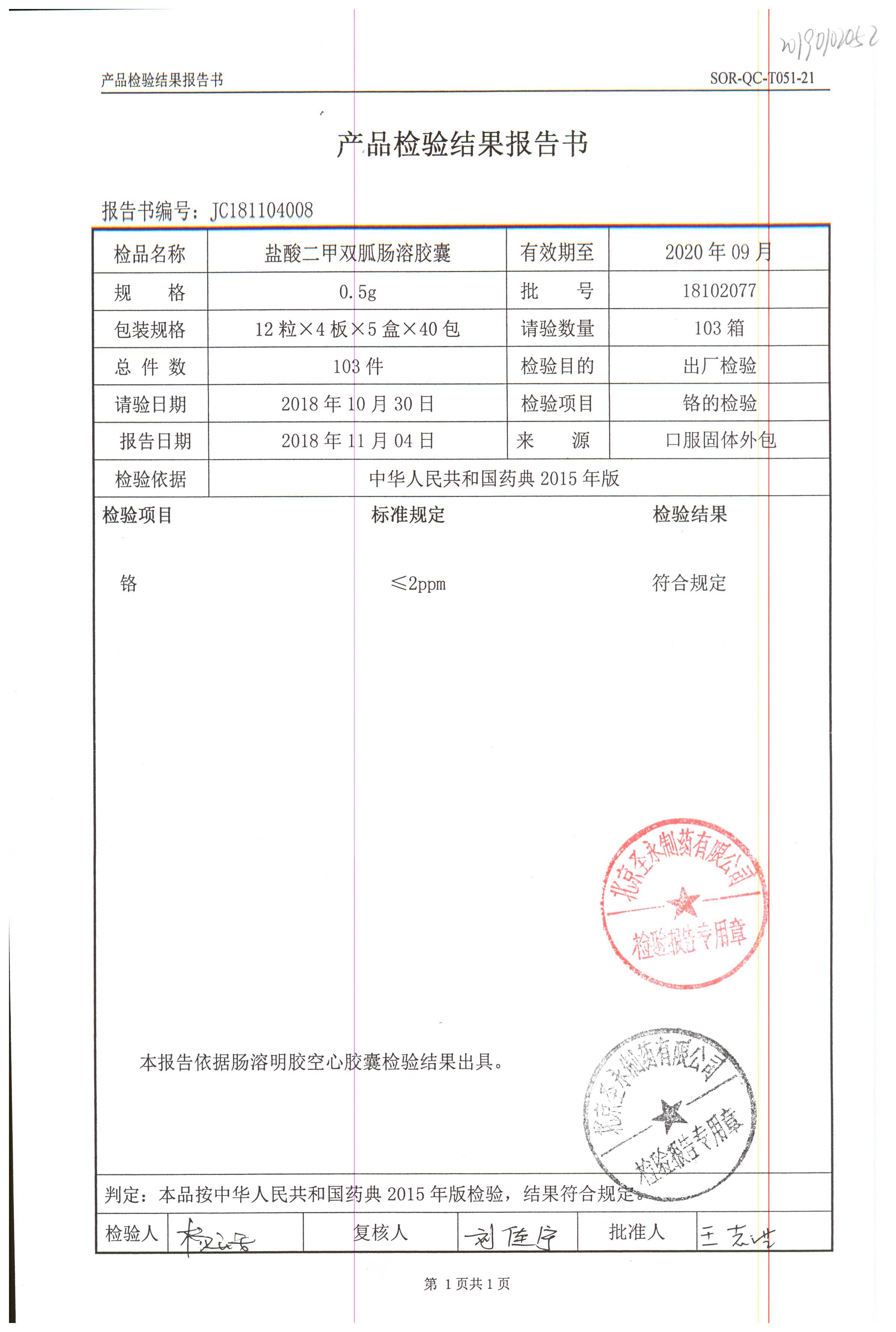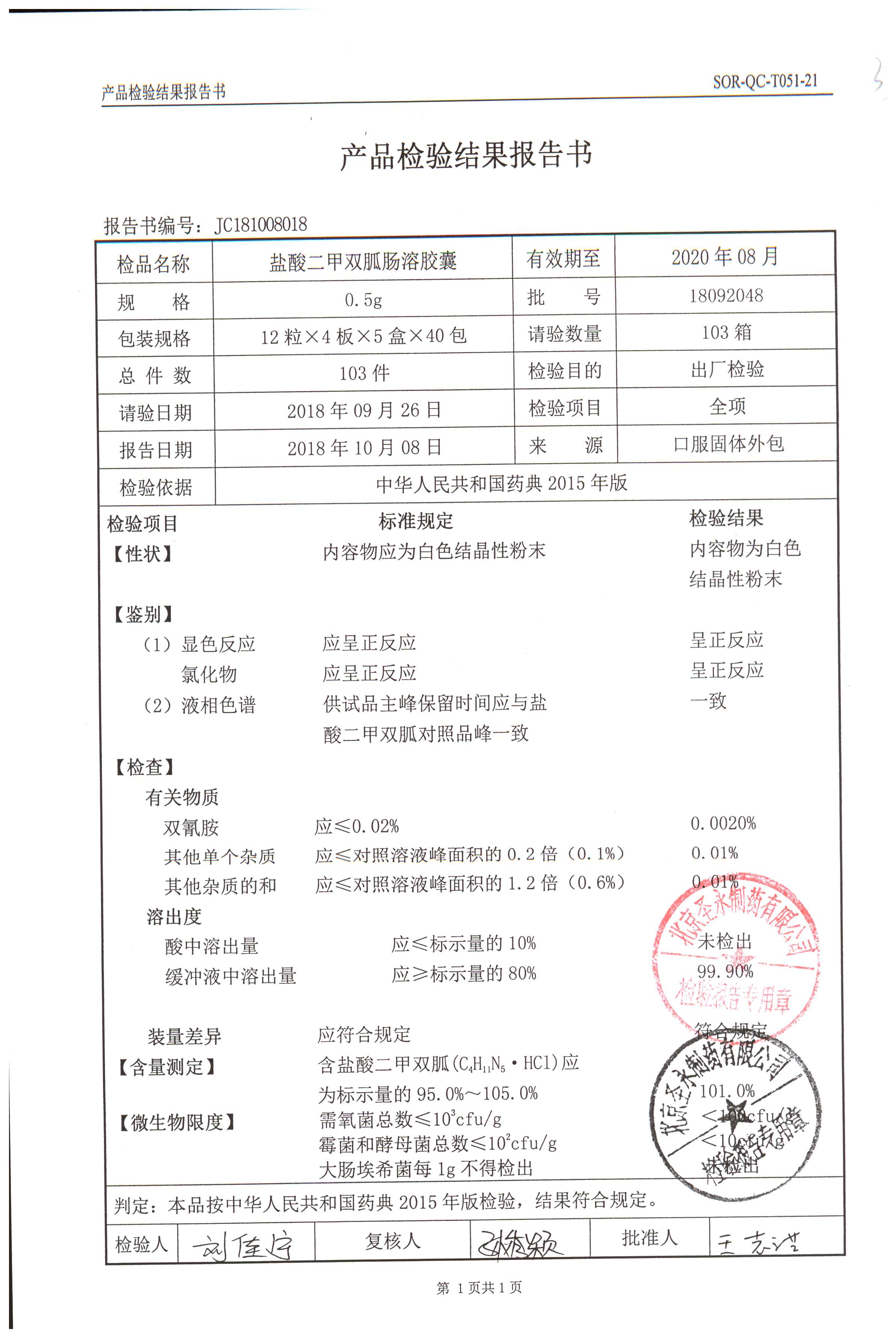 | 鹽酸二甲雙胍腸溶膠囊 | 0.5g*48粒 | 18092048(2/2) | 查看詳情 |
