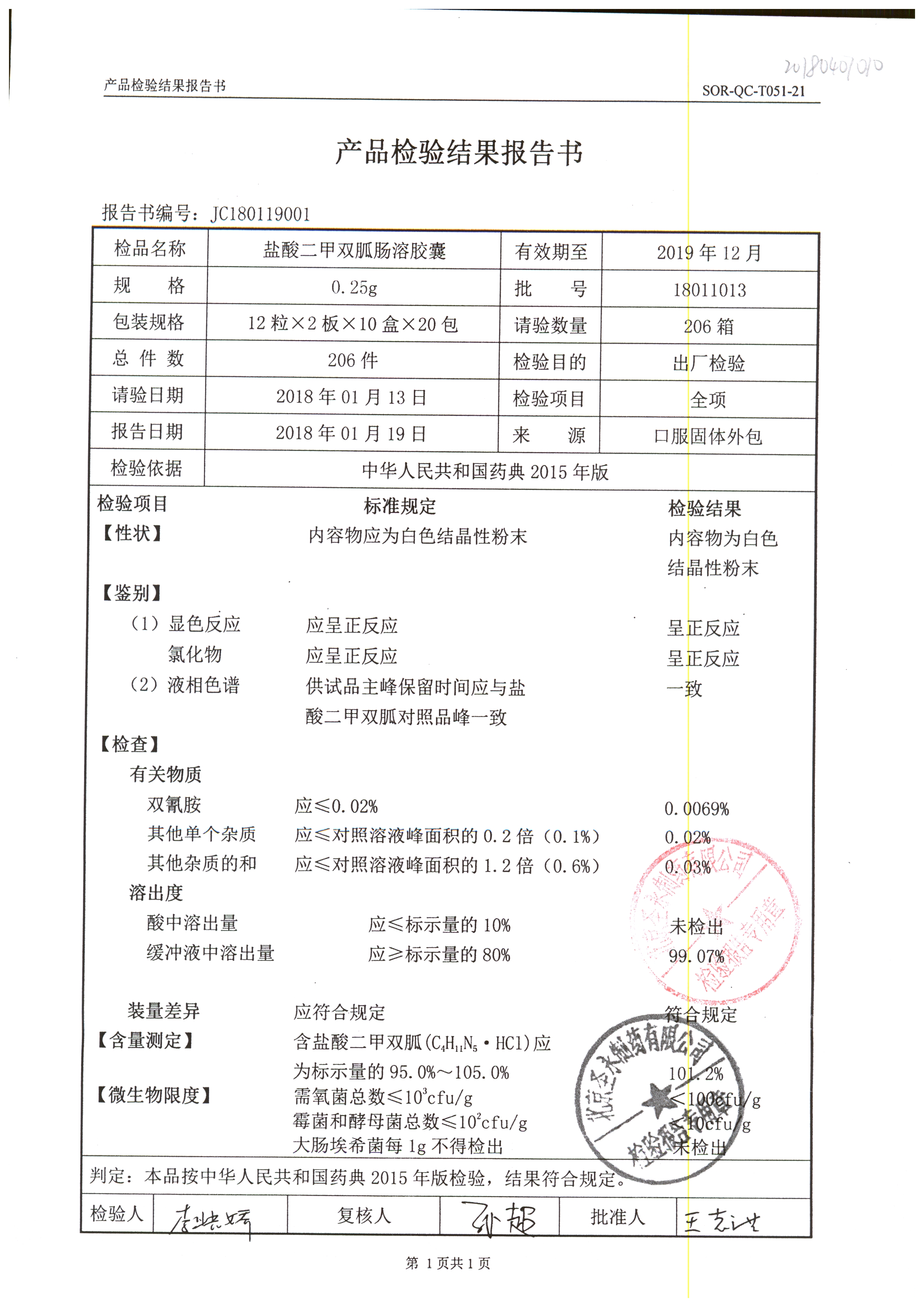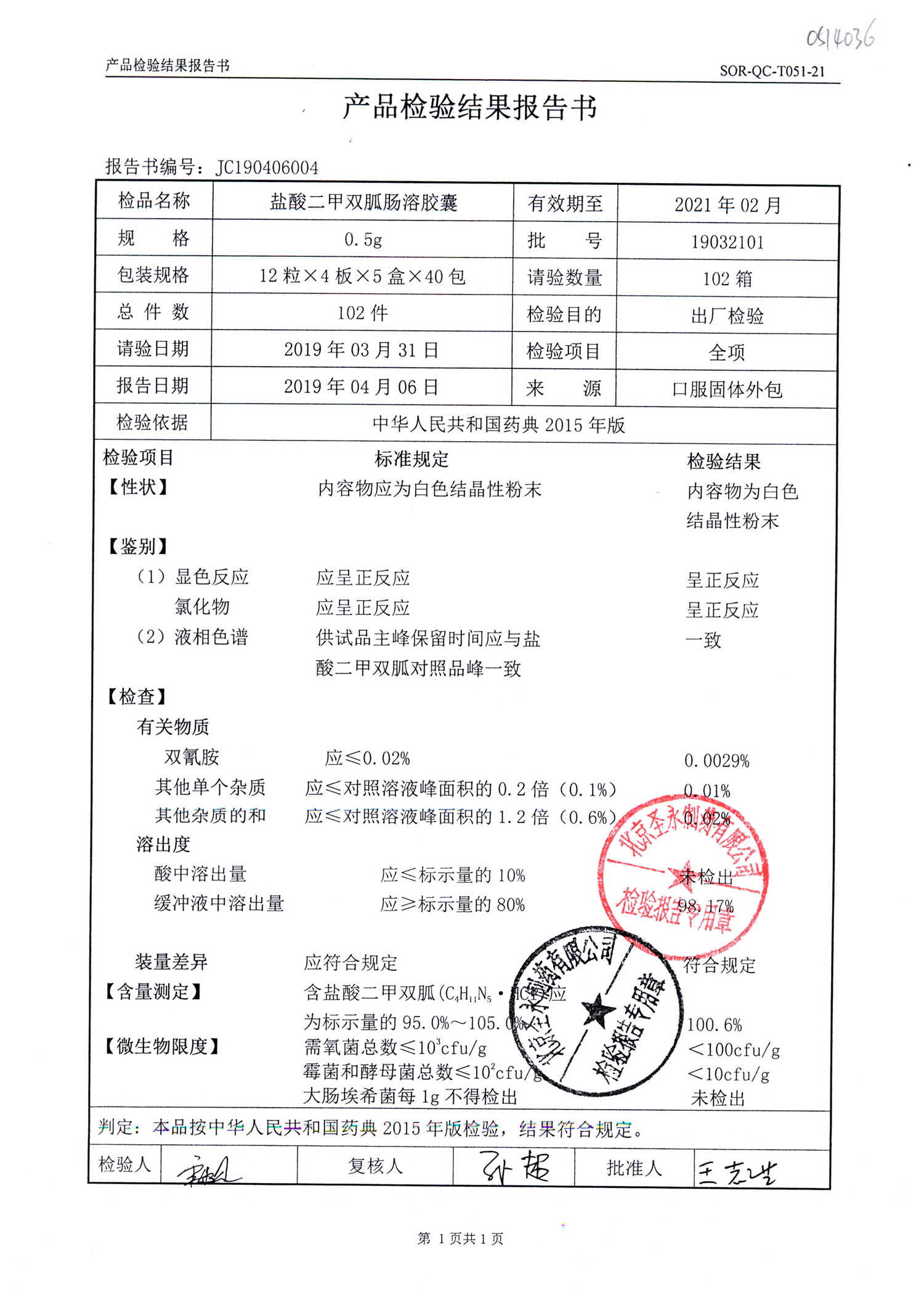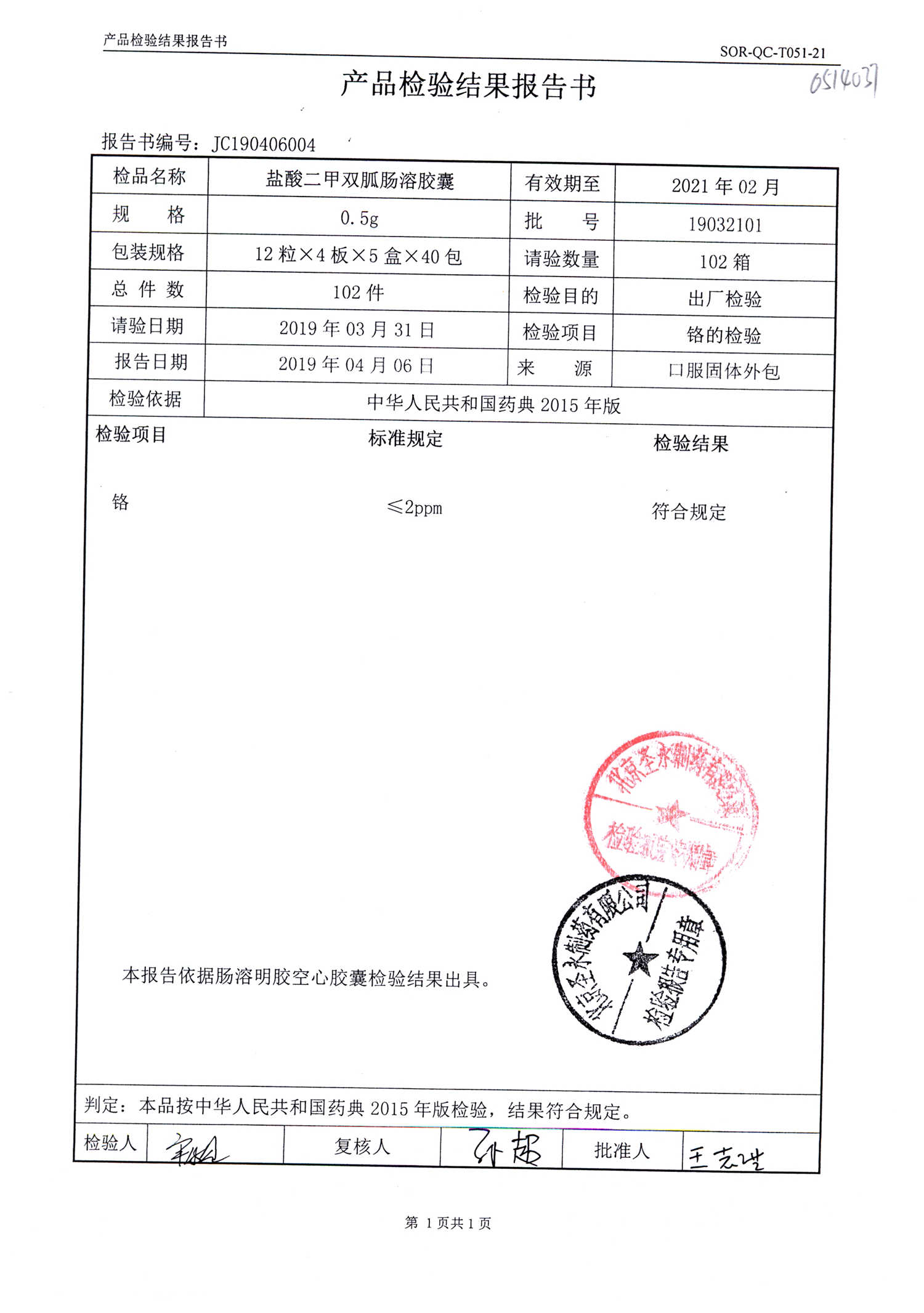 | 鹽酸二甲雙胍腸溶膠囊 | 0.5g*48粒 | 19032101(1/2) | 查看詳情 |