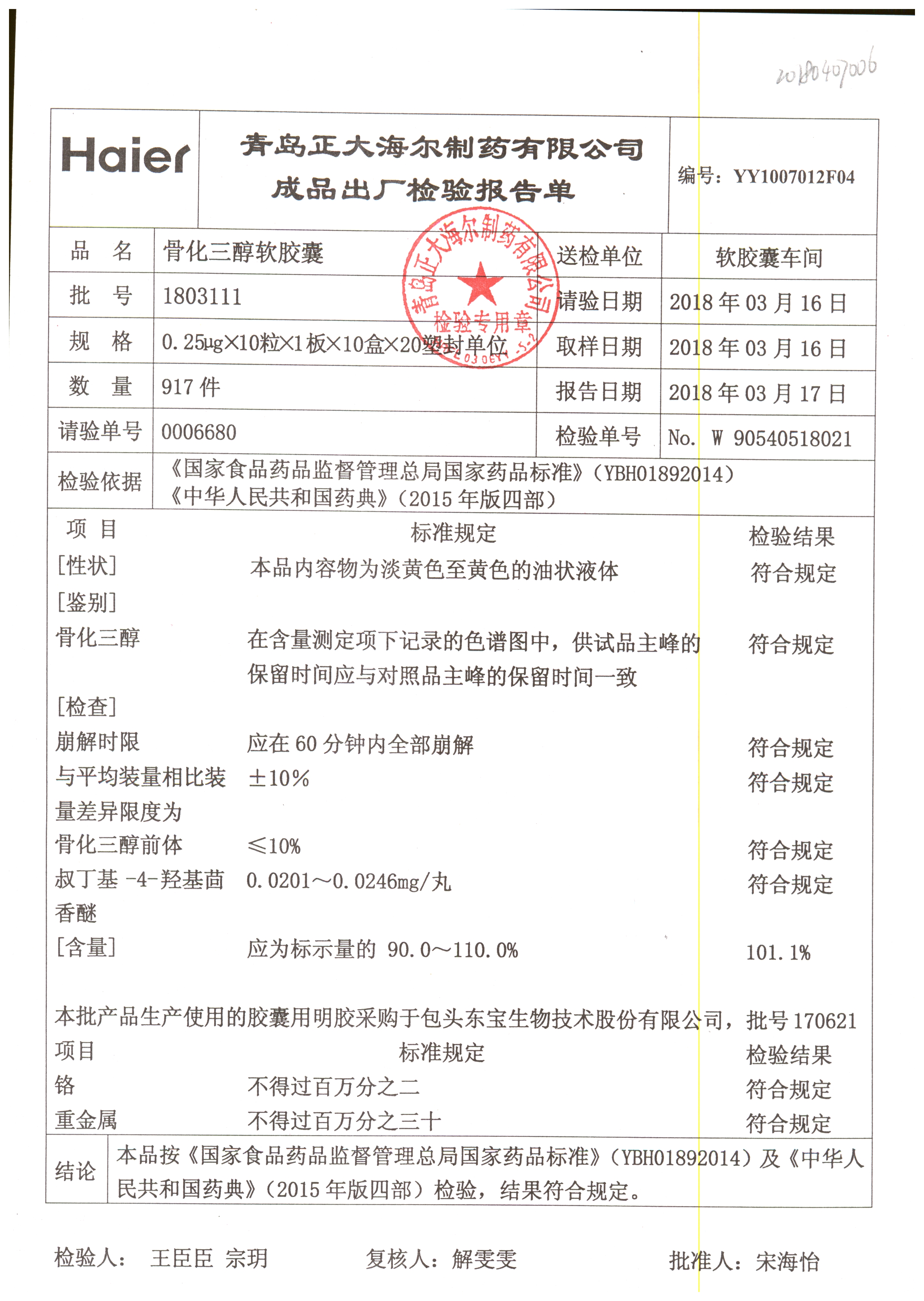 | 骨化三醇軟膠囊 | 0.25ug*10粒 | 1807011 | 查看詳情 |