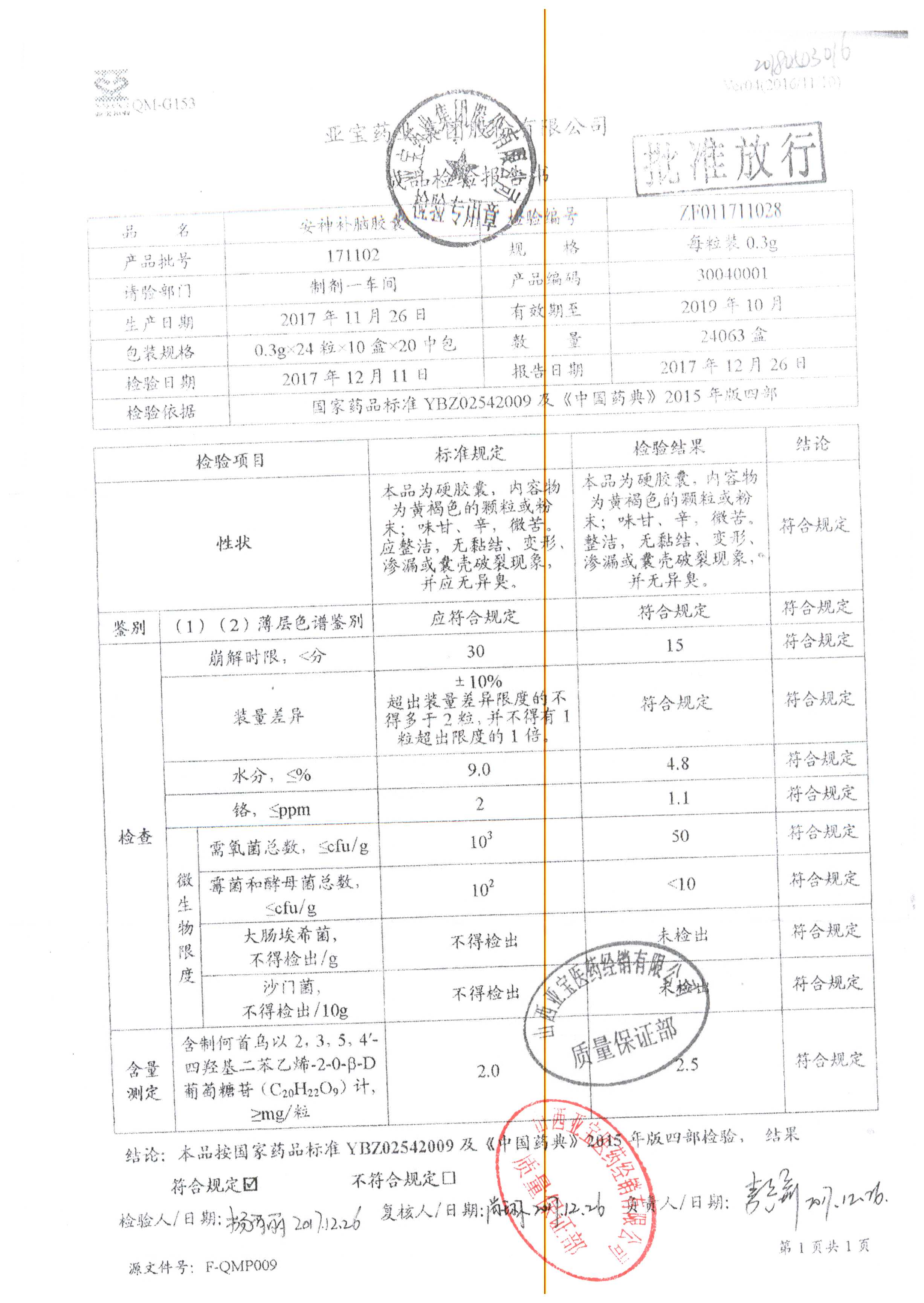 安神補(bǔ)腦膠囊 0.3g*24s 181201(1/2) 查看詳情