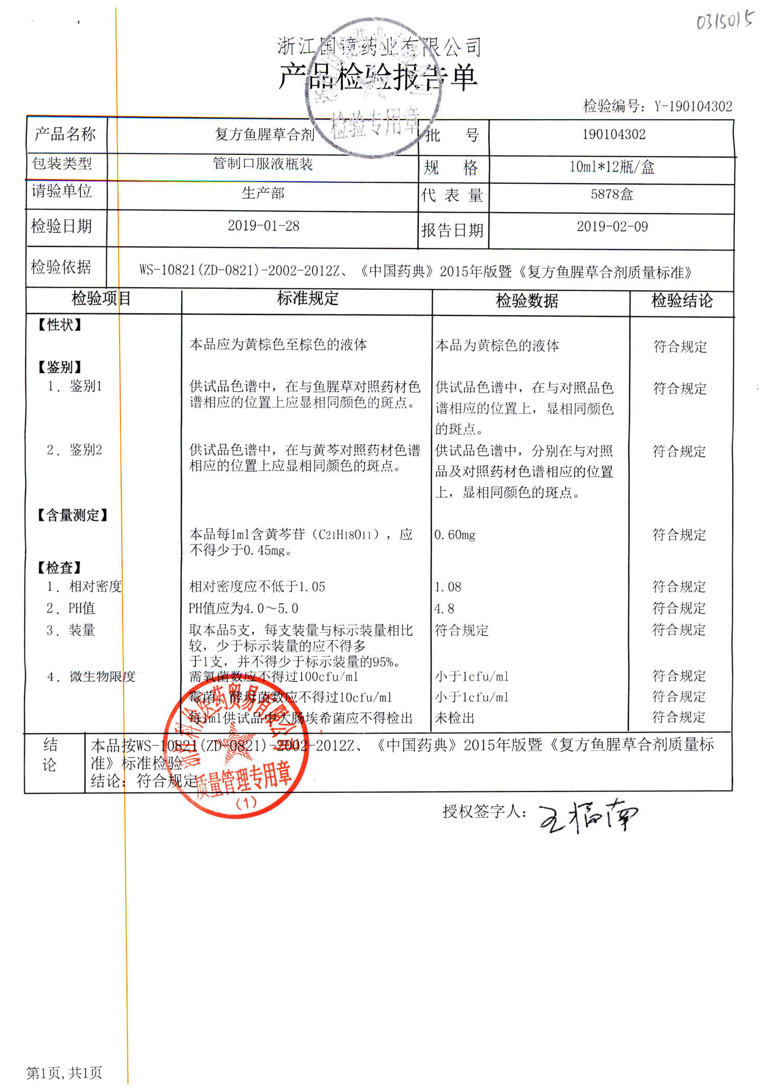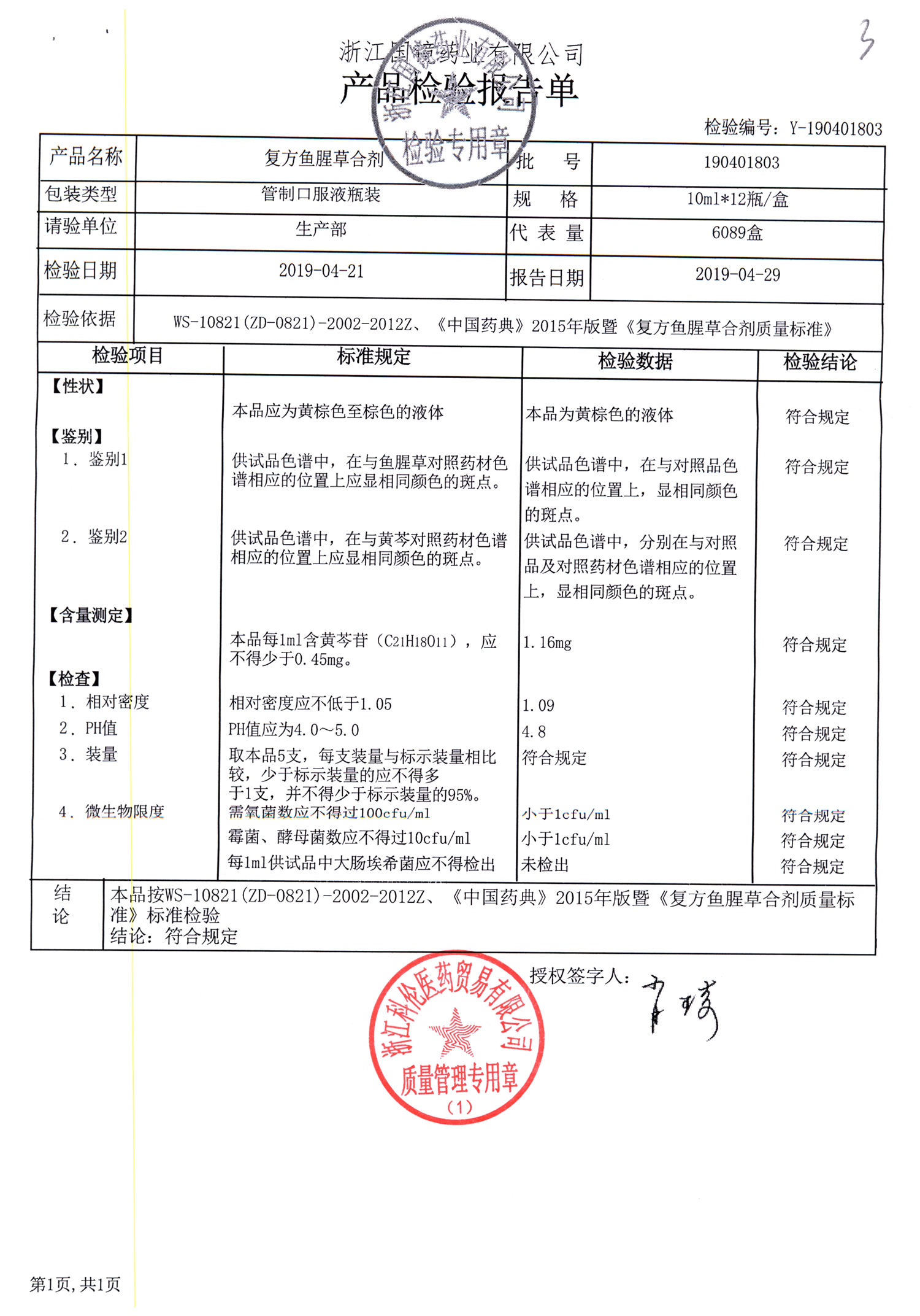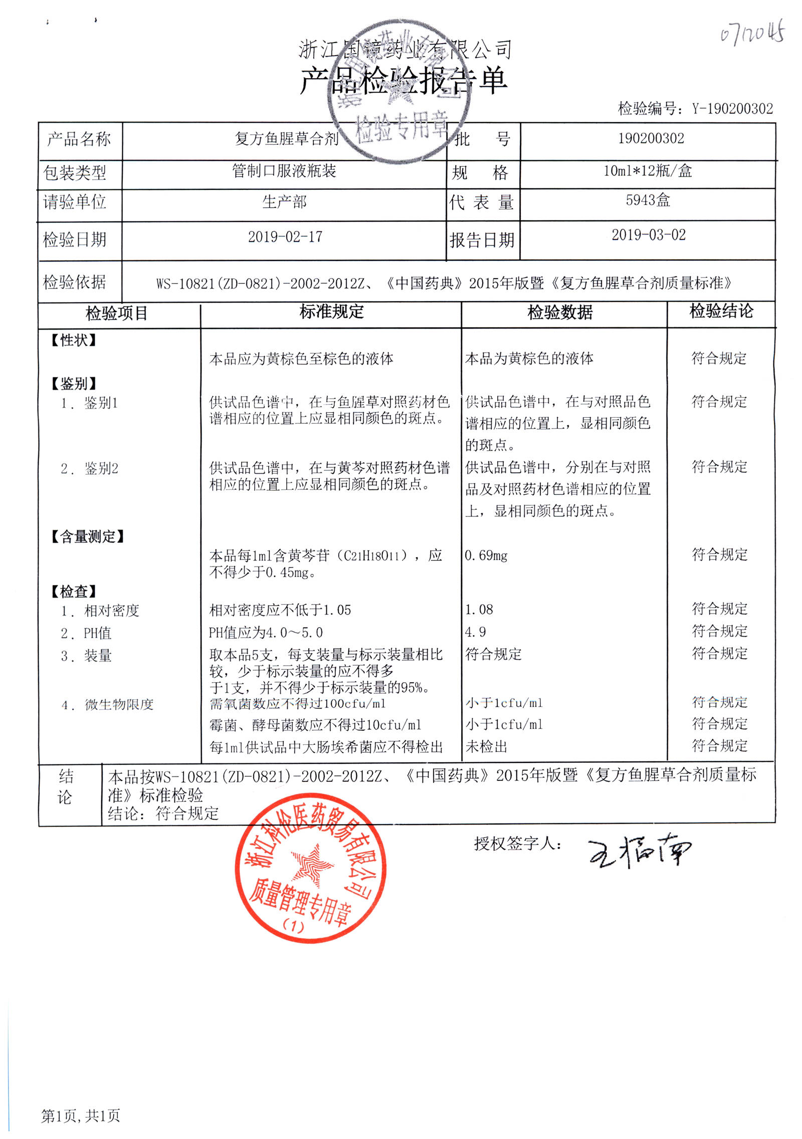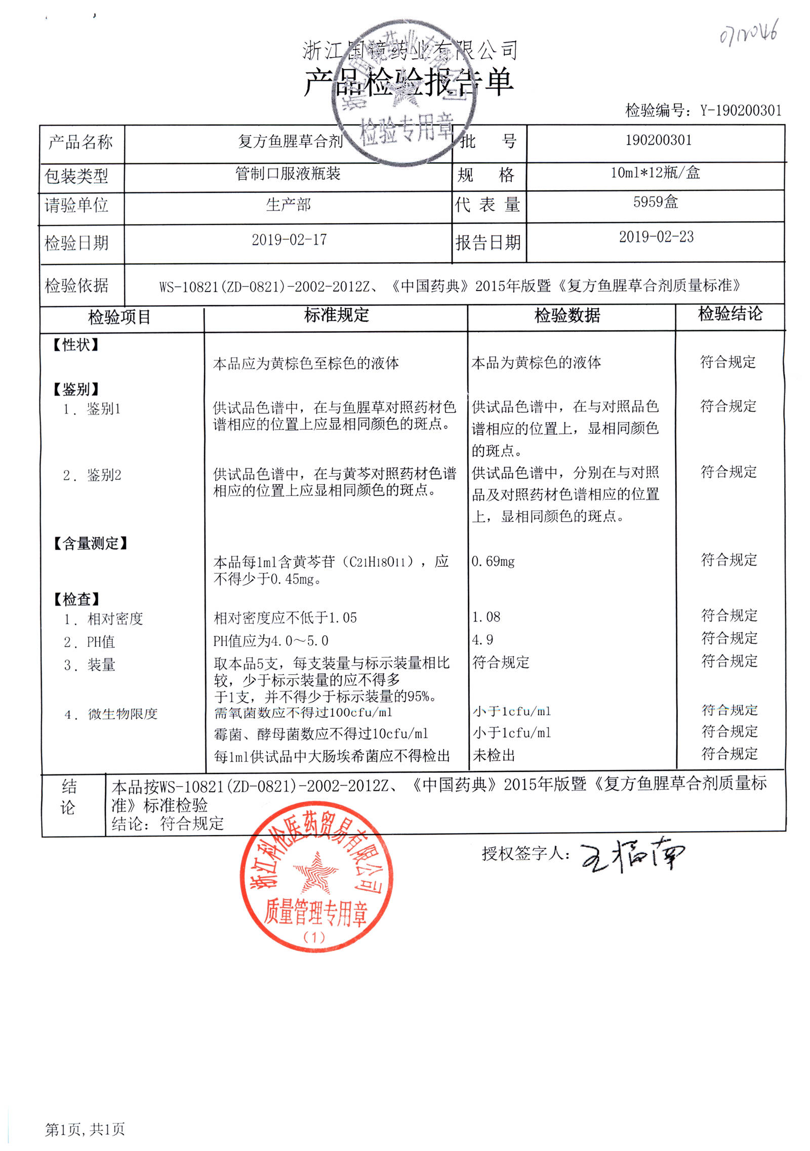| 復(fù)方魚(yú)腥草合劑 | 10ml | 190200301 | 查看詳情 |