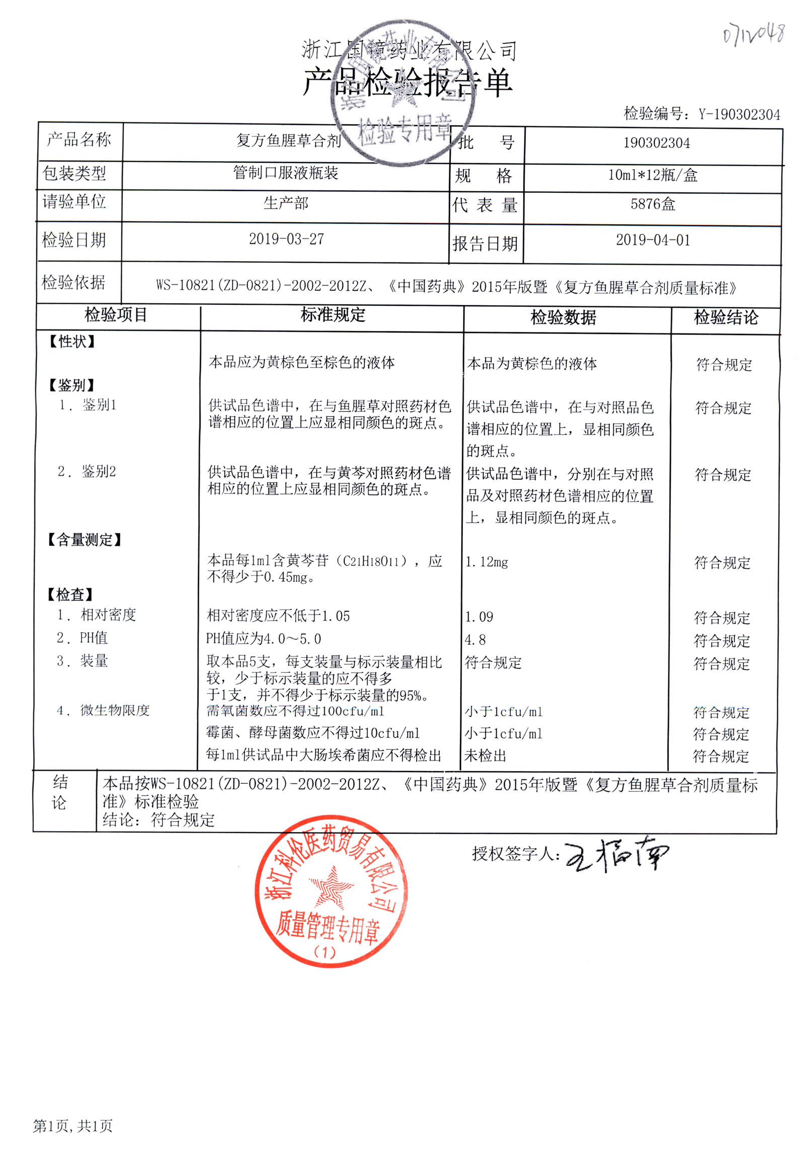 | 復(fù)方魚(yú)腥草合劑 | 10ml | D1907010B | 查看詳情 |