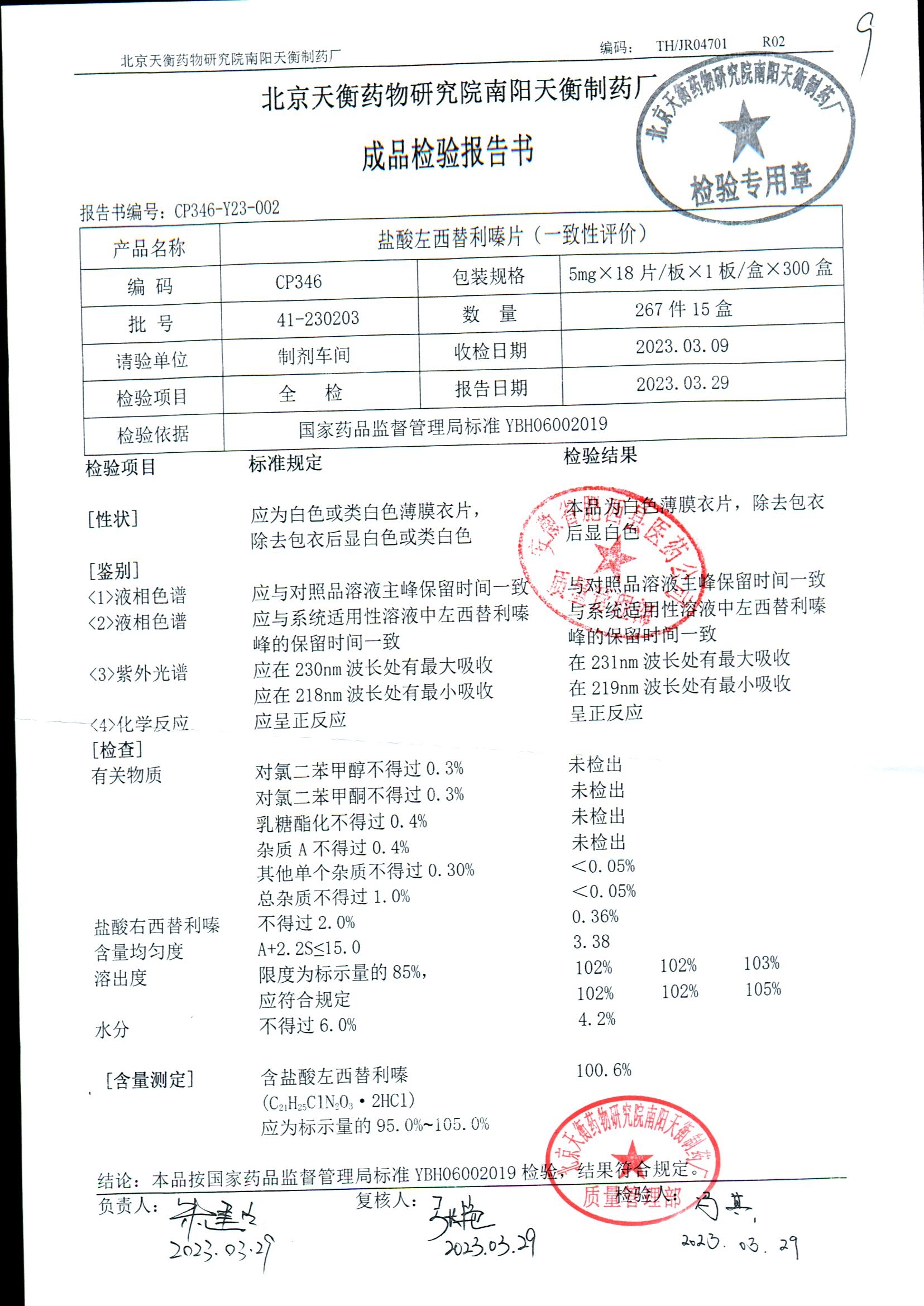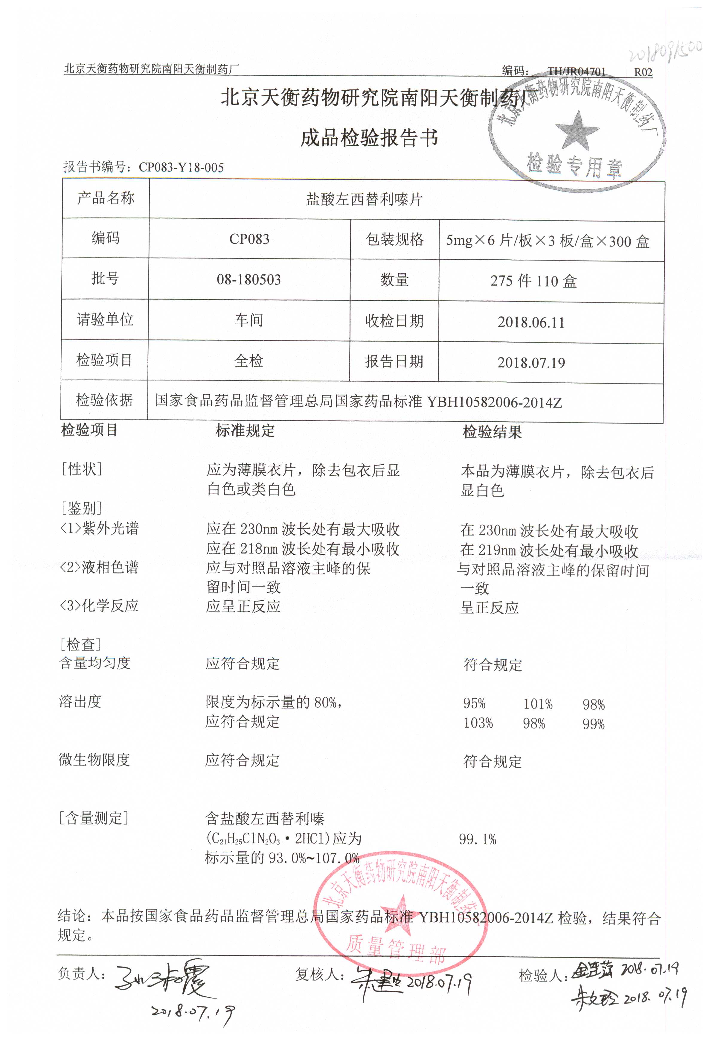 | 鹽酸左西替利嗪片 | 5mg*18s | 08-190801 | 查看詳情 |