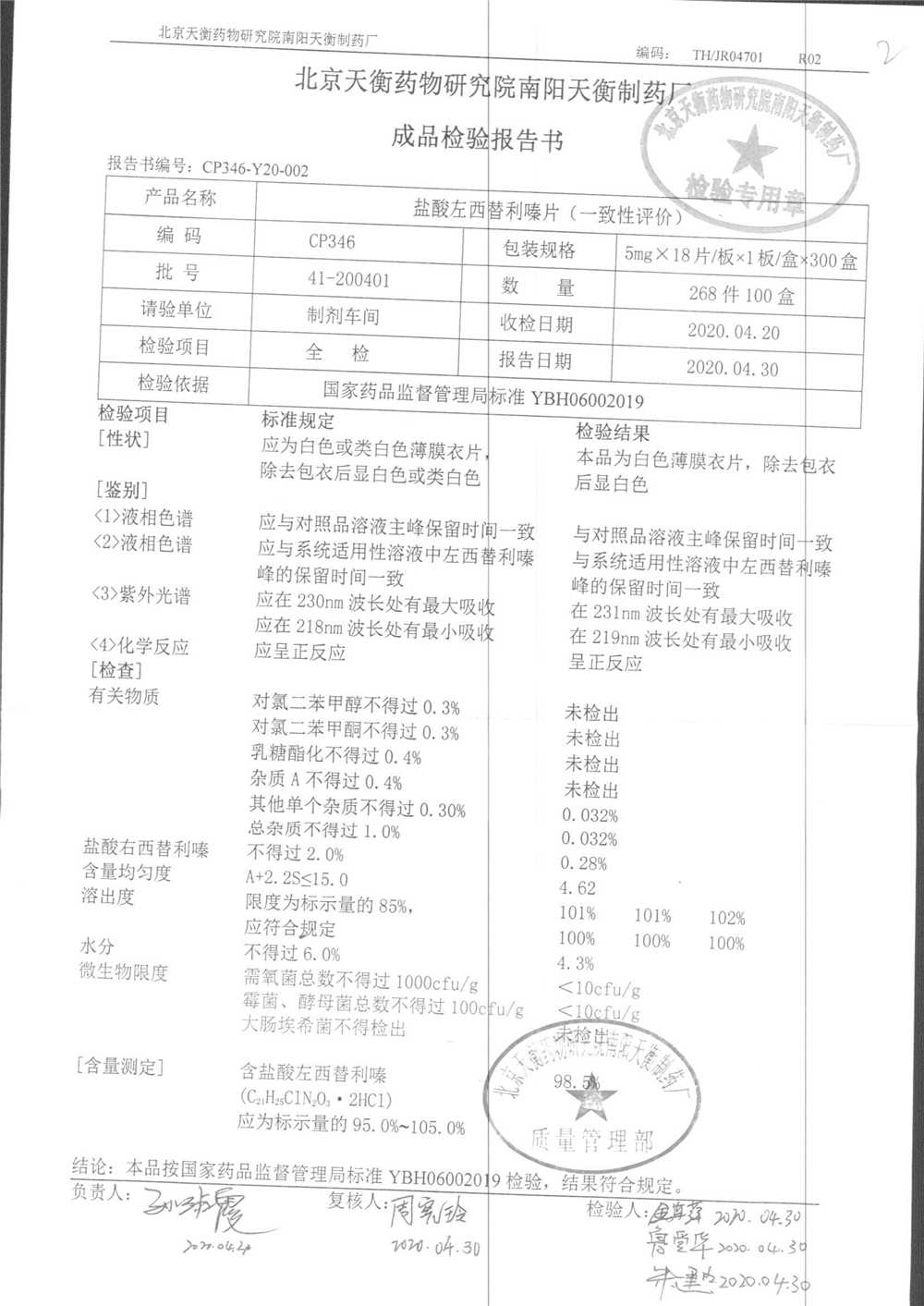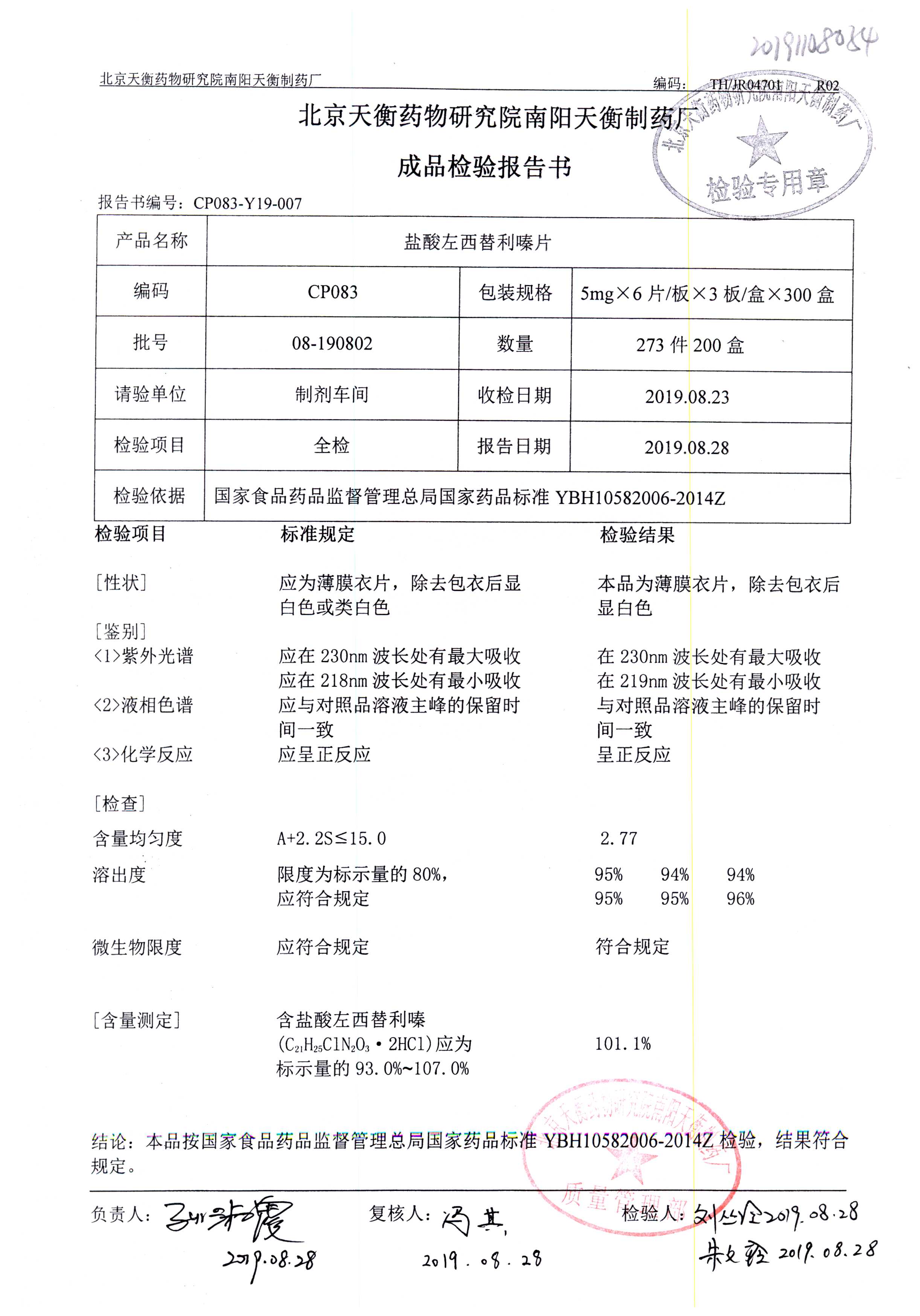 | 鹽酸左西替利嗪片 | 5mg*18s | 08-190802 | 查看詳情 |
