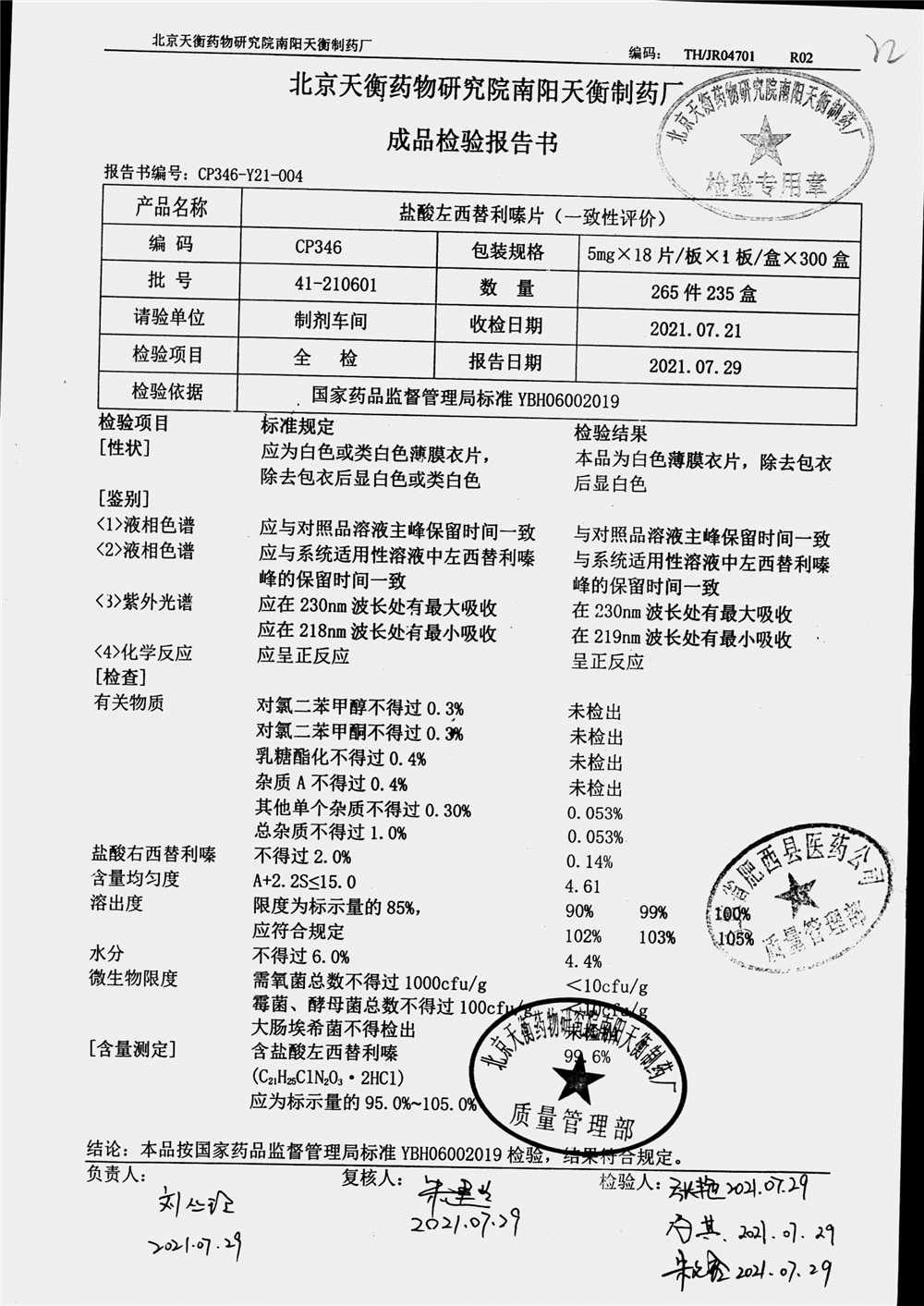 | 鹽酸左西替利嗪片 | 5mg*18s | 41-210802 | 查看詳情 |