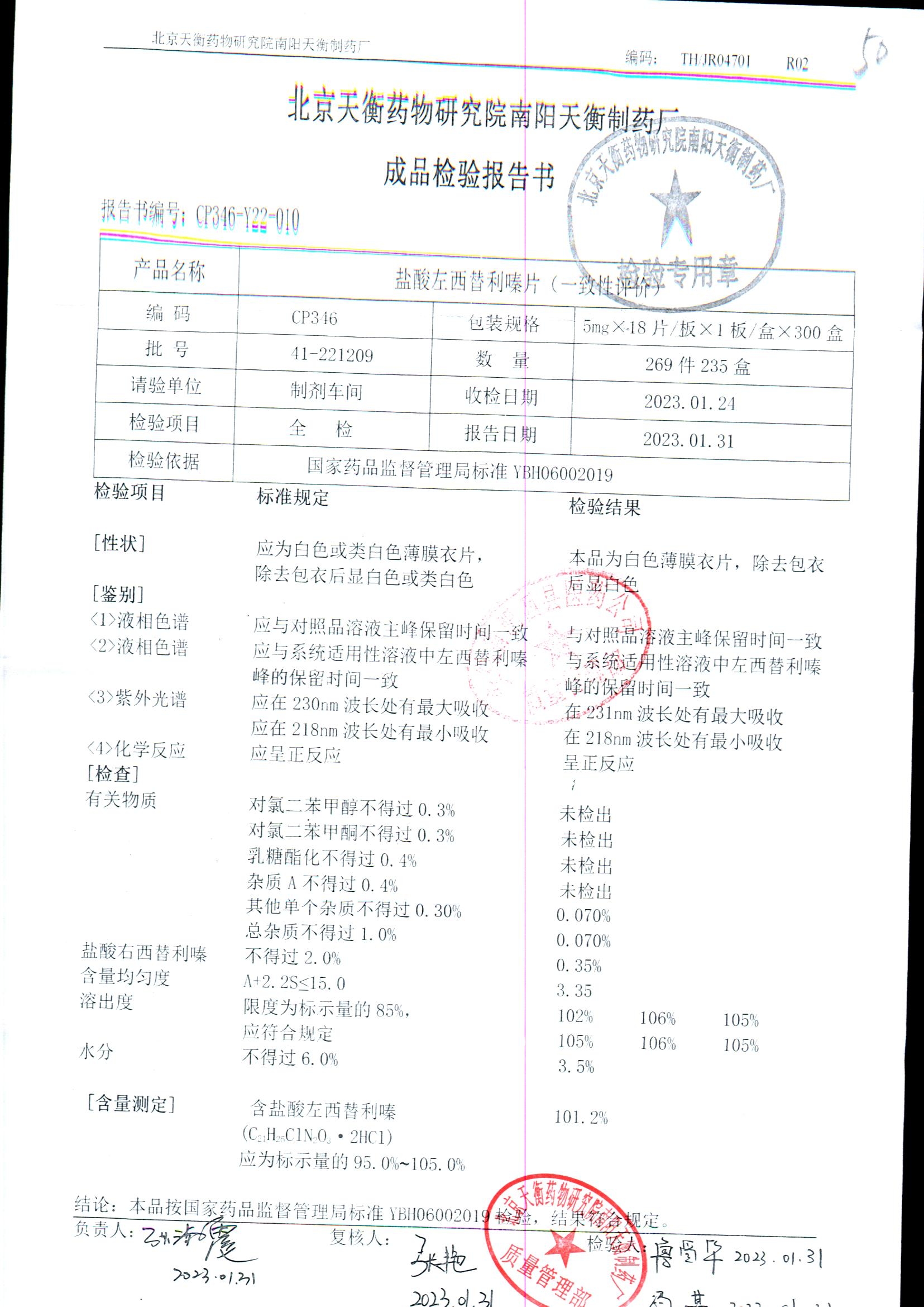 | 鹽酸左西替利嗪片 | 5mg*18s | 41-210401 | 查看詳情 |
