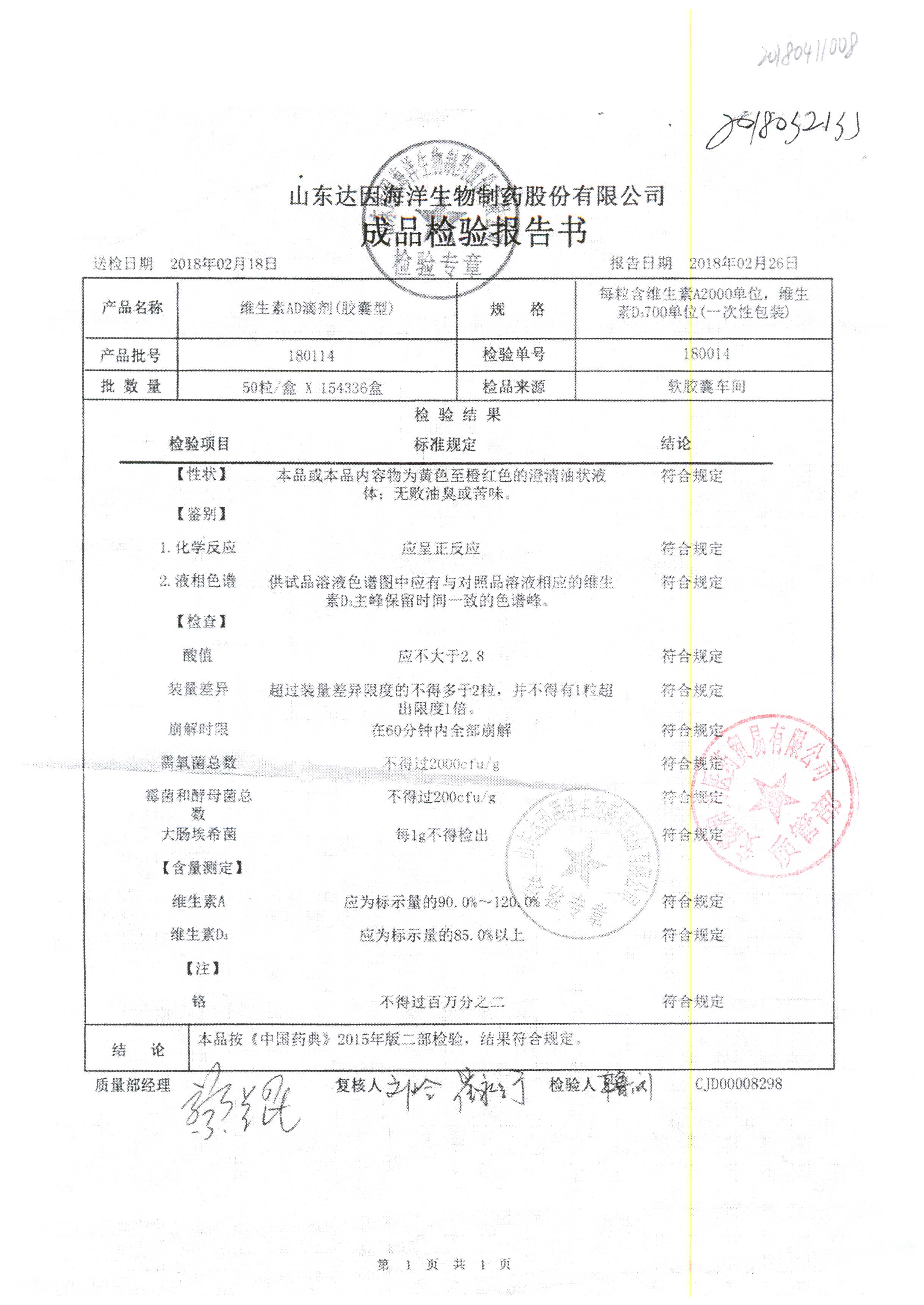 | 維生素AD滴劑(膠囊型) | 2000單位:700單位*50粒 | 180114 | 查看詳情 |