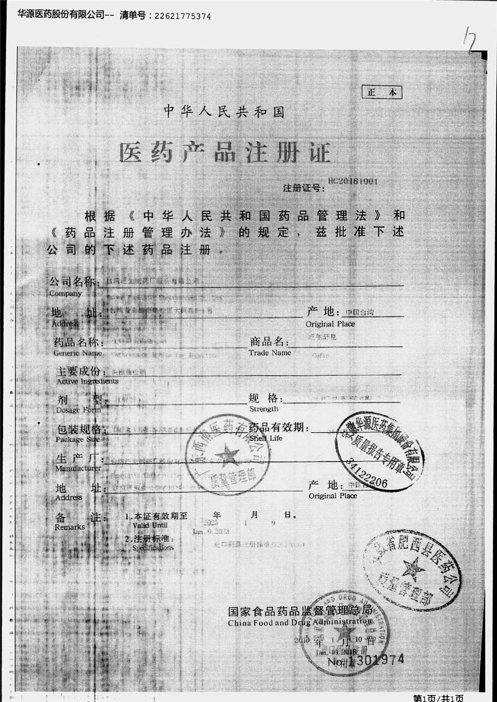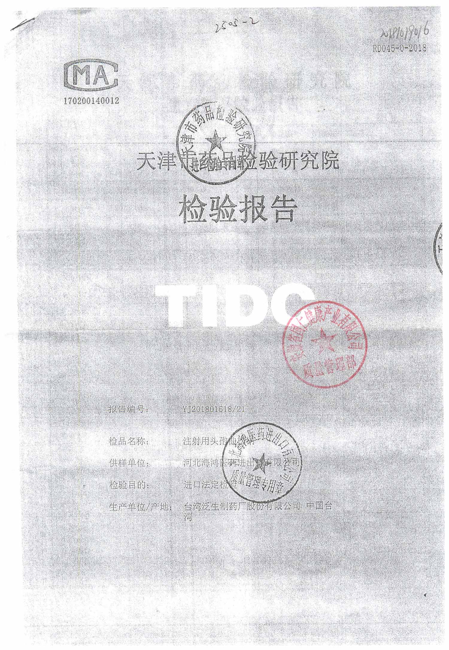 | 名稱 | 規(guī)格 | 批號(hào) | 藥檢報(bào)告 |