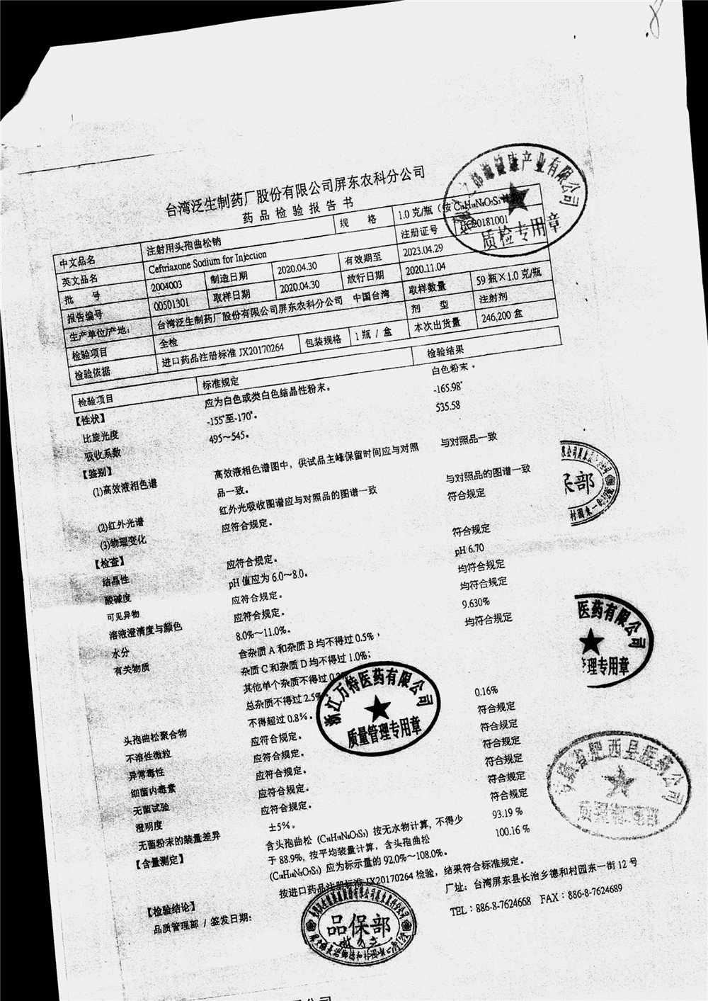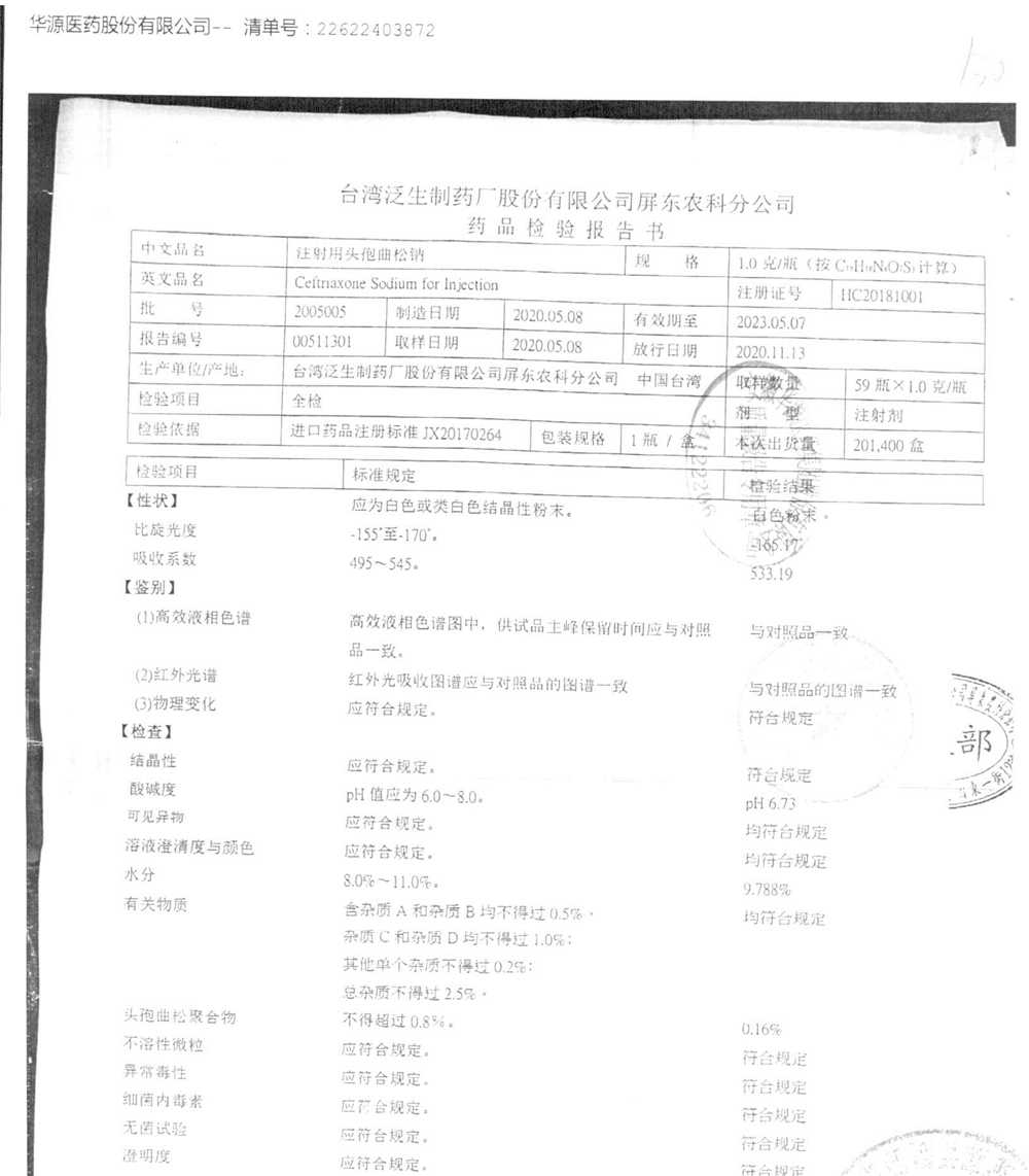 | 注射用頭孢曲松鈉 | 2.0g | 2005005(4/4) | 查看詳情 |