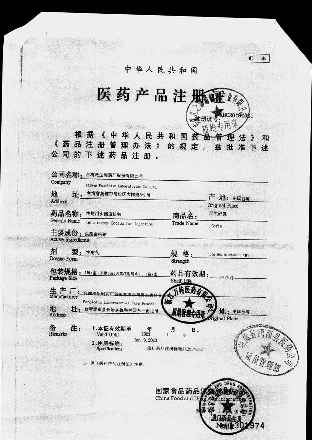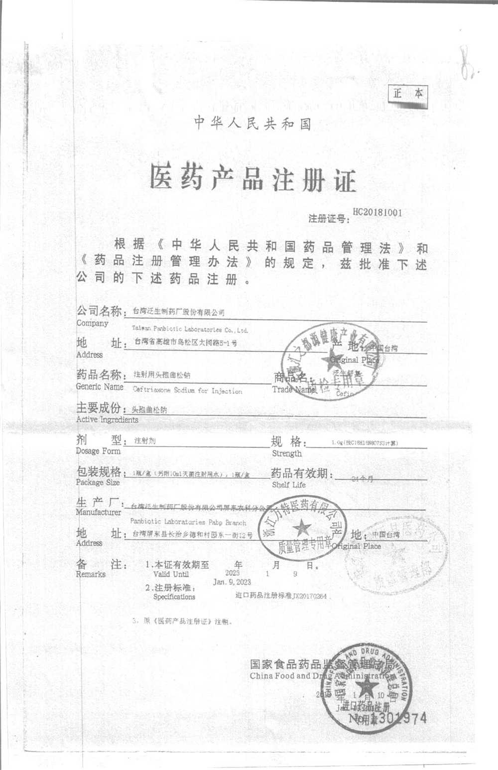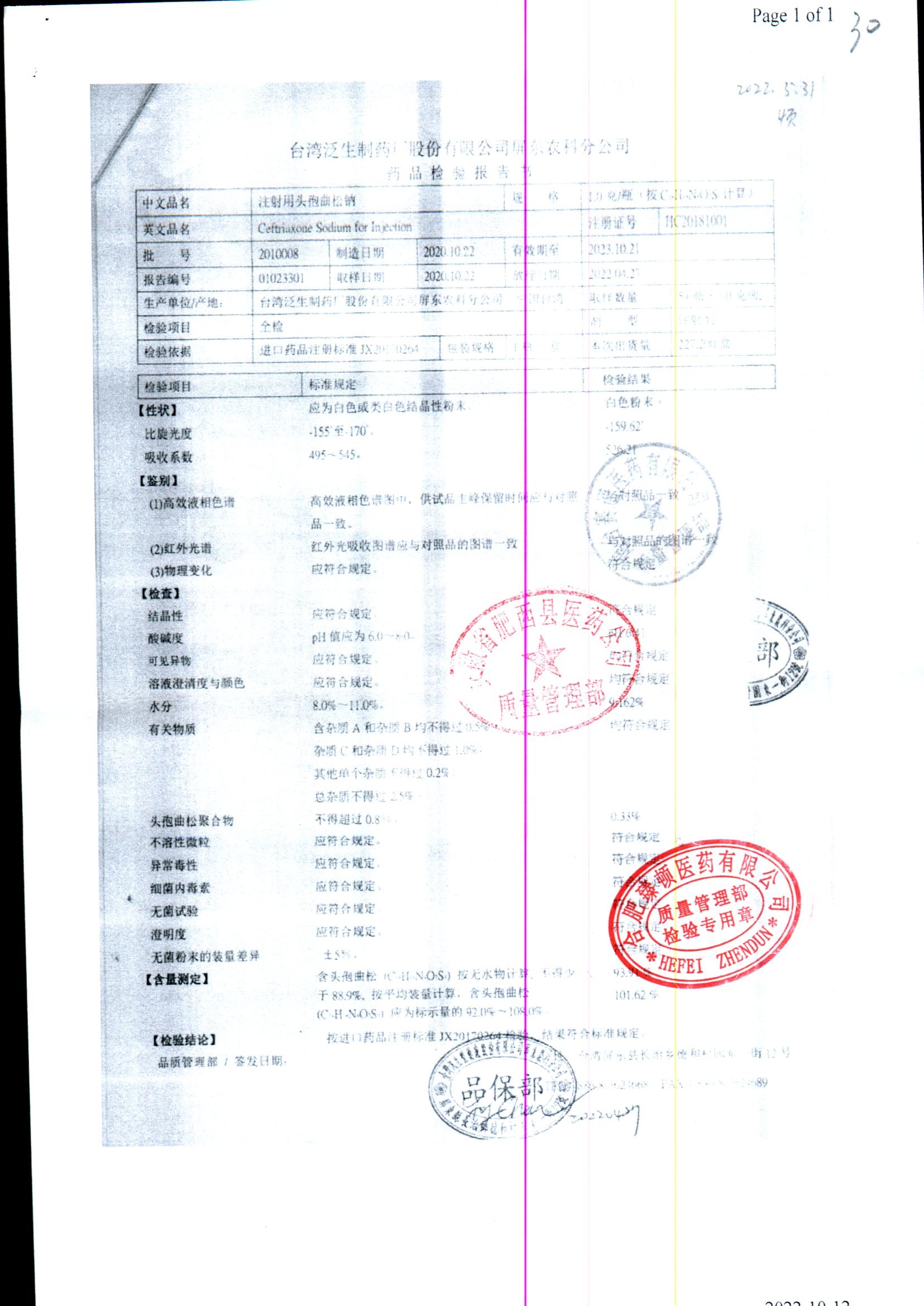 | 注射用頭孢曲松鈉 | 2.0g | 2010001(2/4) | 查看詳情 |