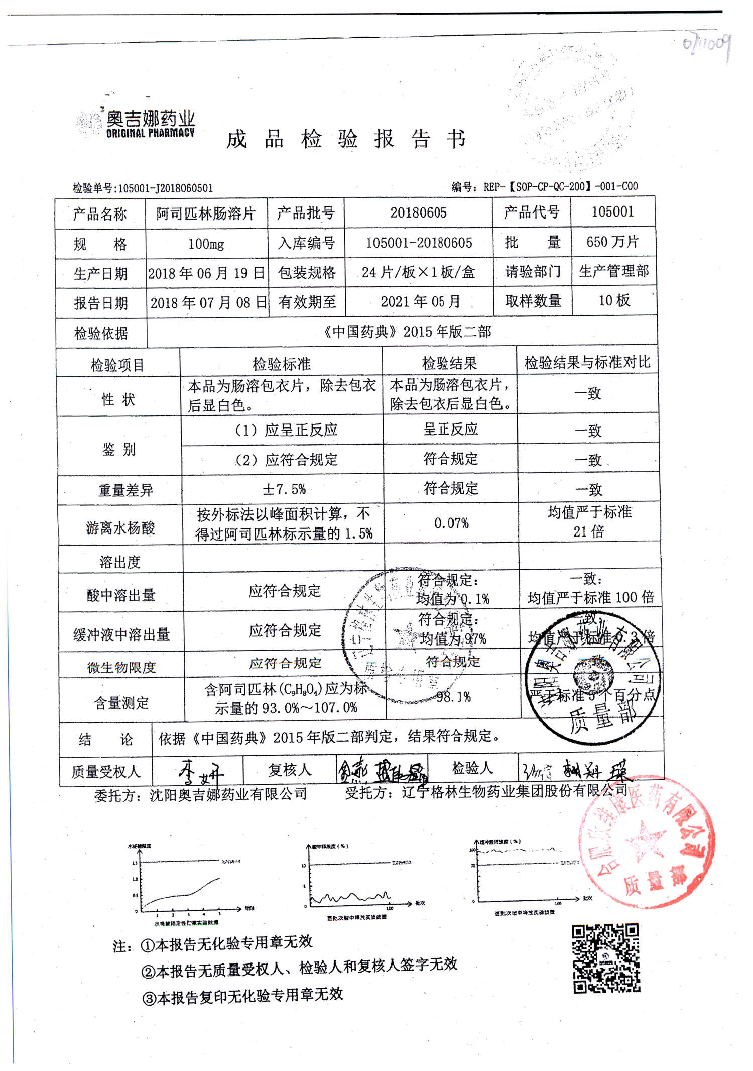 | 阿司匹林腸溶片 | 100mg*24s | 20180508 | 查看詳情 |