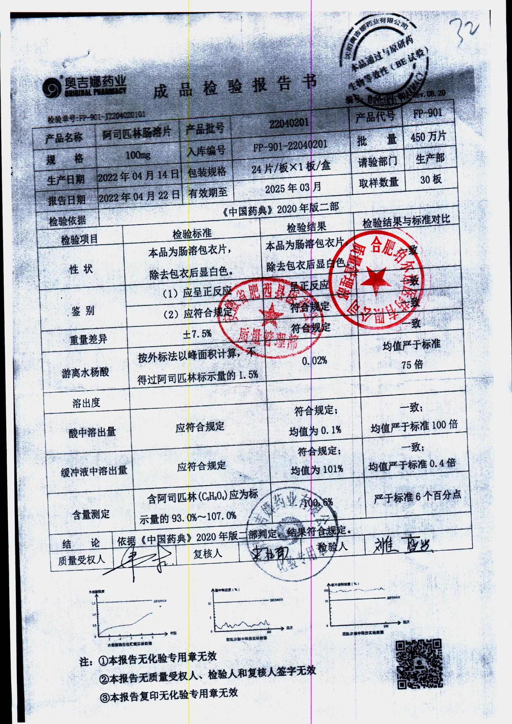 | 阿司匹林腸溶片 | 100mg*24s | 22040201 | 查看詳情 |