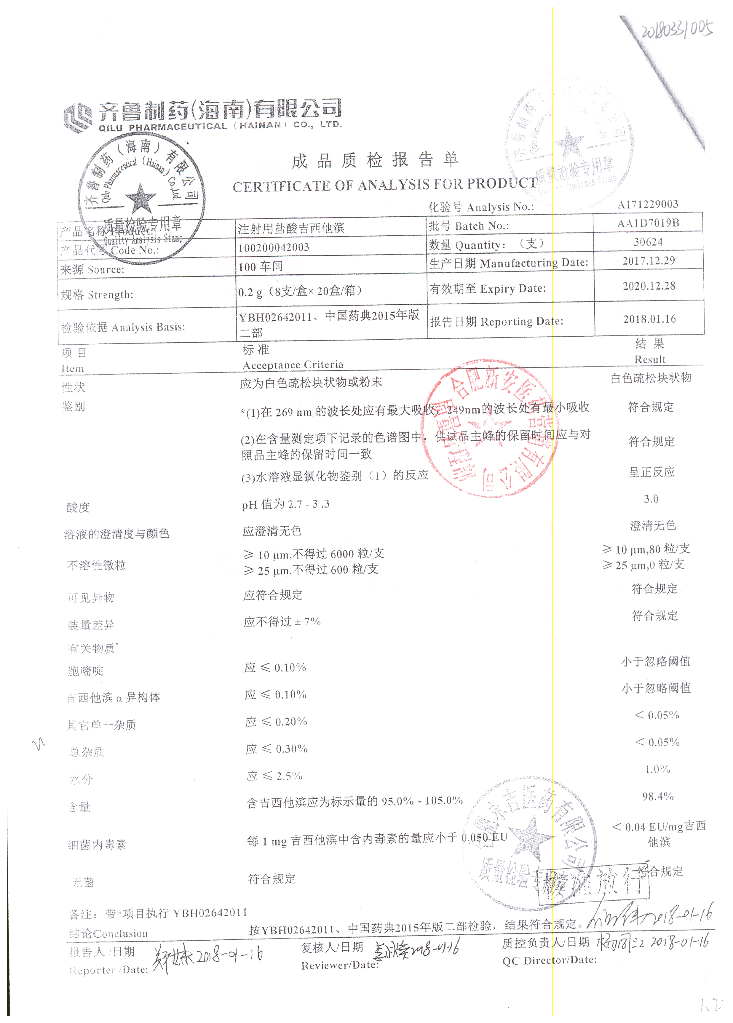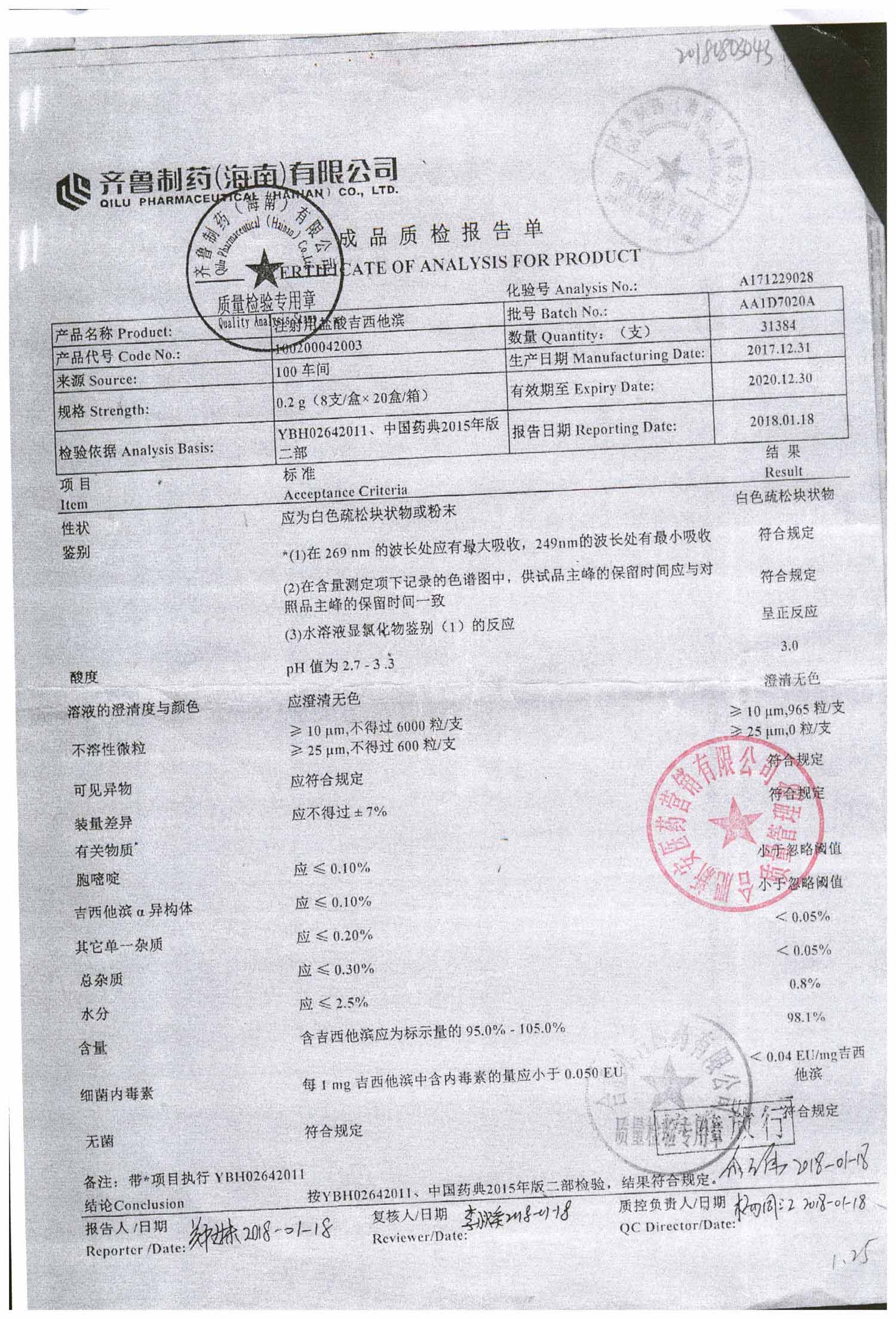 注射用鹽酸吉西他濱 0.2g*8支 AA1D7019B 查看詳情