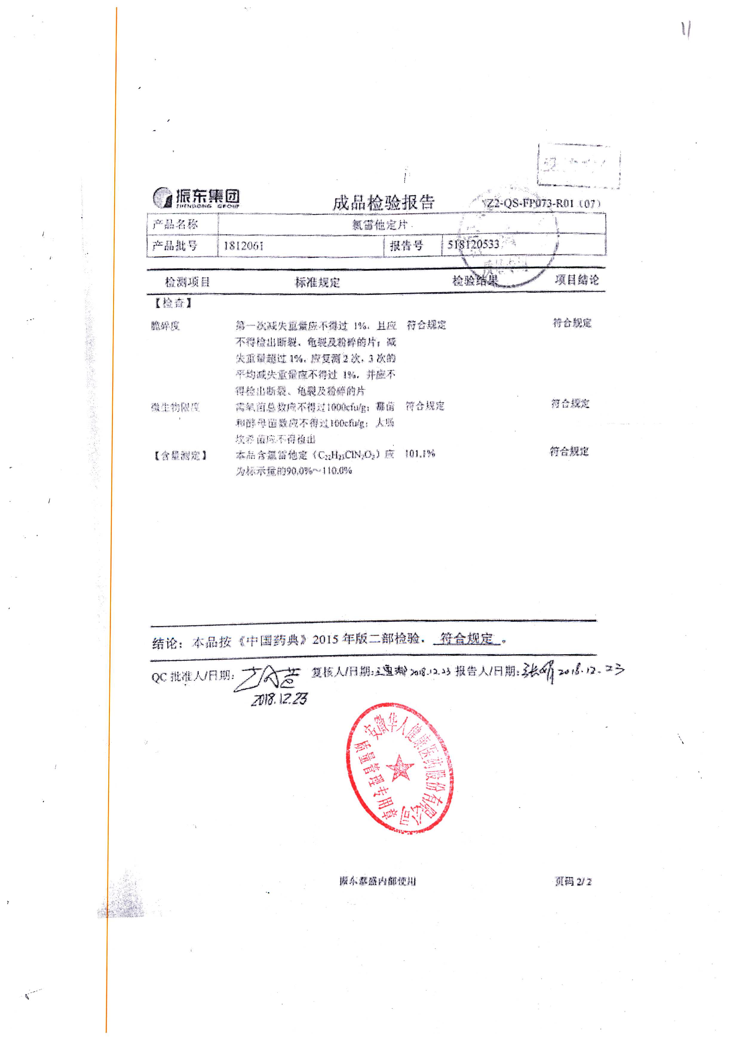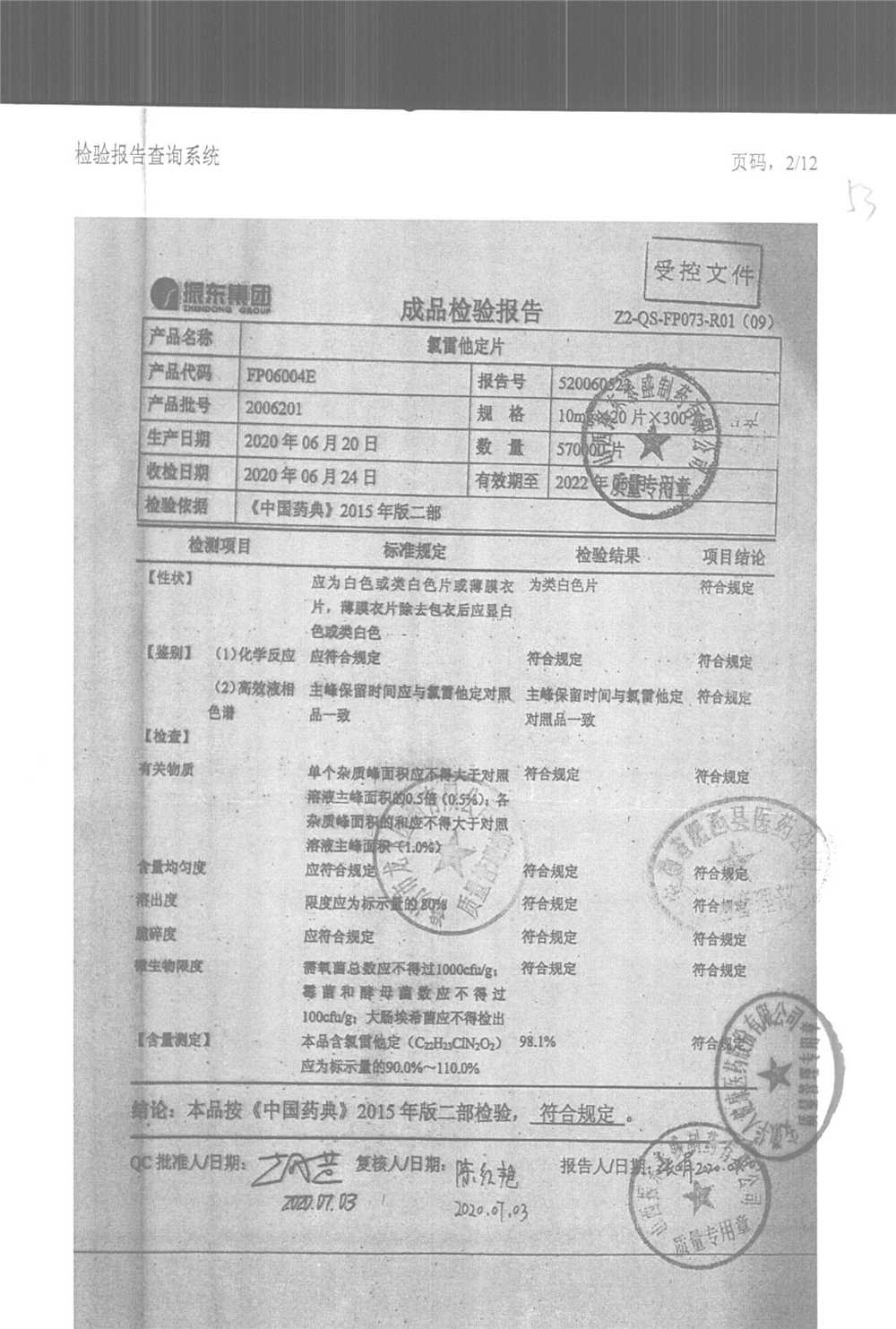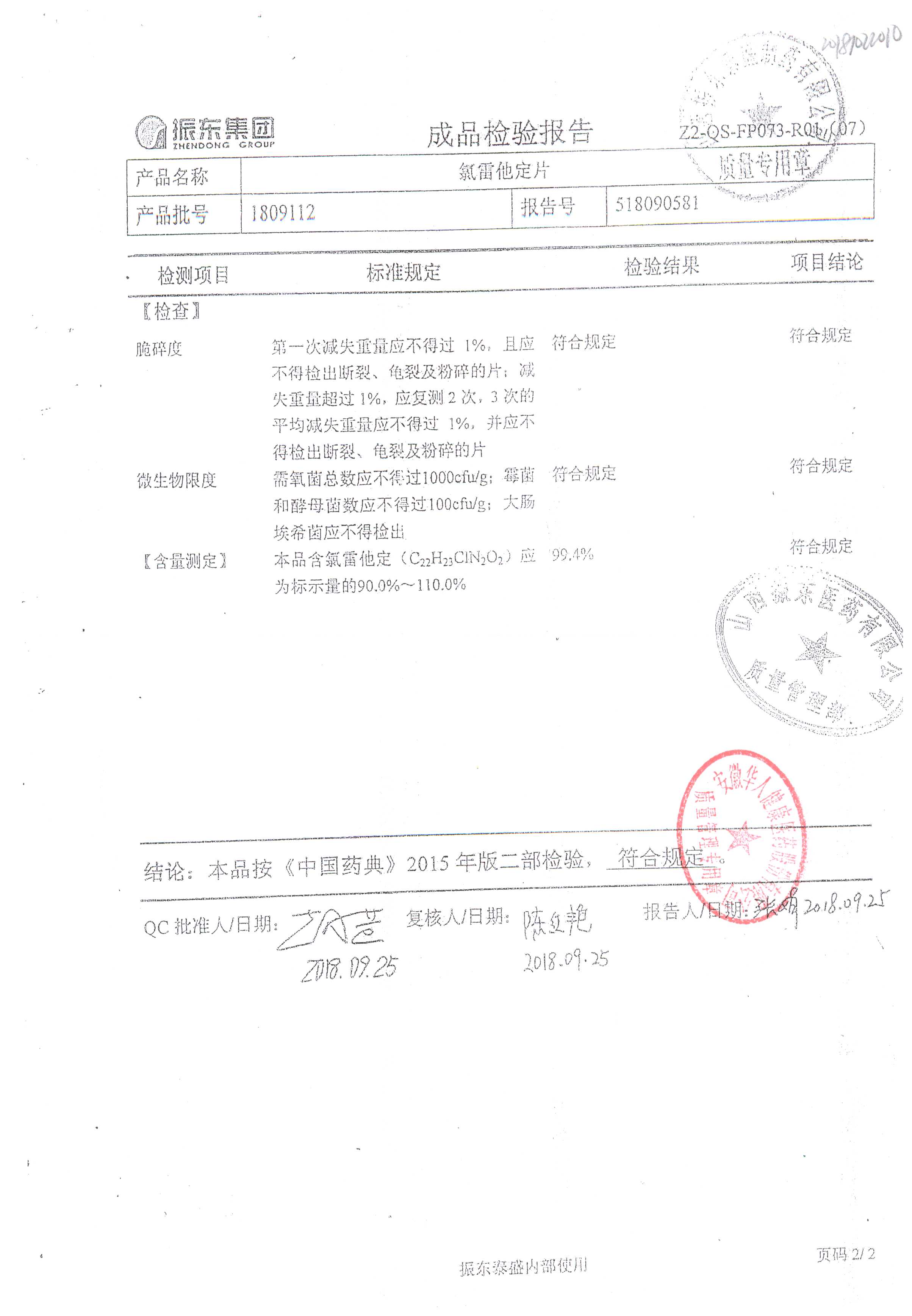| 氯雷他定片 | 10mg*20s | 1809111(2/2) | 查看詳情 |