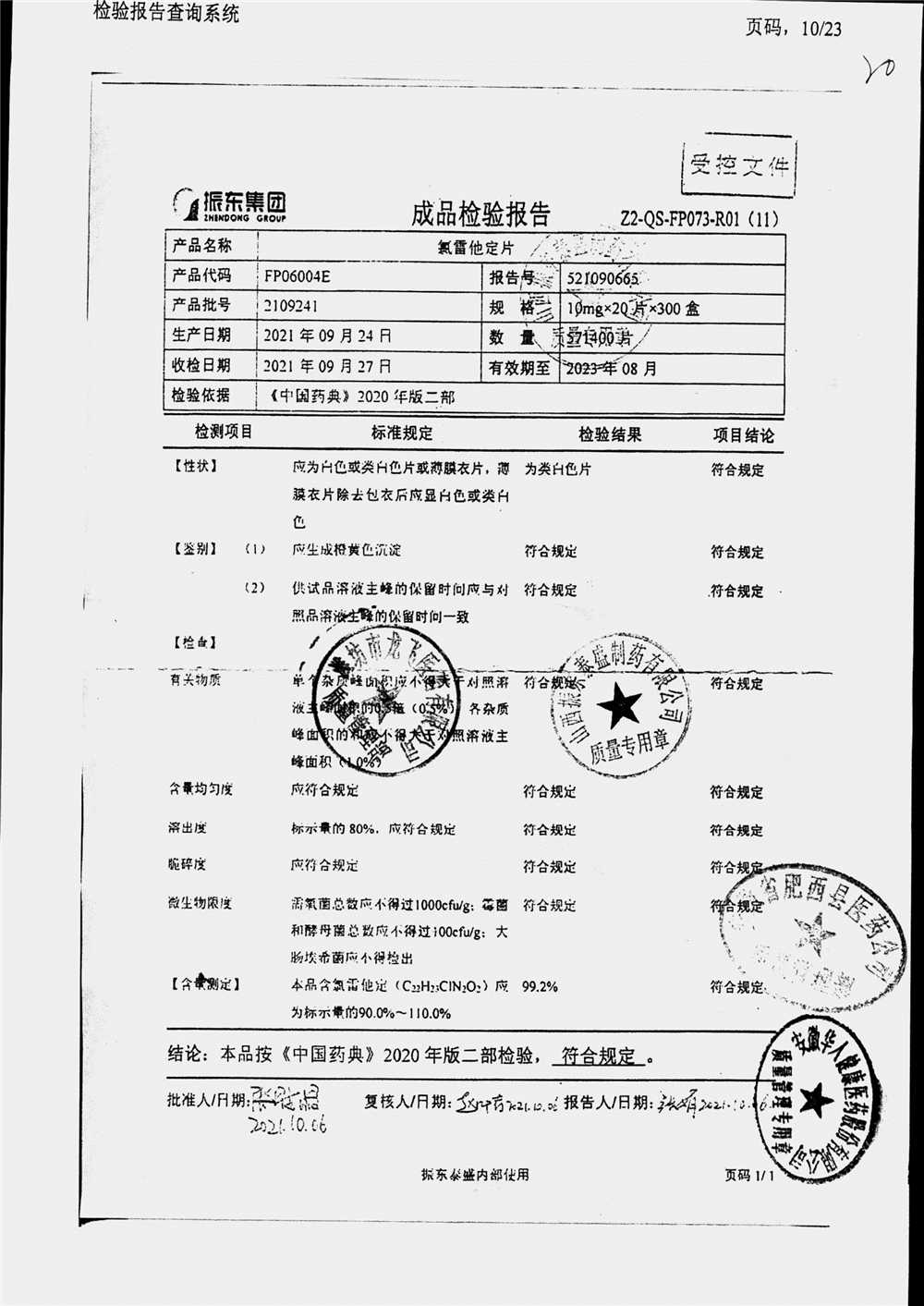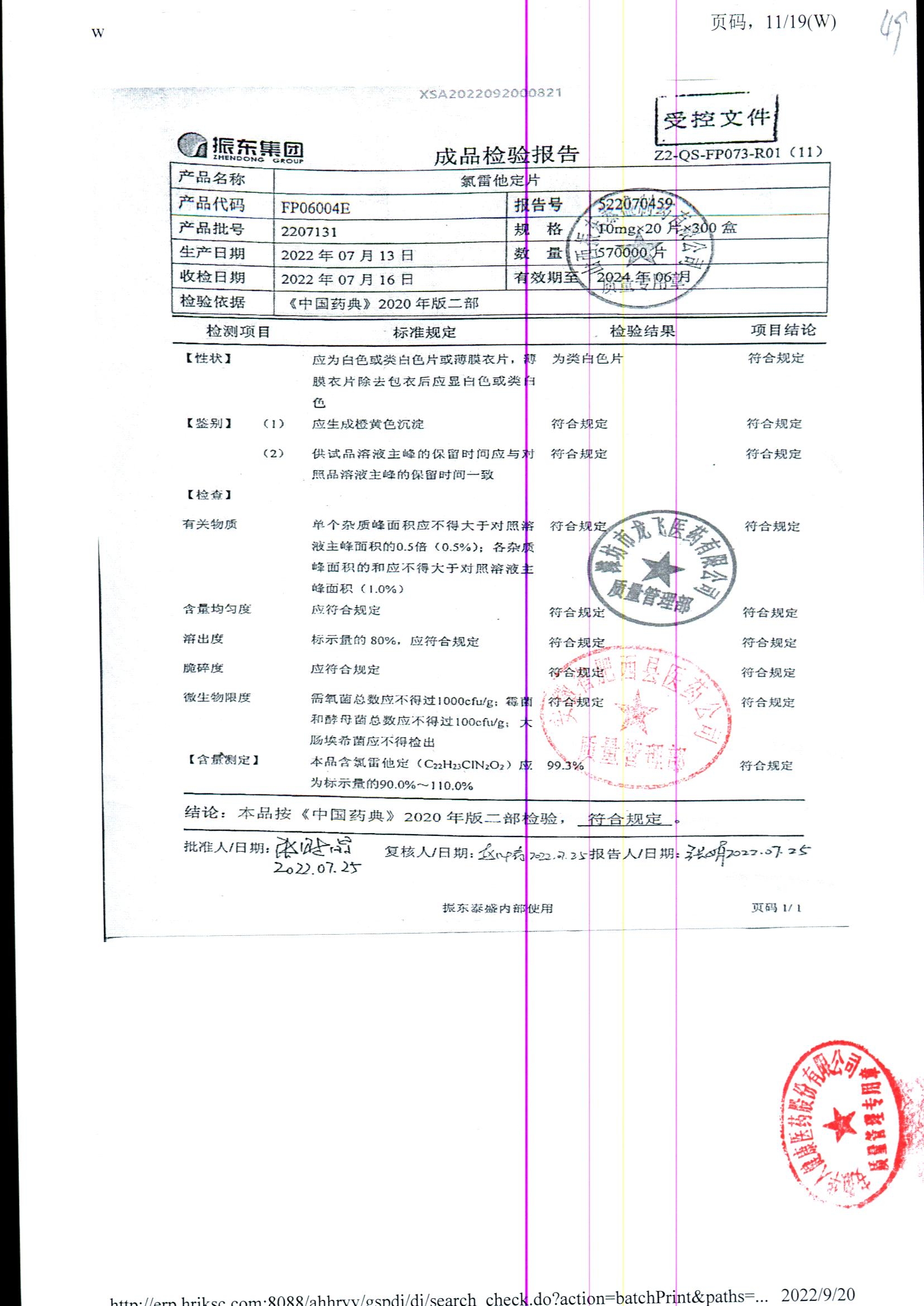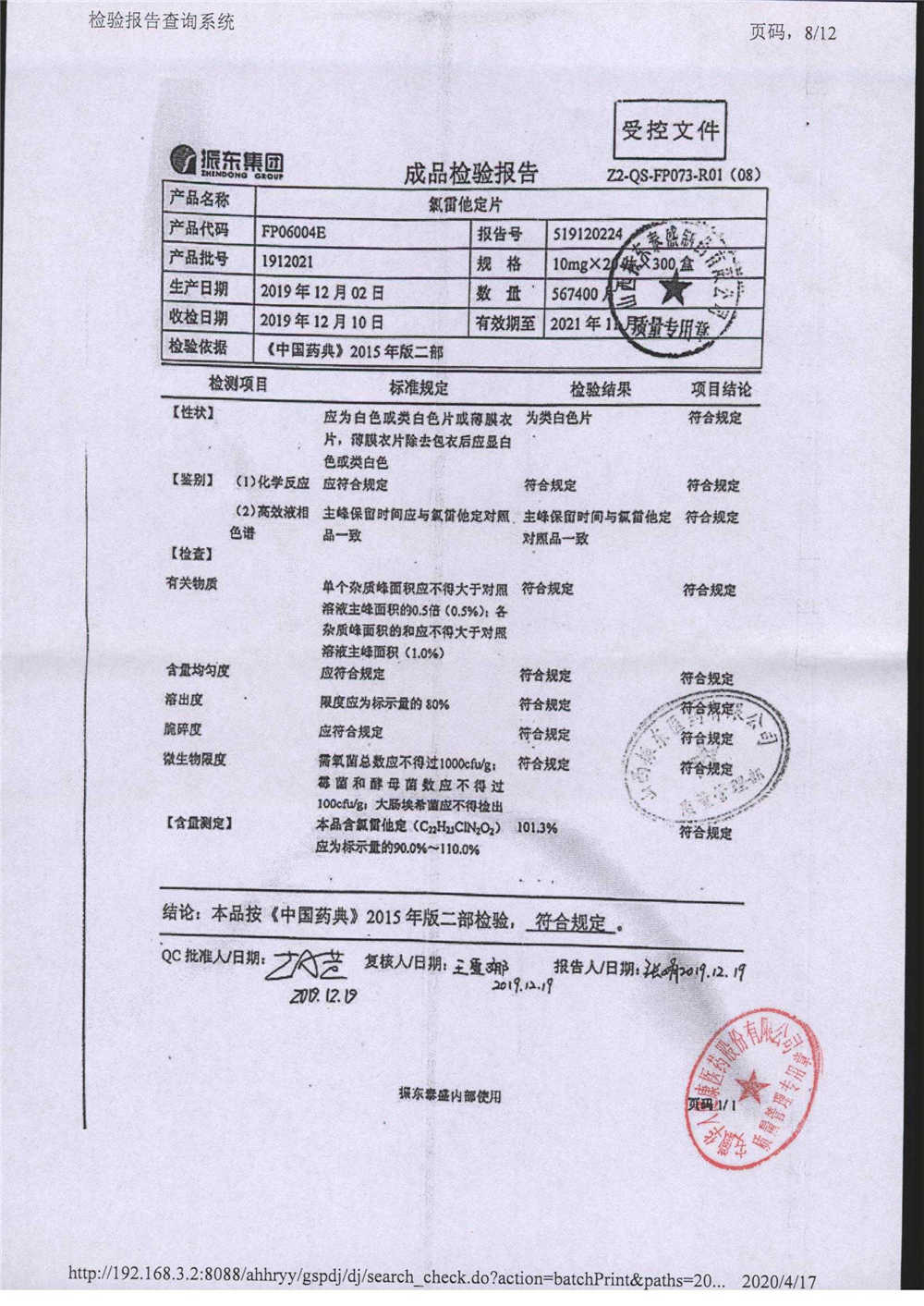 | 氯雷他定片 | 10mg*20s | 1809111(2/2) | 查看詳情 |