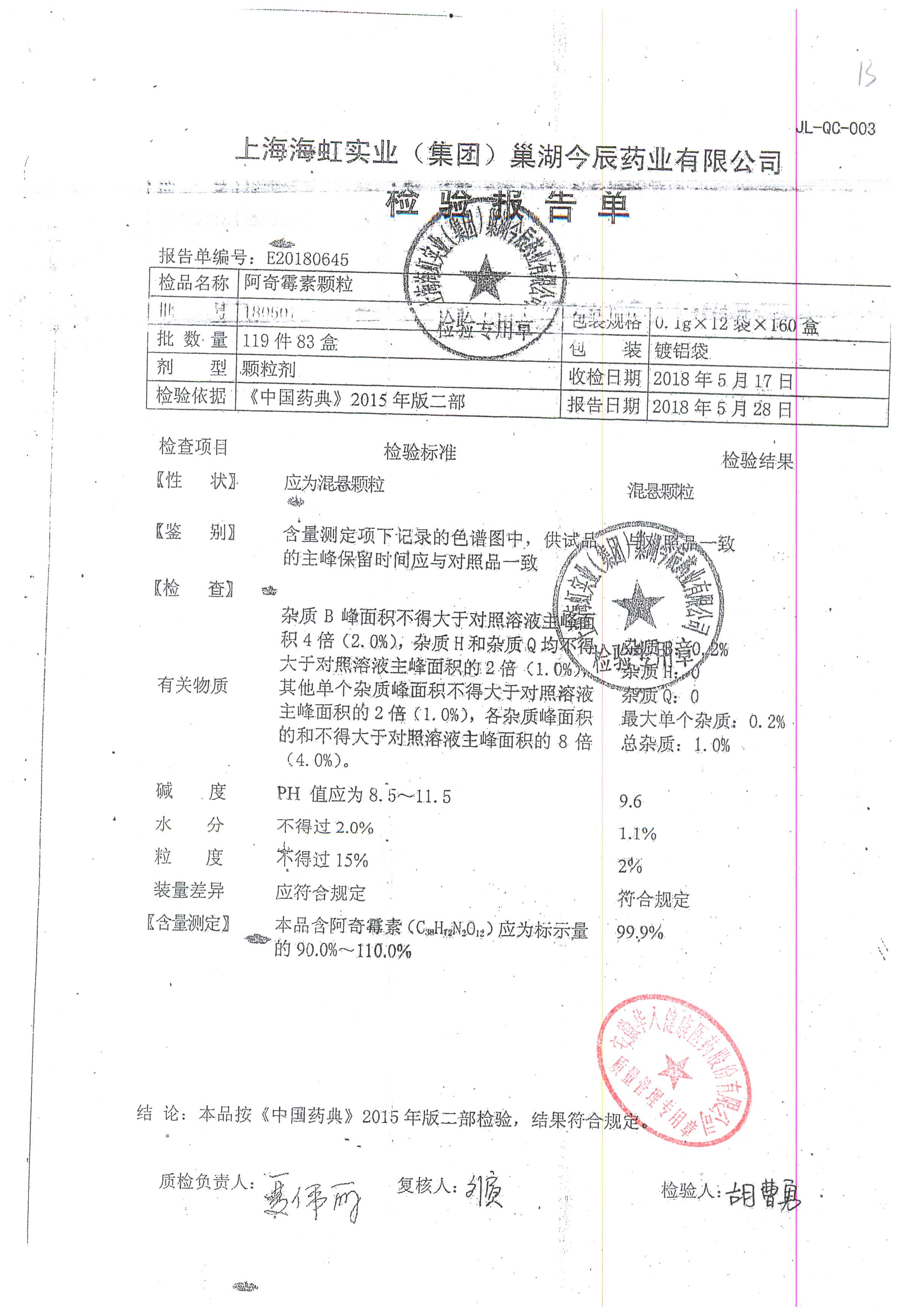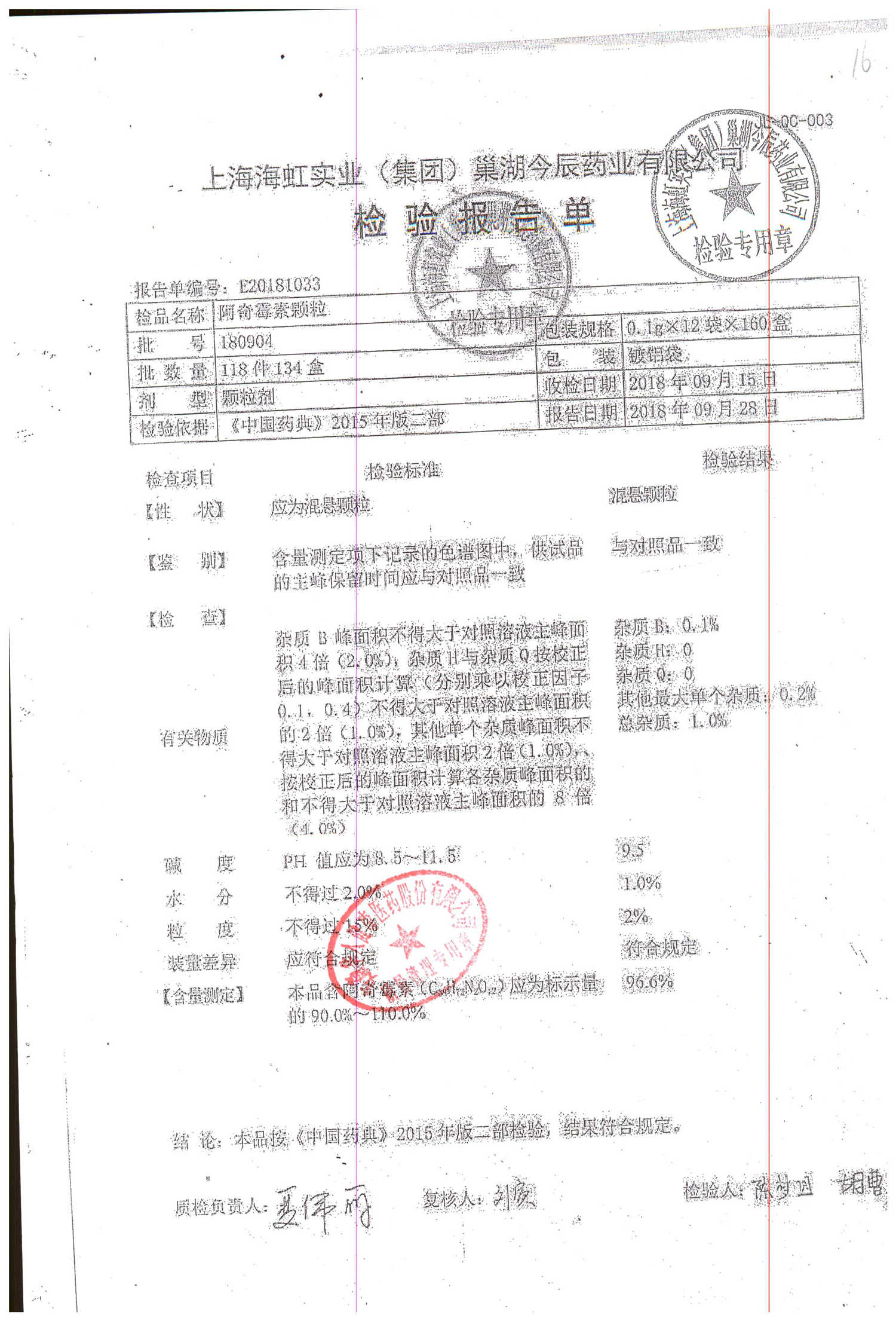 | 阿奇霉素顆粒 | 0.1g-12袋 | 180813 | 查看詳情 |