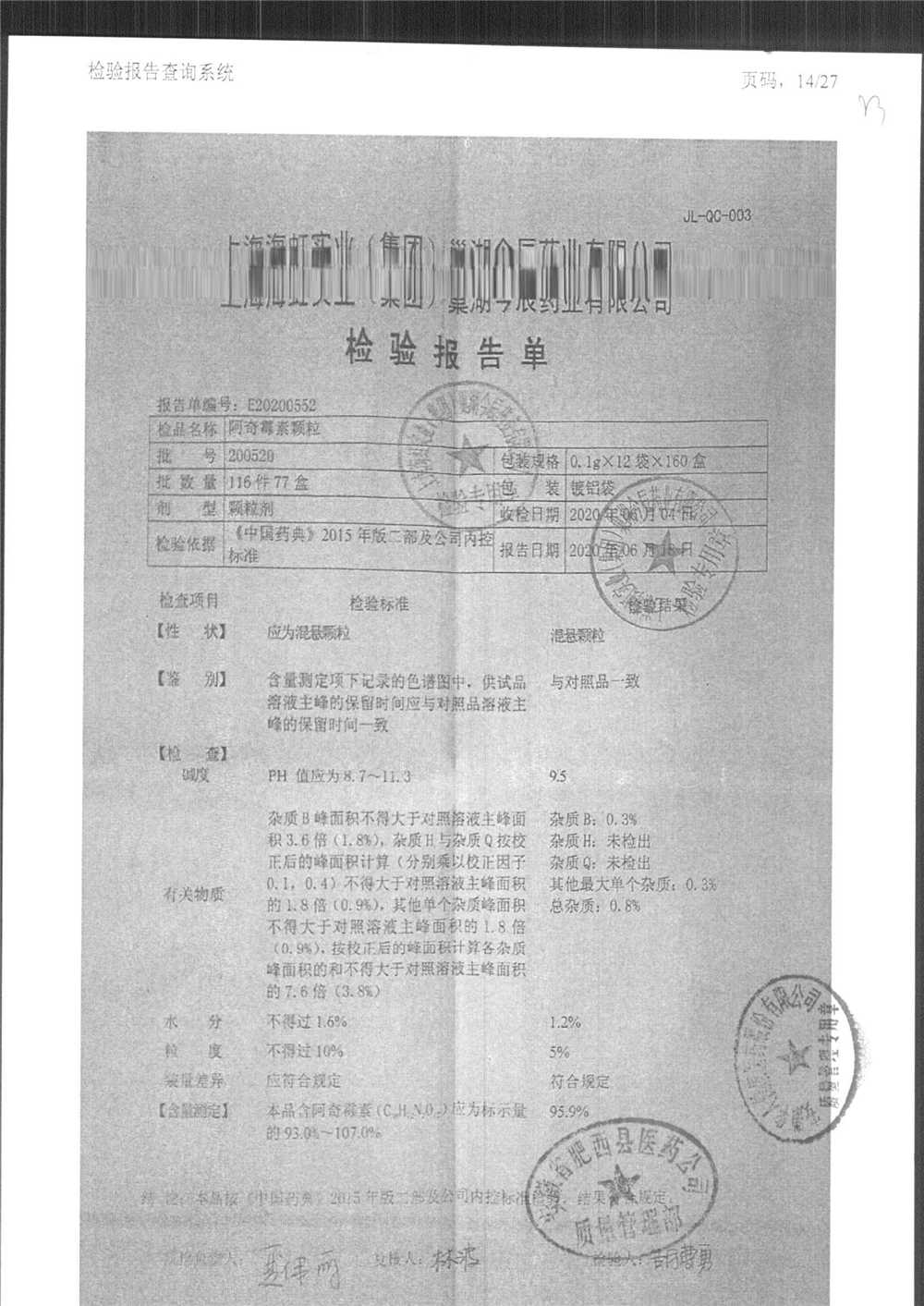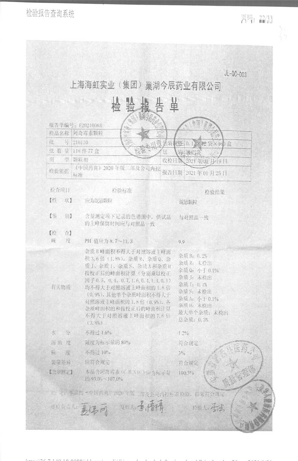 | 名稱 | 規(guī)格 | 批號 | 藥檢報告 |