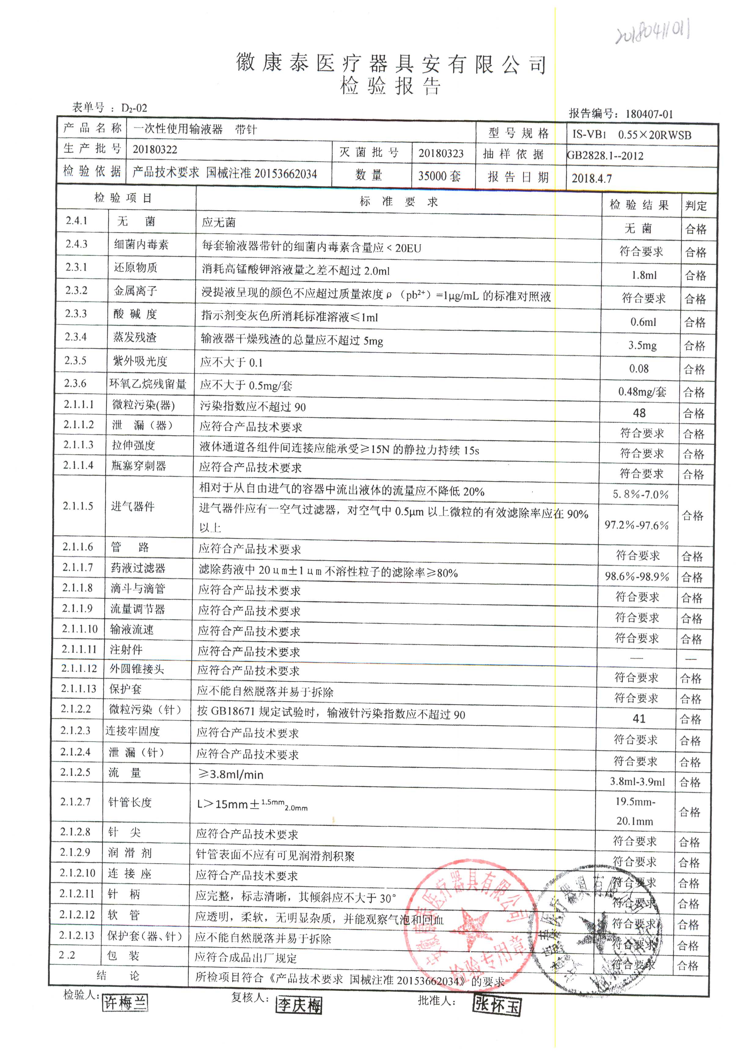 | 一次性使用輸液器 帶針 | 0.55*20RWSB | 20180322 | 查看詳情 |