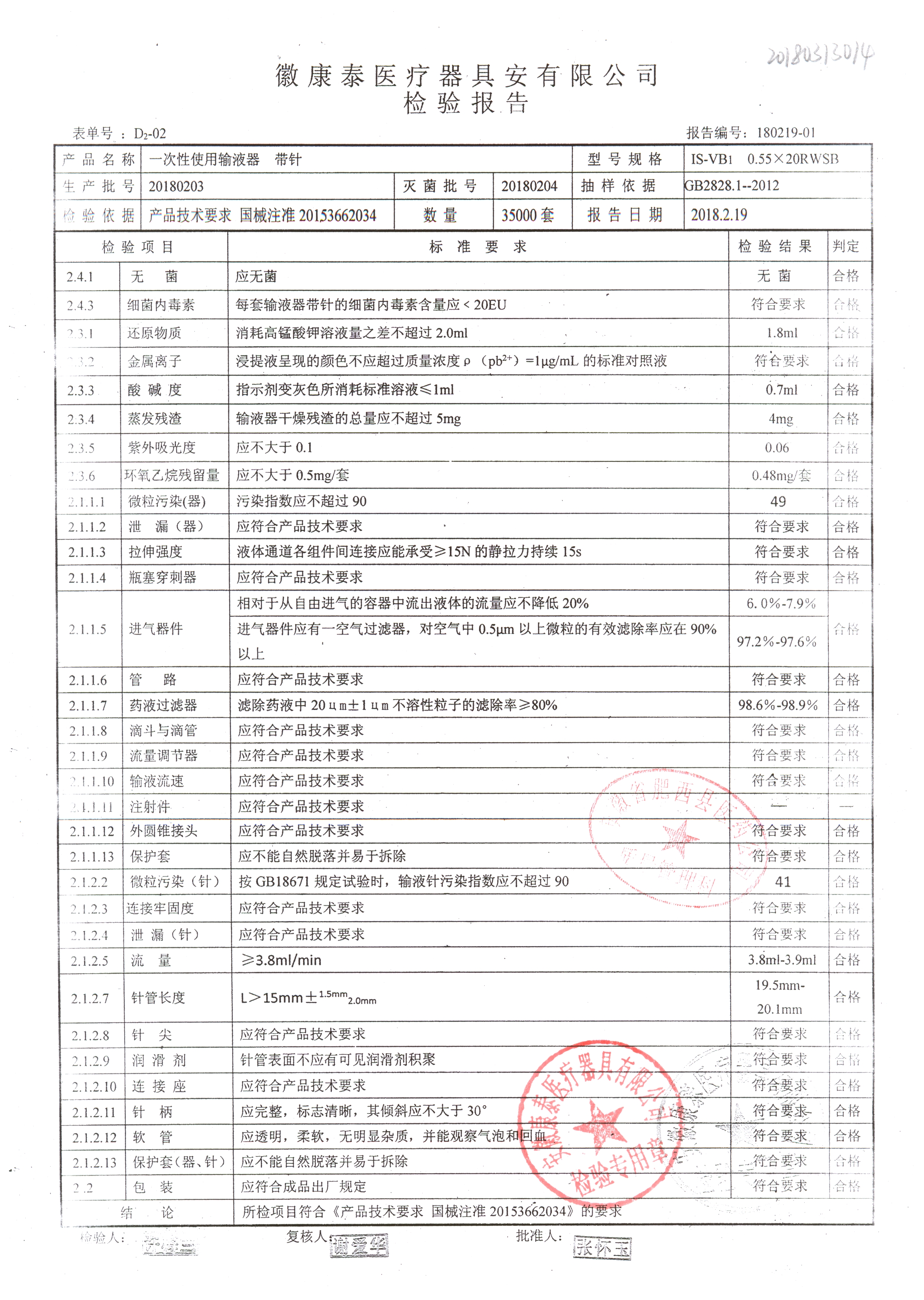 | 一次性使用輸液器 帶針 | 0.55*20RWSB | 20180203 | 查看詳情 |