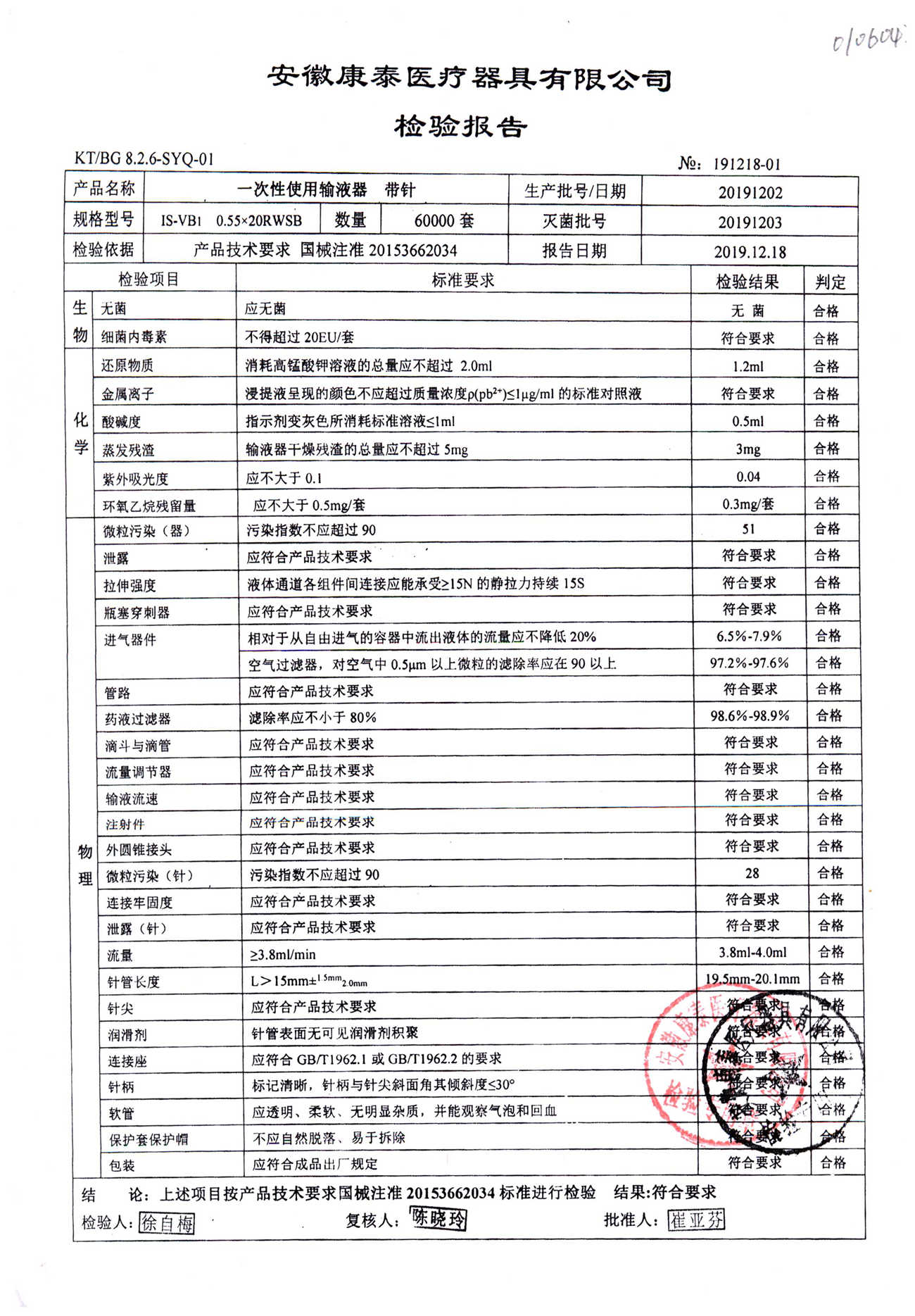 | 一次性使用輸液器 帶針 | 0.55*20RWSB | 20191026 | 查看詳情 |