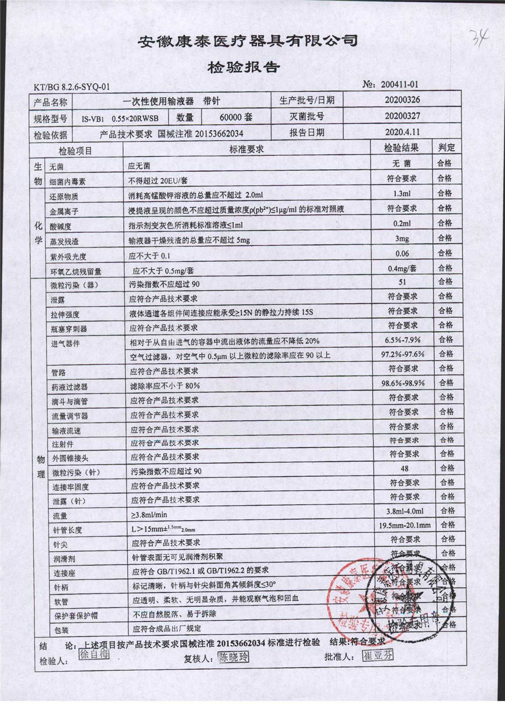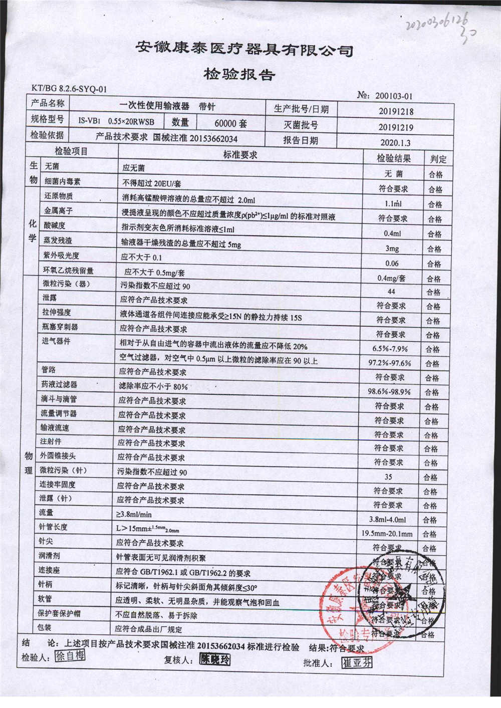 | 一次性使用輸液器 帶針 | 0.55*20RWSB | 20200326 | 查看詳情 |