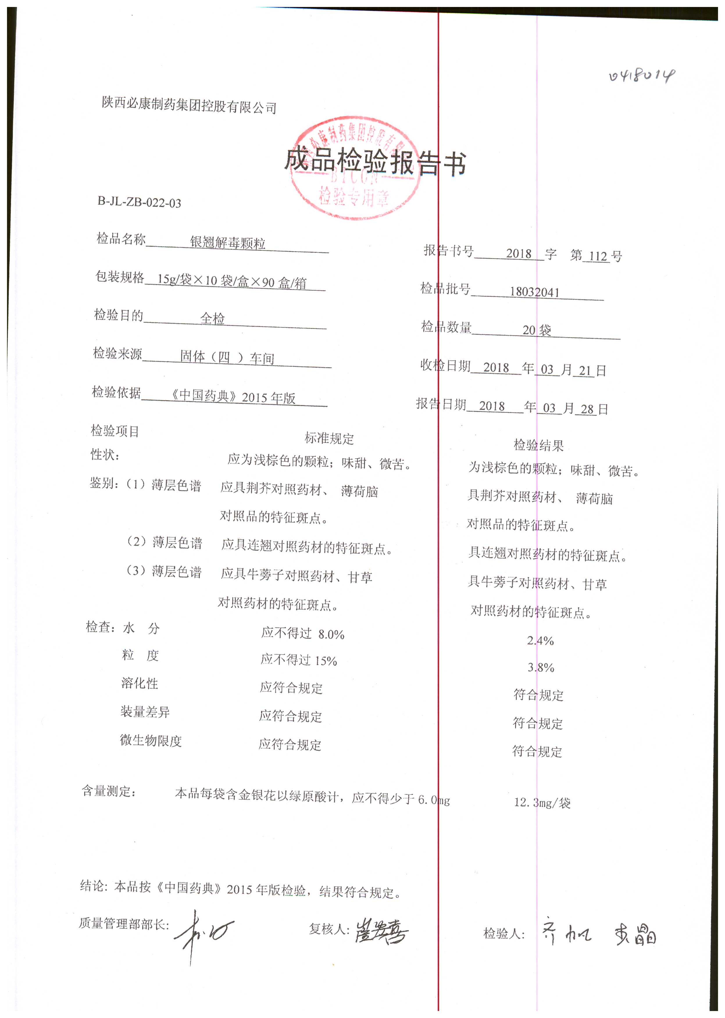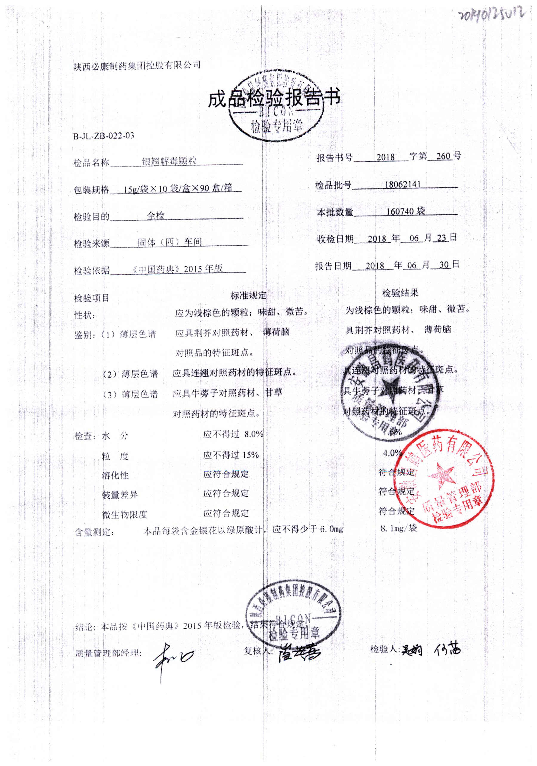| 銀翹解毒顆粒 | 15g*10袋 | 18032041 | 查看詳情 |