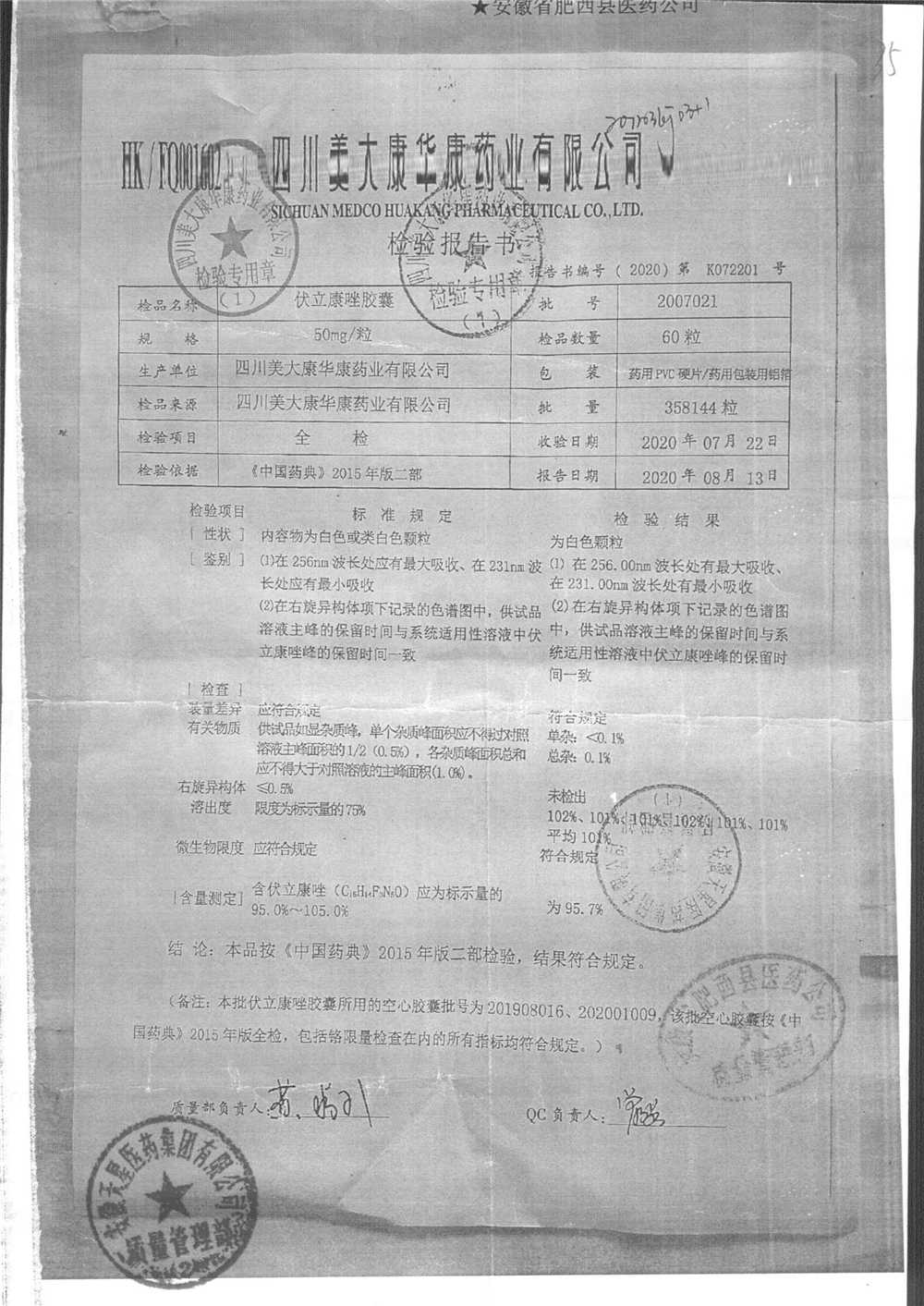| 伏立康唑膠囊 | 50mg | 1904021 | 查看詳情 |