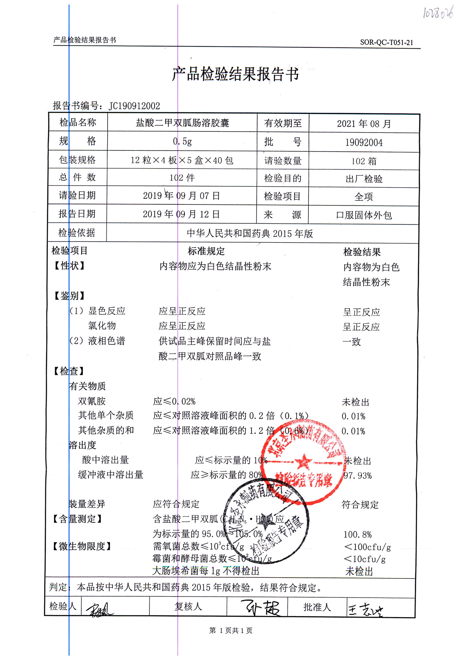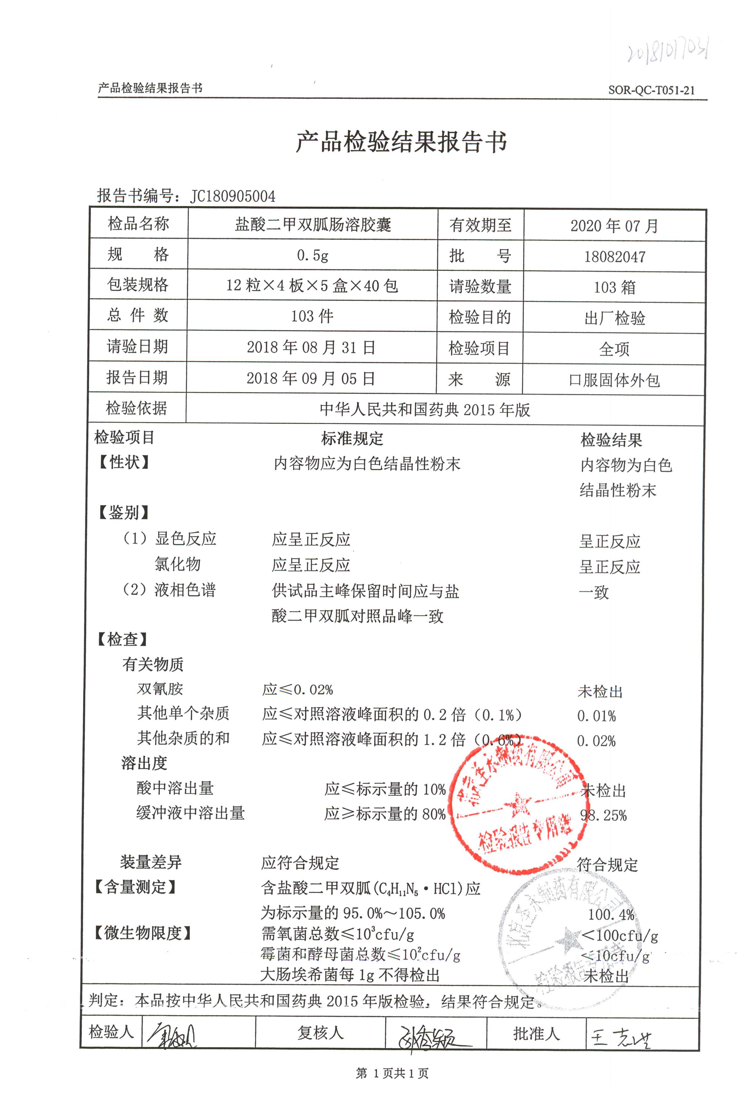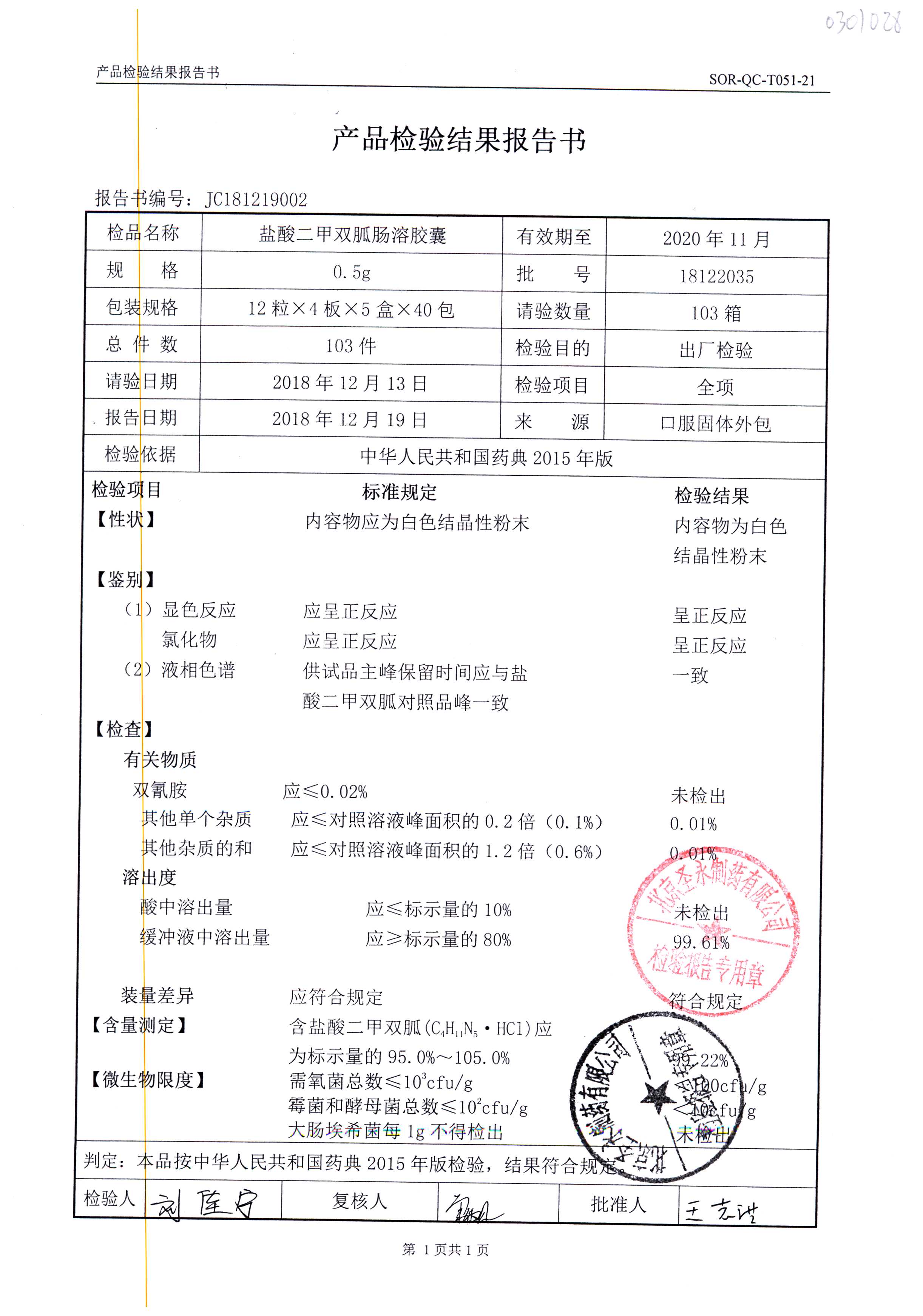 | 鹽酸二甲雙胍腸溶膠囊 | 0.5g*48s | 18092031(2/2) | 查看詳情 |
