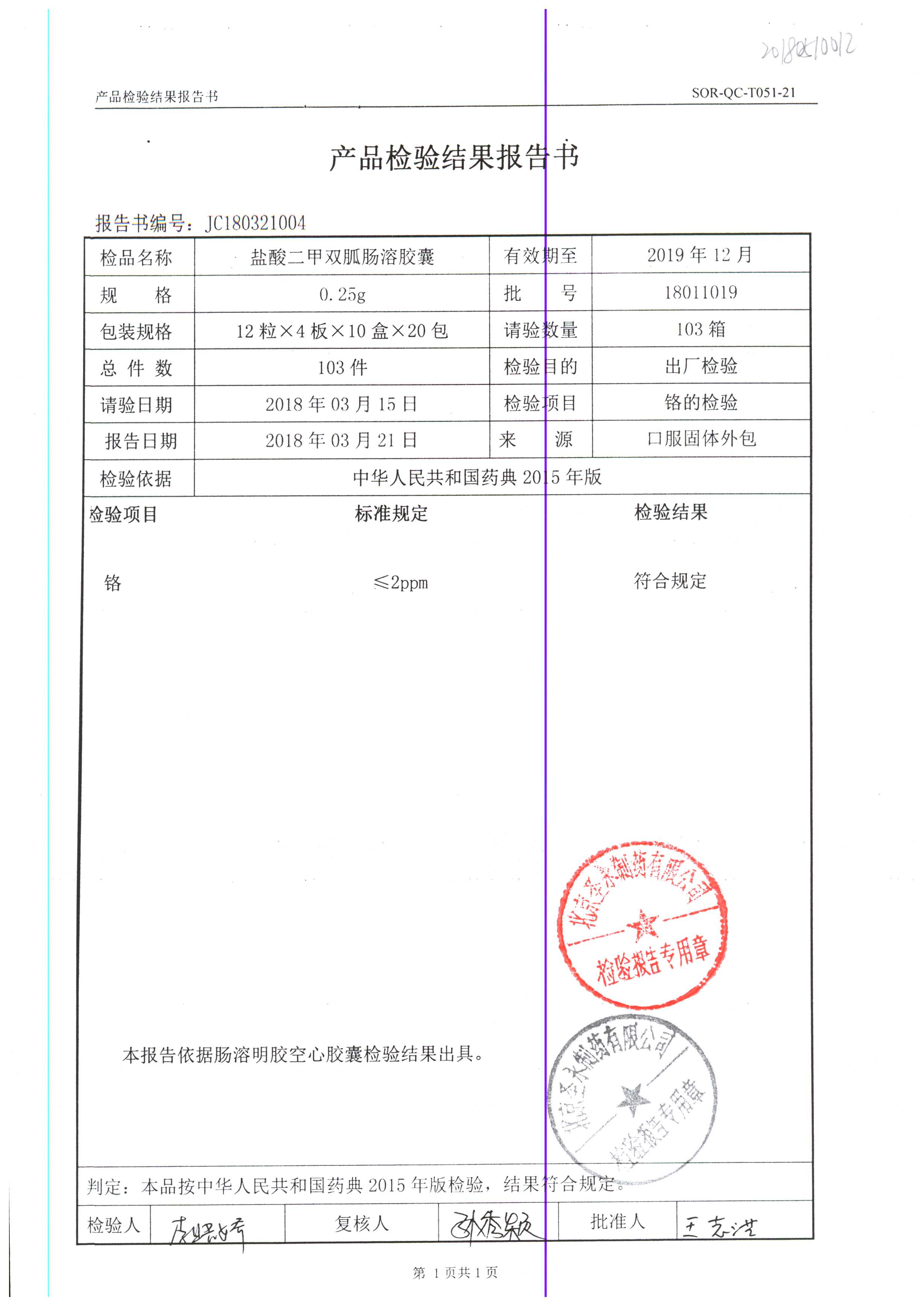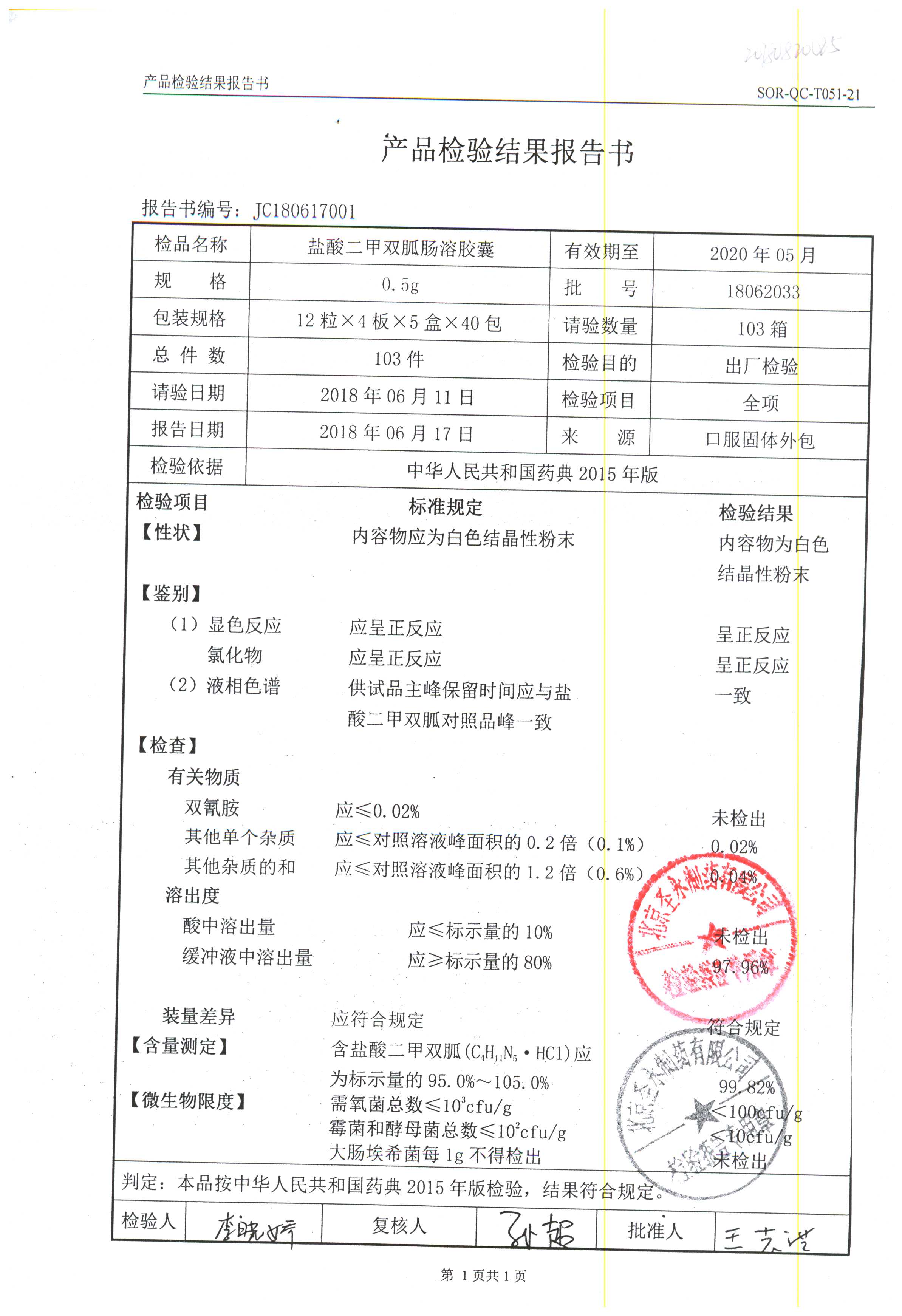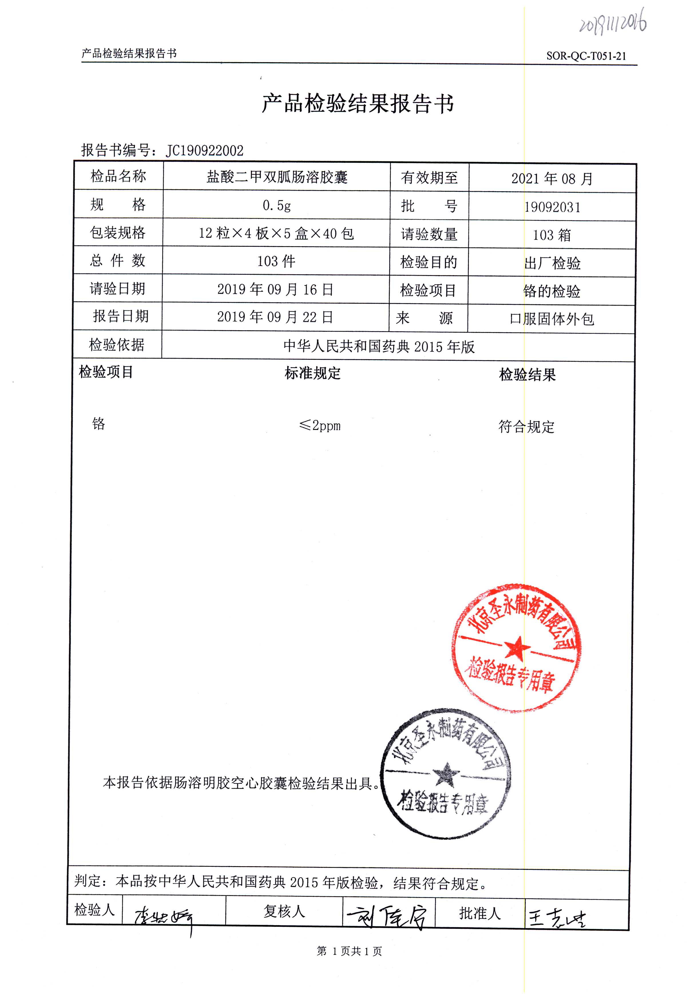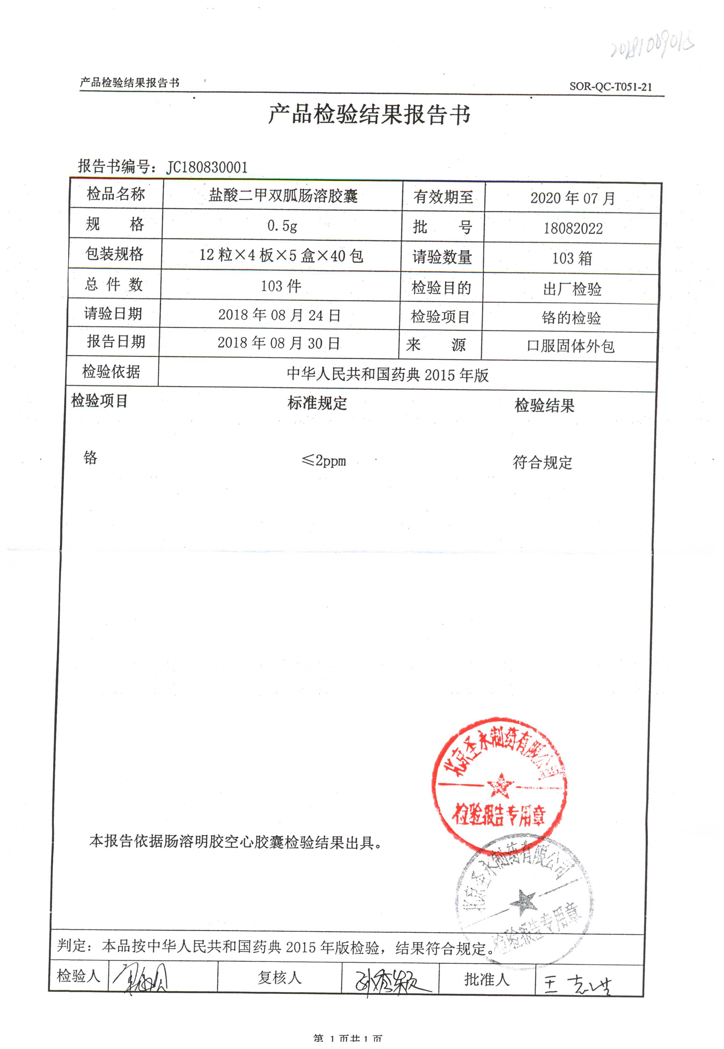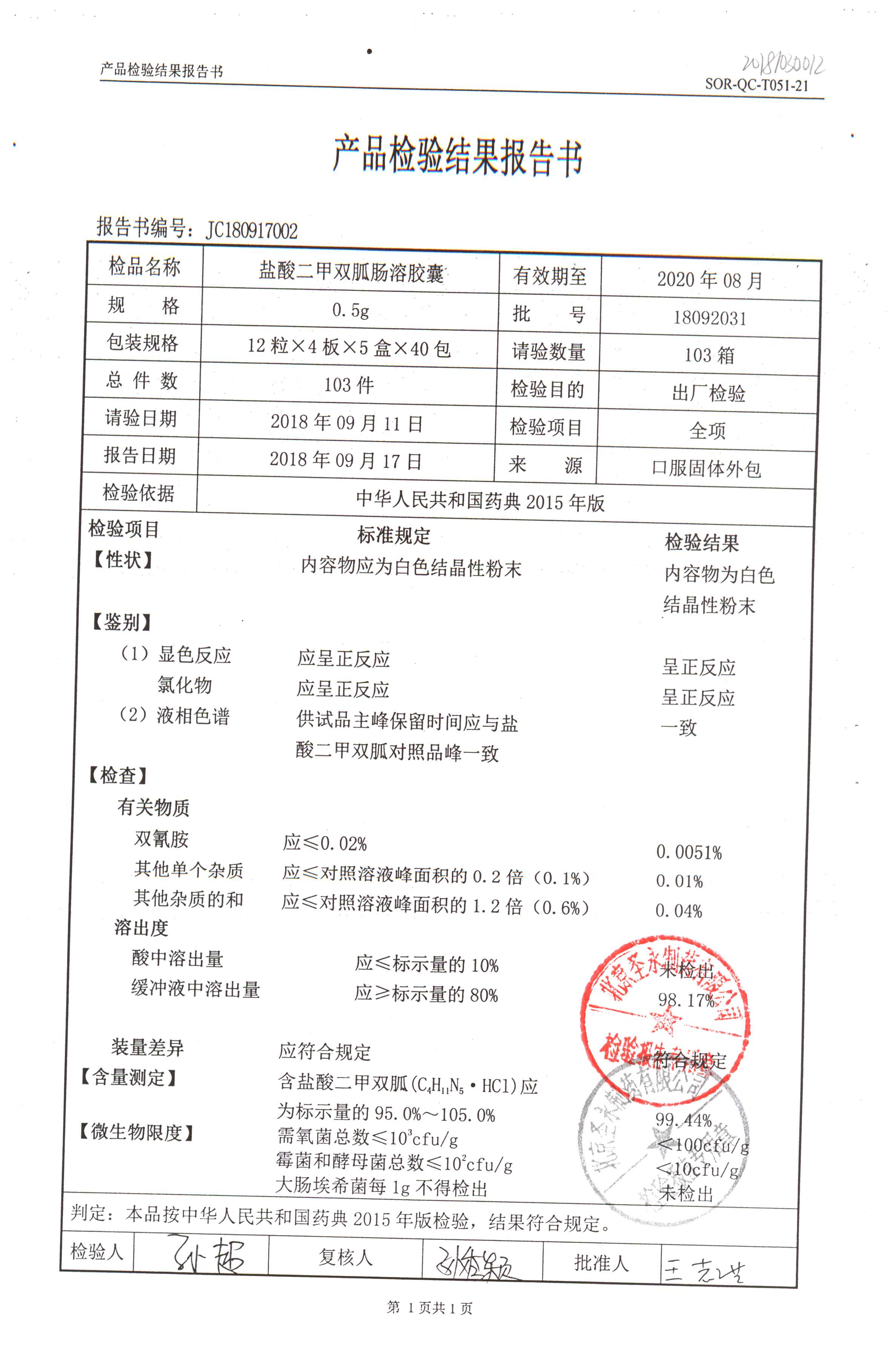 | 鹽酸二甲雙胍腸溶膠囊 | 0.5g*48s | 18092031(1/2) | 查看詳情 |