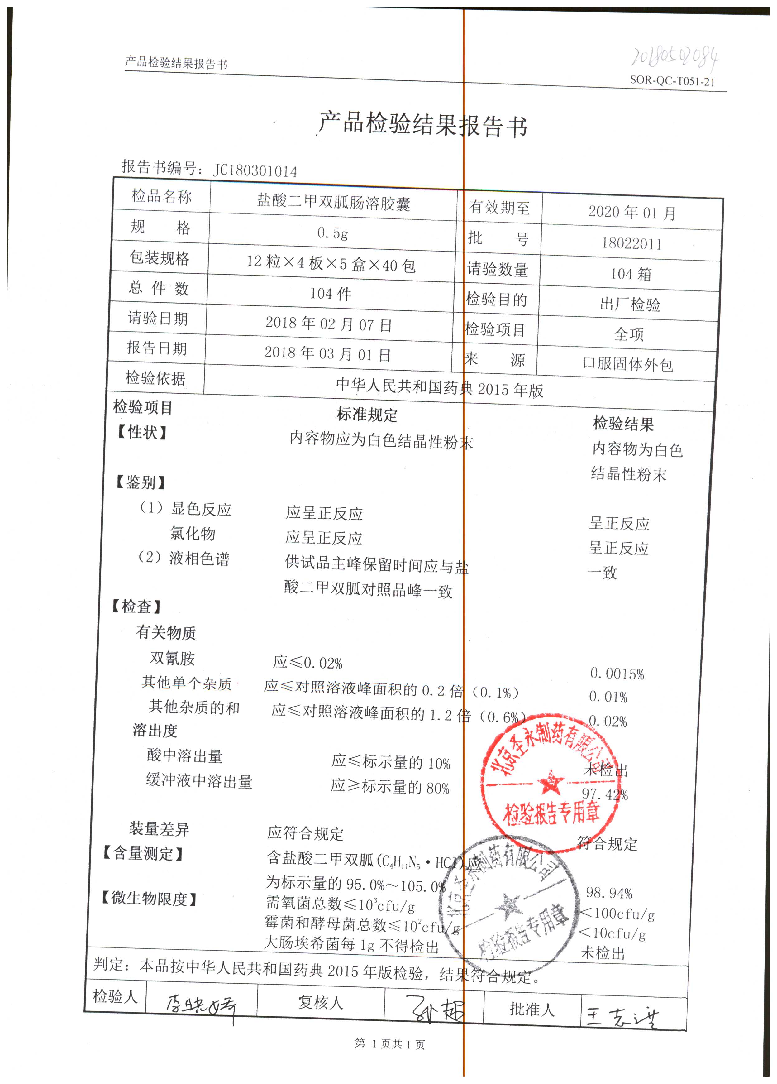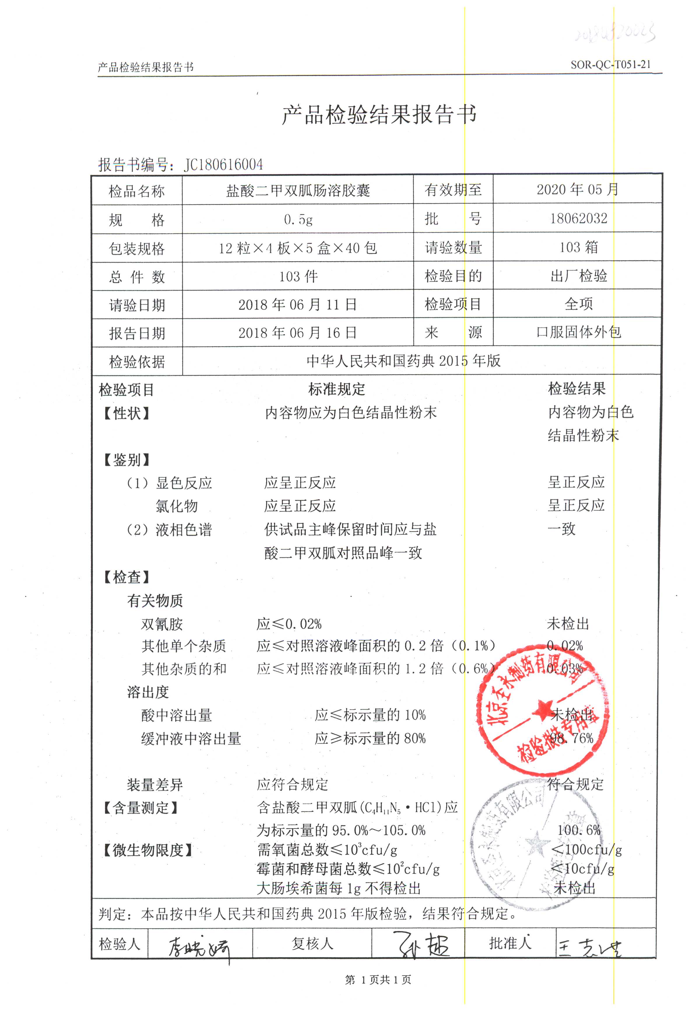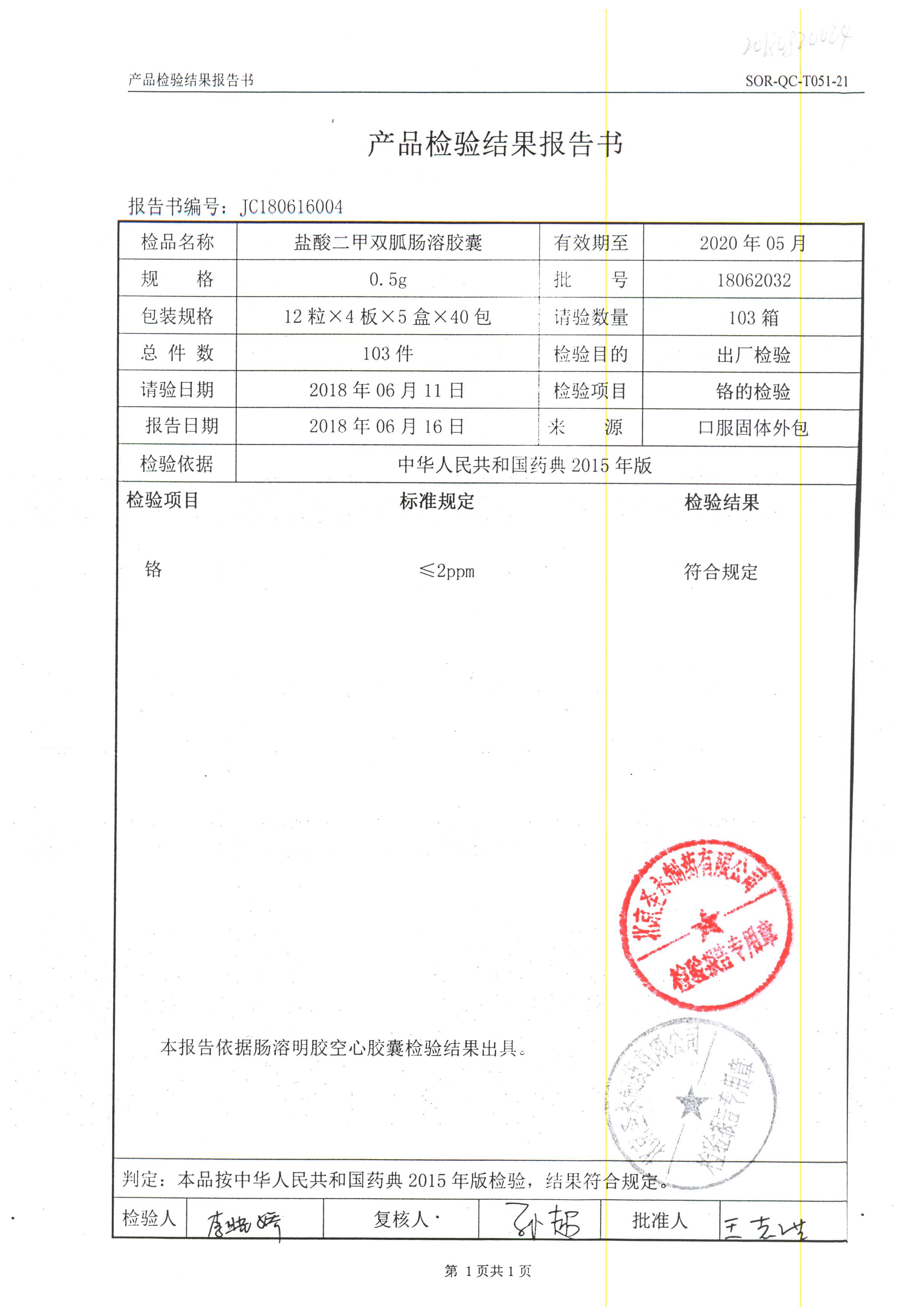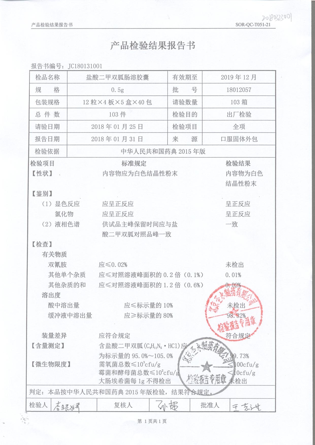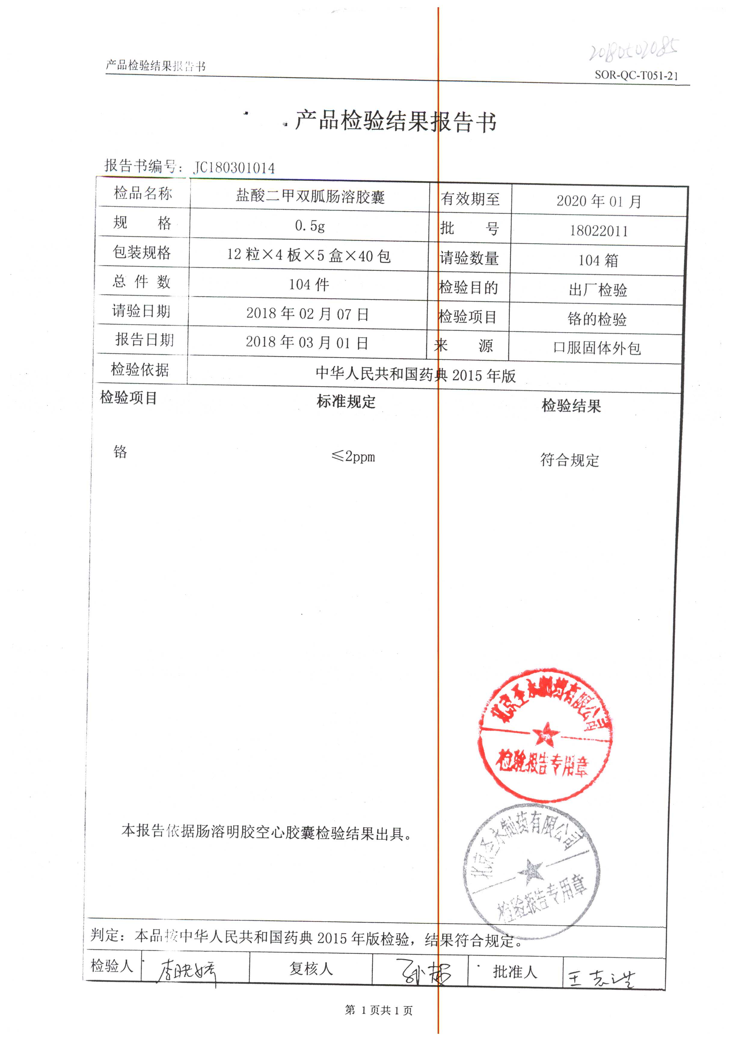| 鹽酸二甲雙胍腸溶膠囊 | 0.5g*48s | 18042007(1/2) | 查看詳情 |