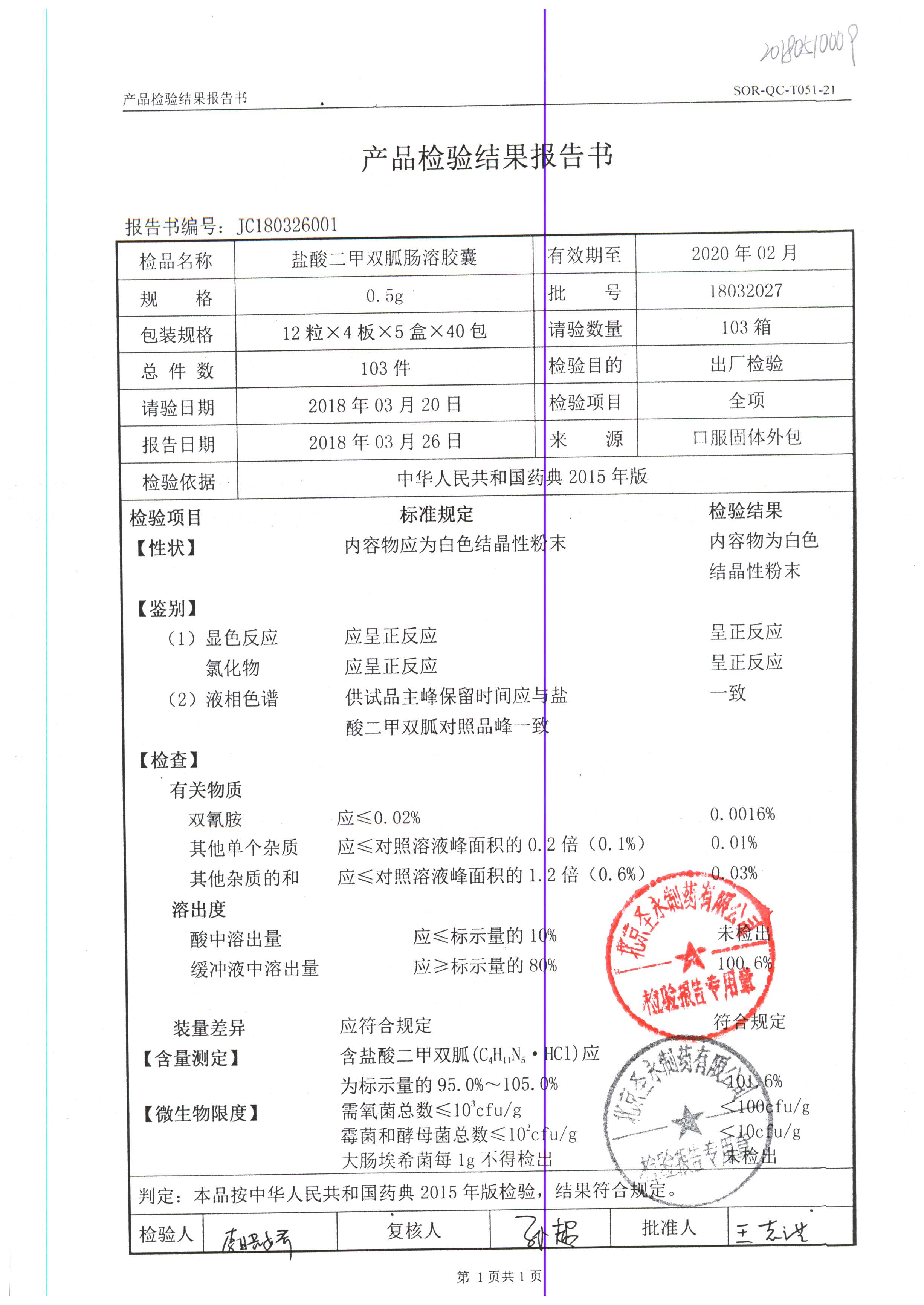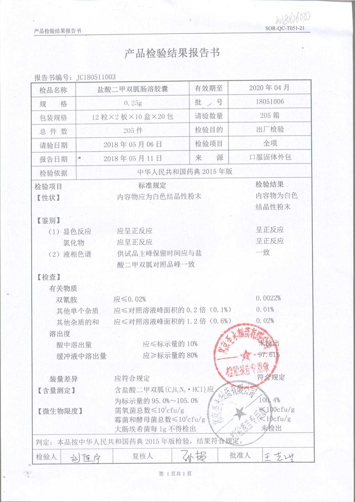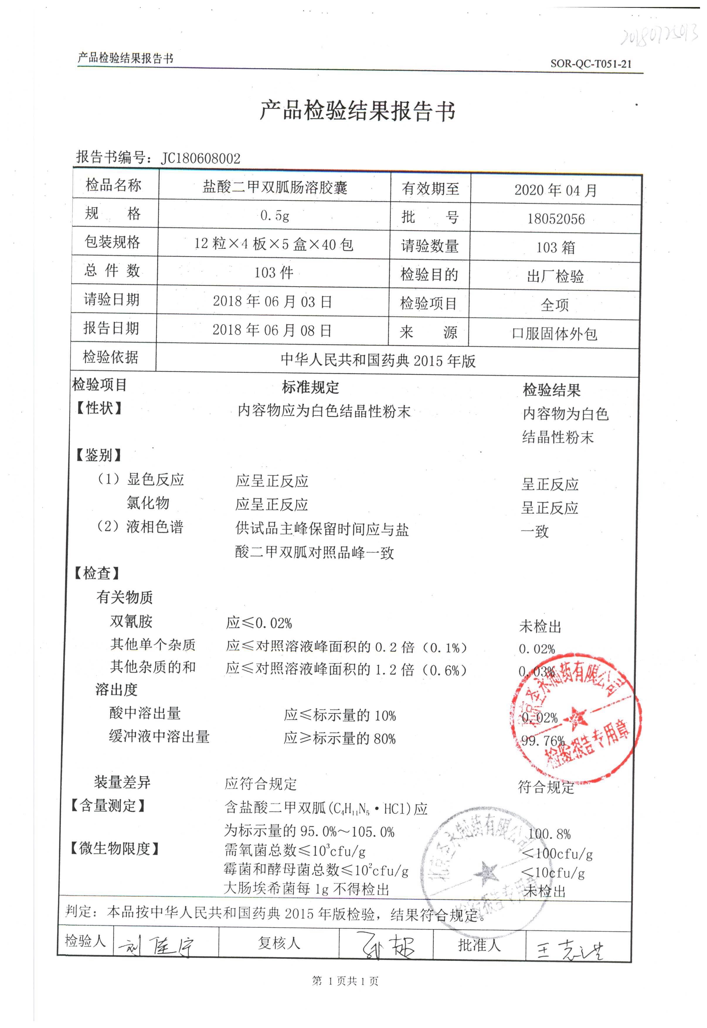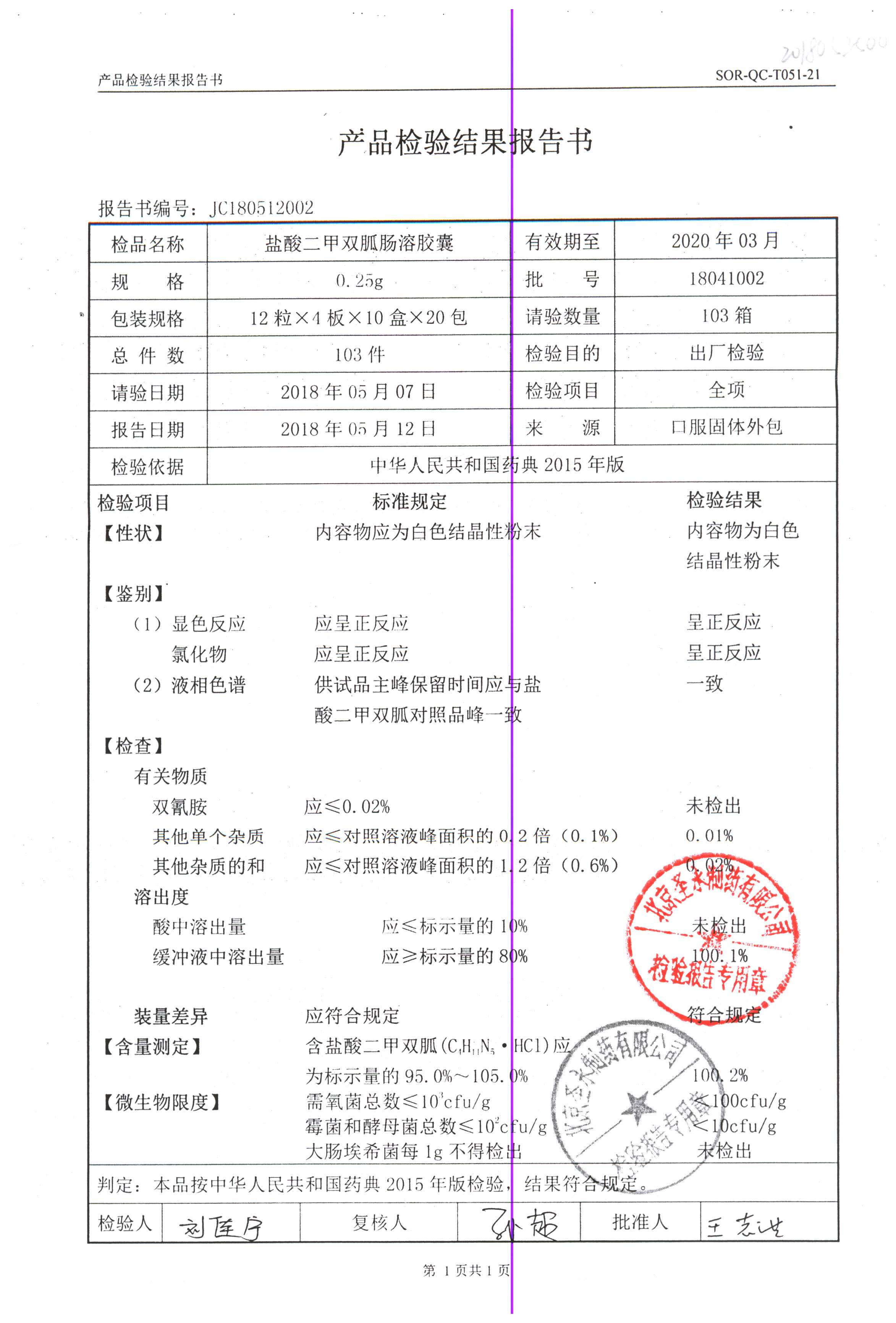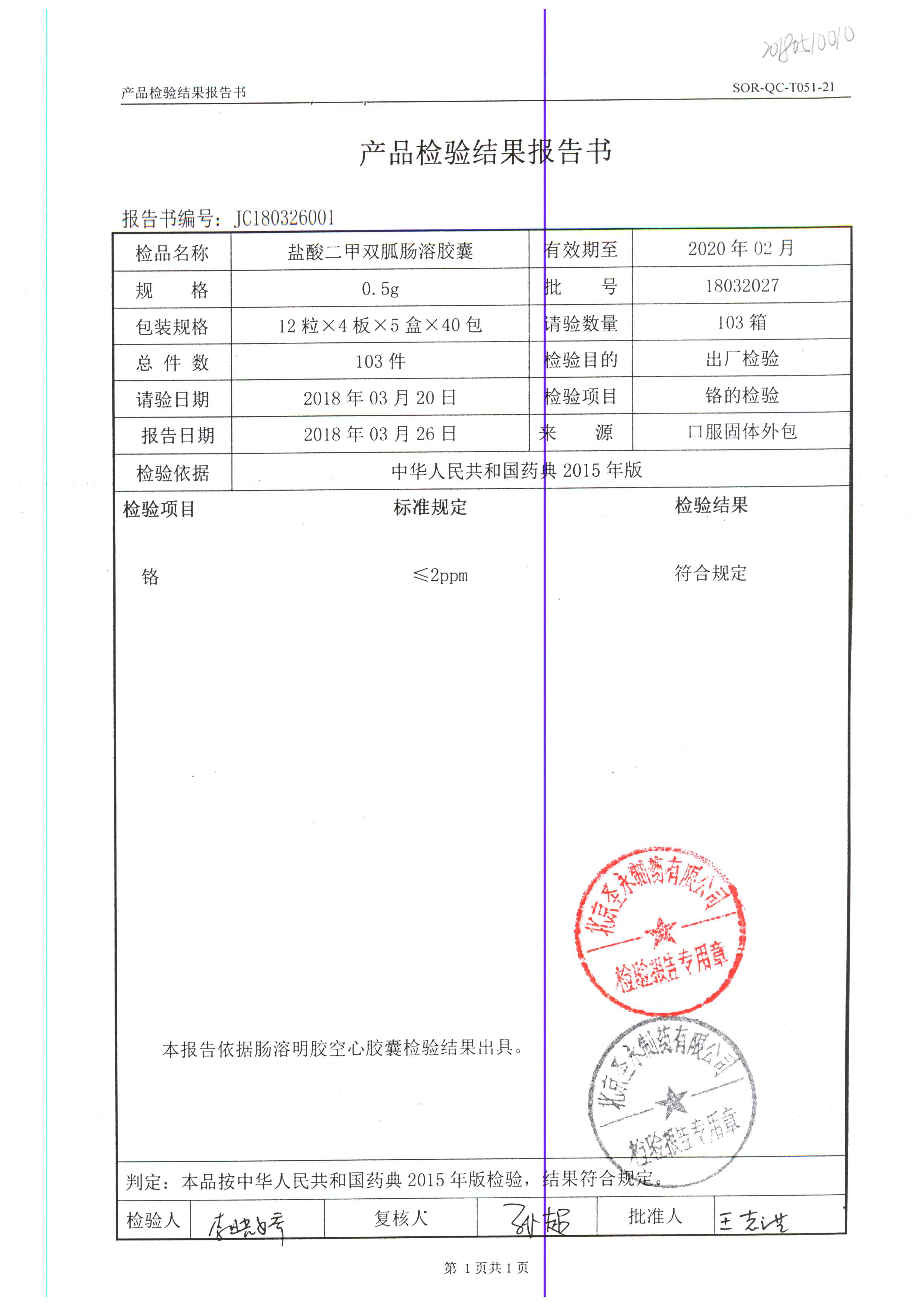 | 鹽酸二甲雙胍腸溶膠囊 | 0.5g*48s | 18042007(1/2) | 查看詳情 |