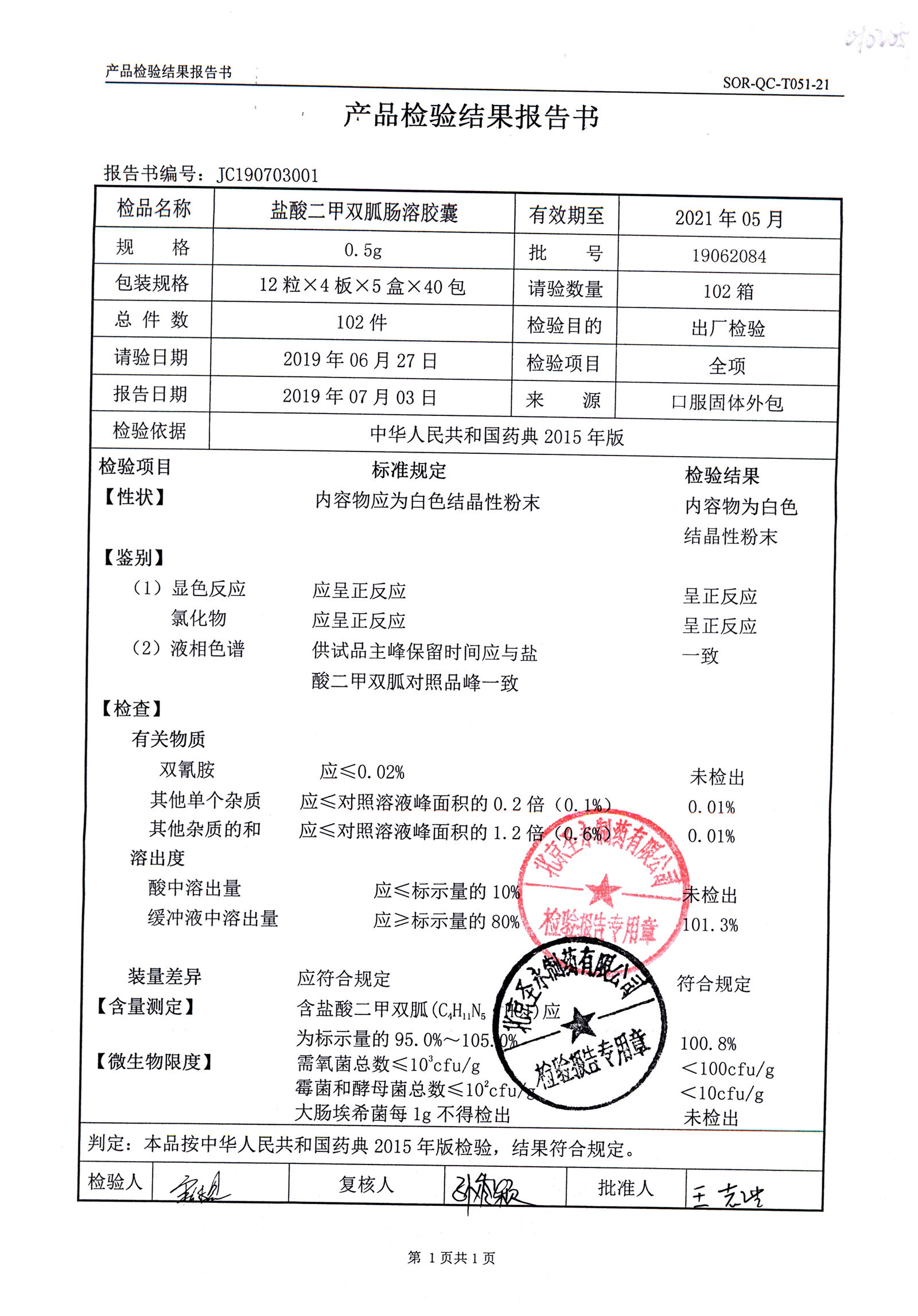 | 鹽酸二甲雙胍腸溶膠囊 | 0.5g*48s | 19062011(1/2) | 查看詳情 |