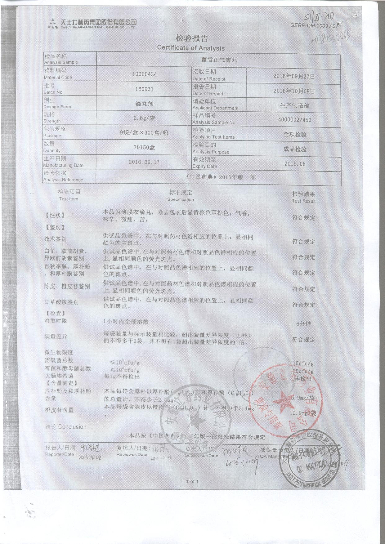 藿香正氣滴丸 2.6g*9袋 160931 查看詳情