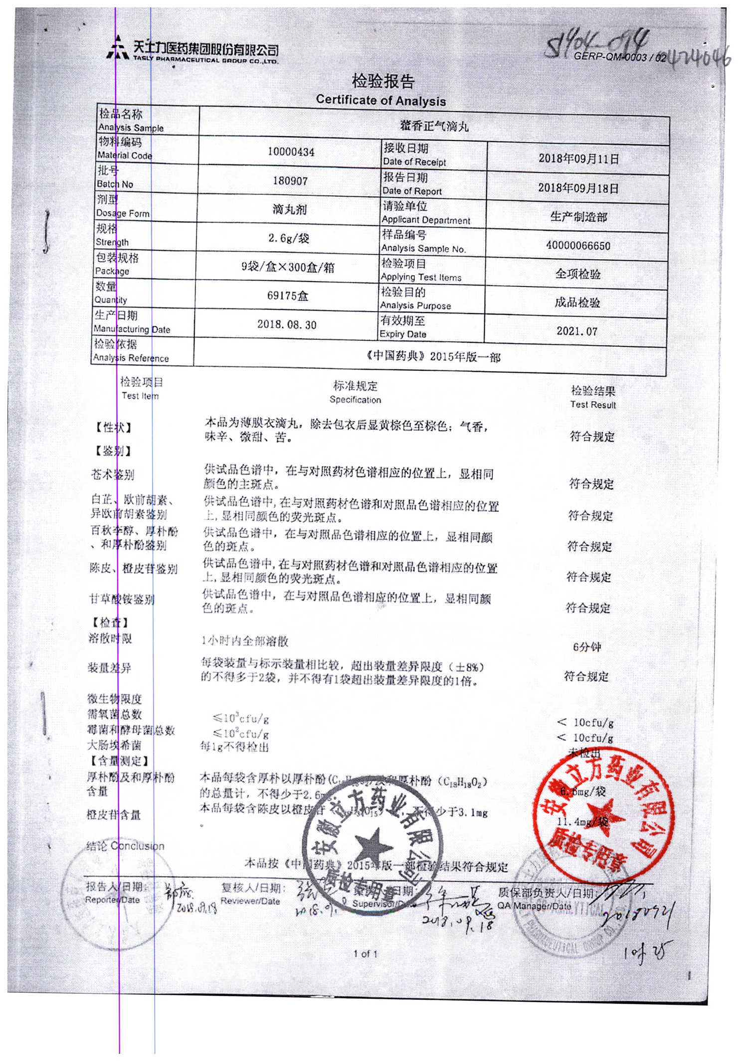 藿香正氣滴丸 2.6g*9袋 180907 查看詳情