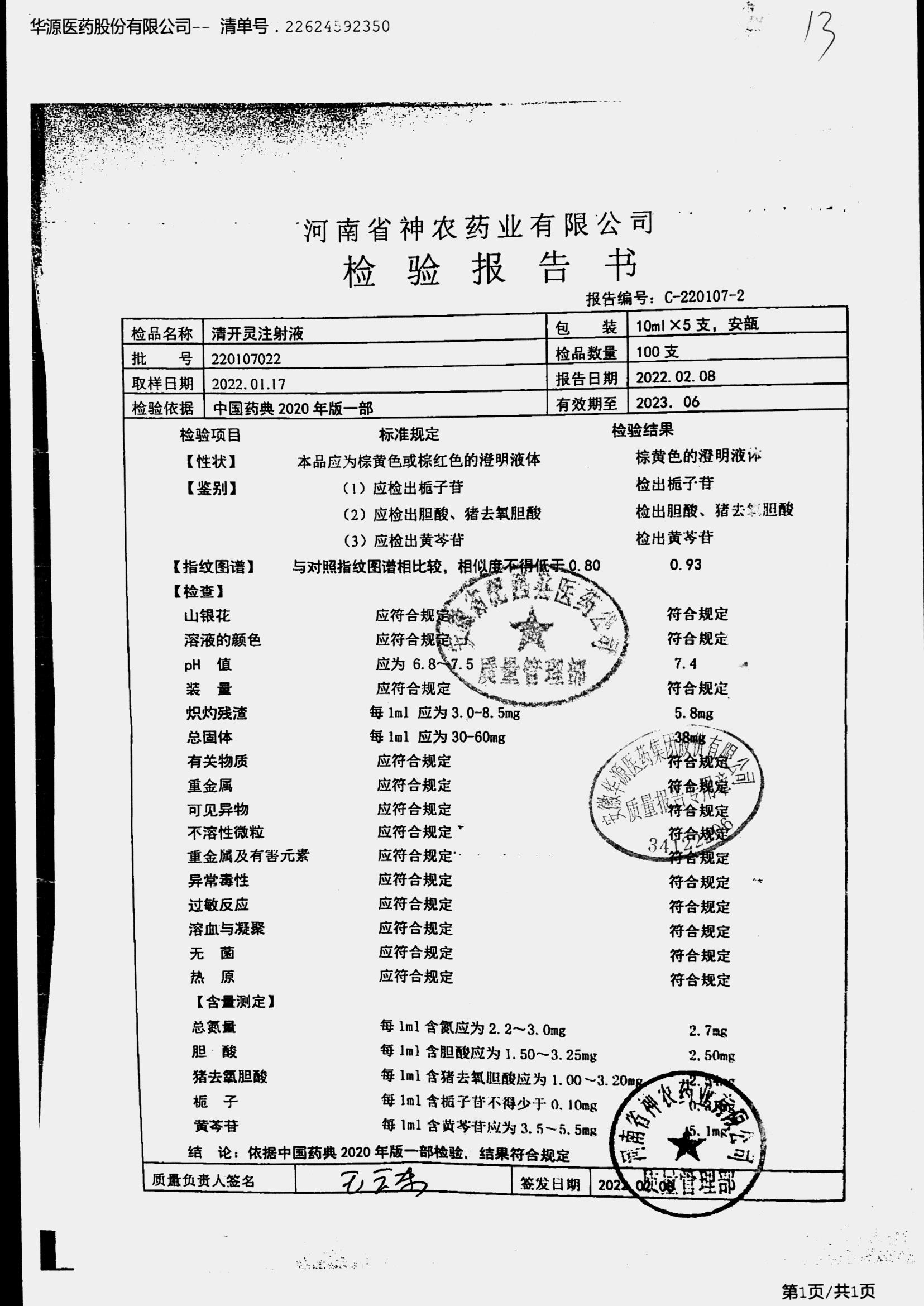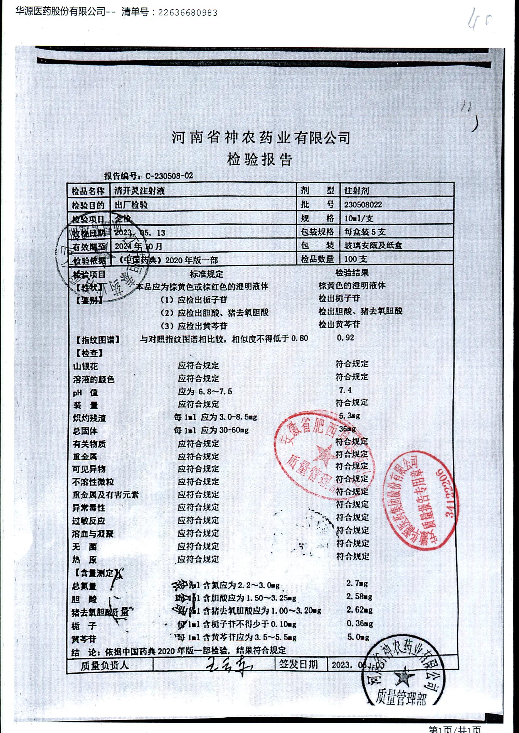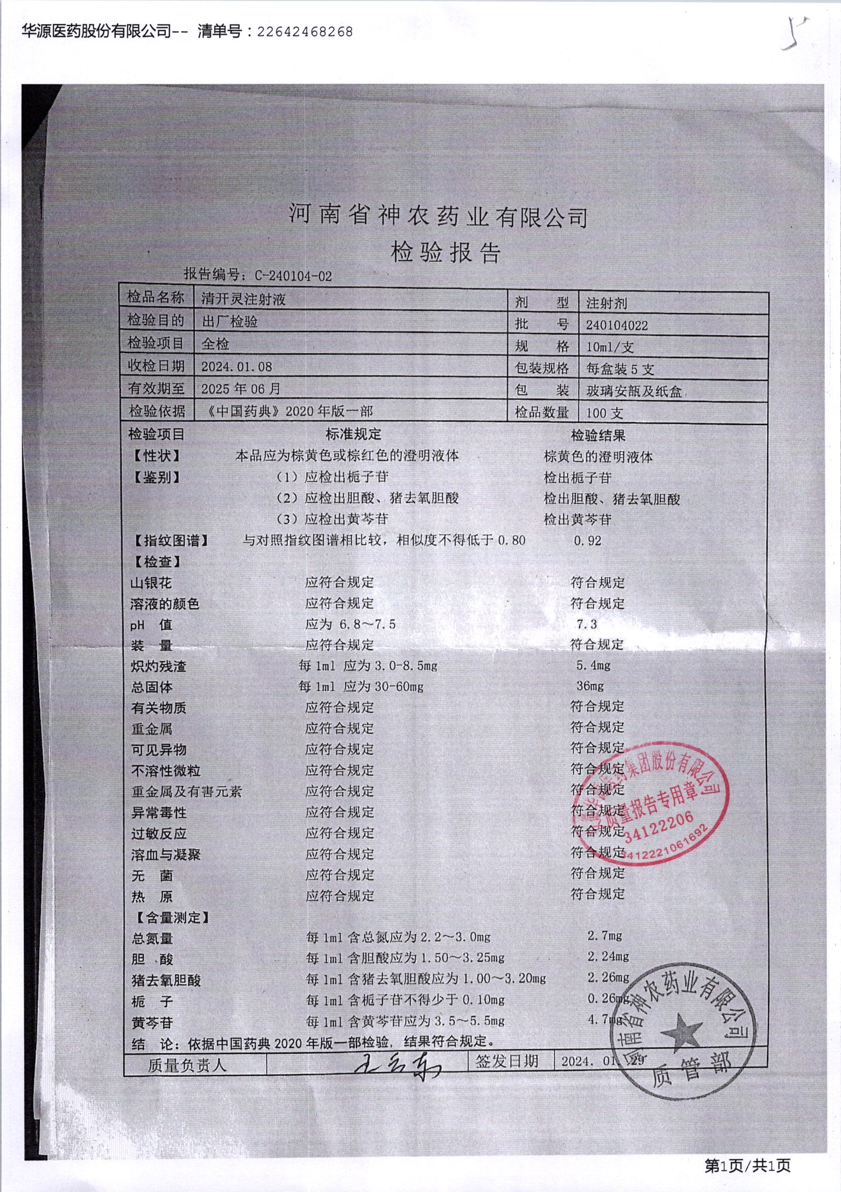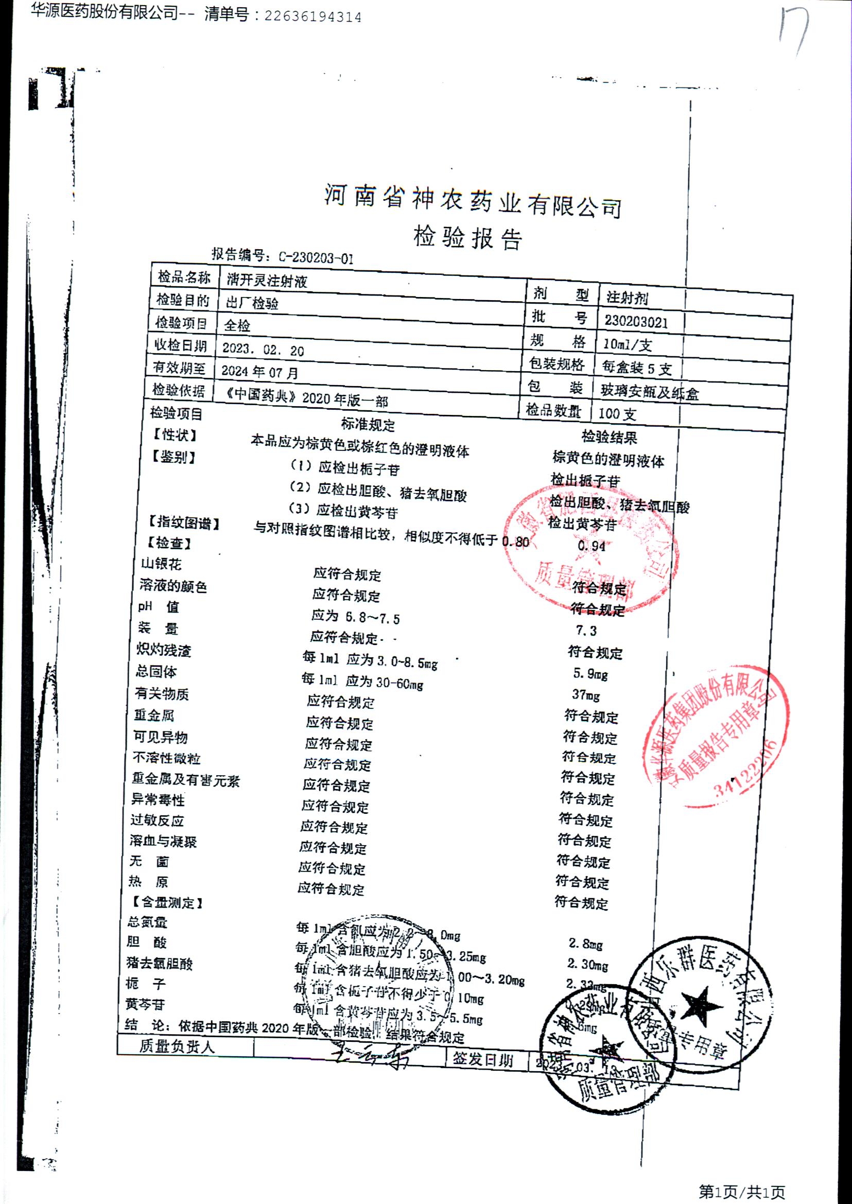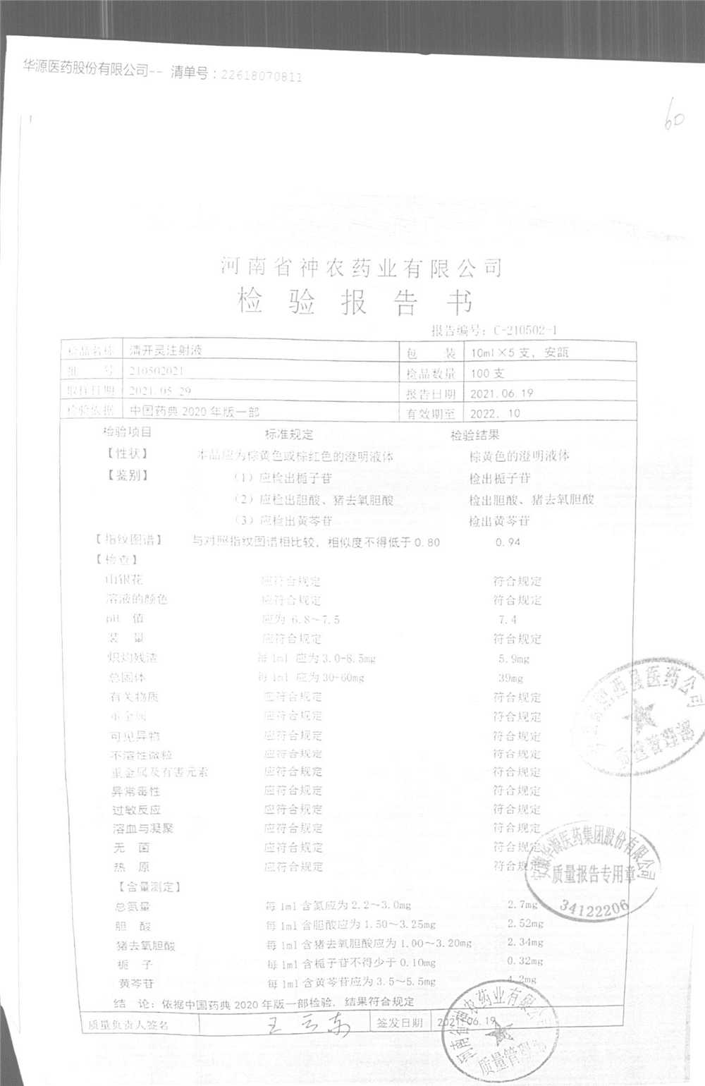 | 清開靈注射液 | 10ml*5支 | 220409021 | 查看詳情 |