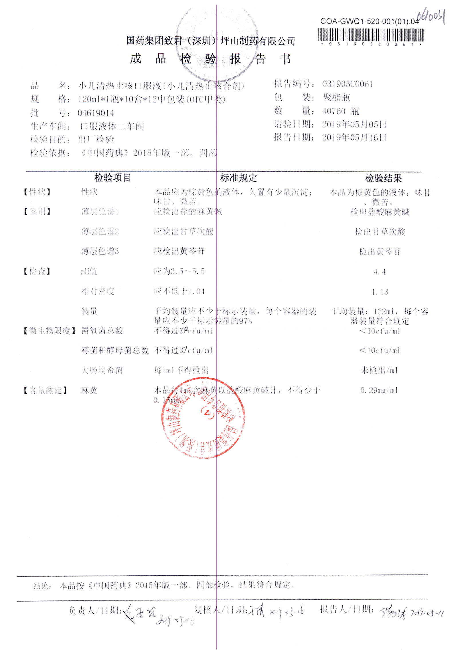 | 名稱 | 規(guī)格 | 批號(hào) | 藥檢報(bào)告 |
