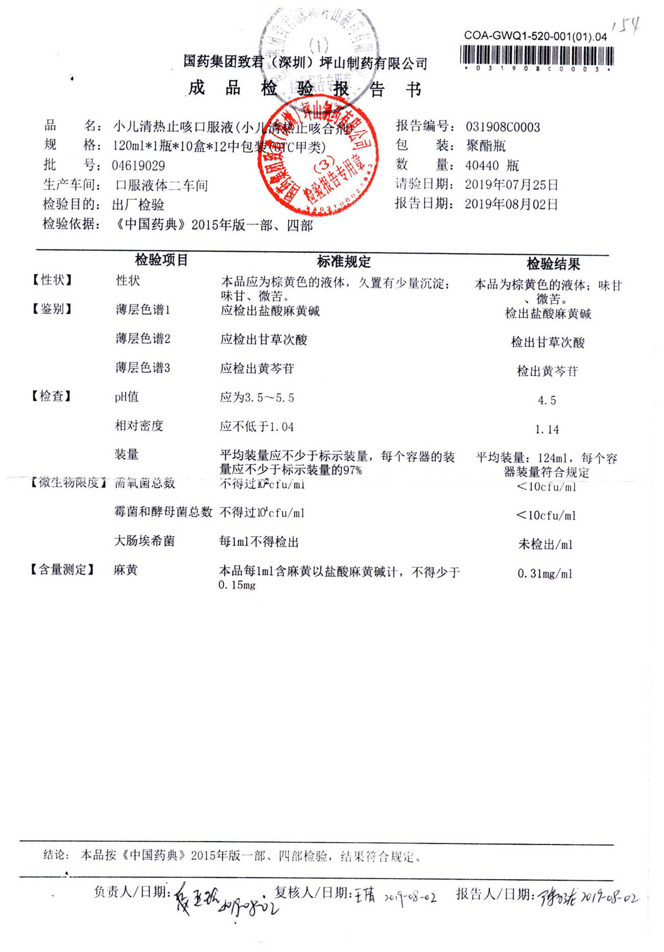| 小兒清熱止咳口服液 | 120ml | 04618036 | 查看詳情 |