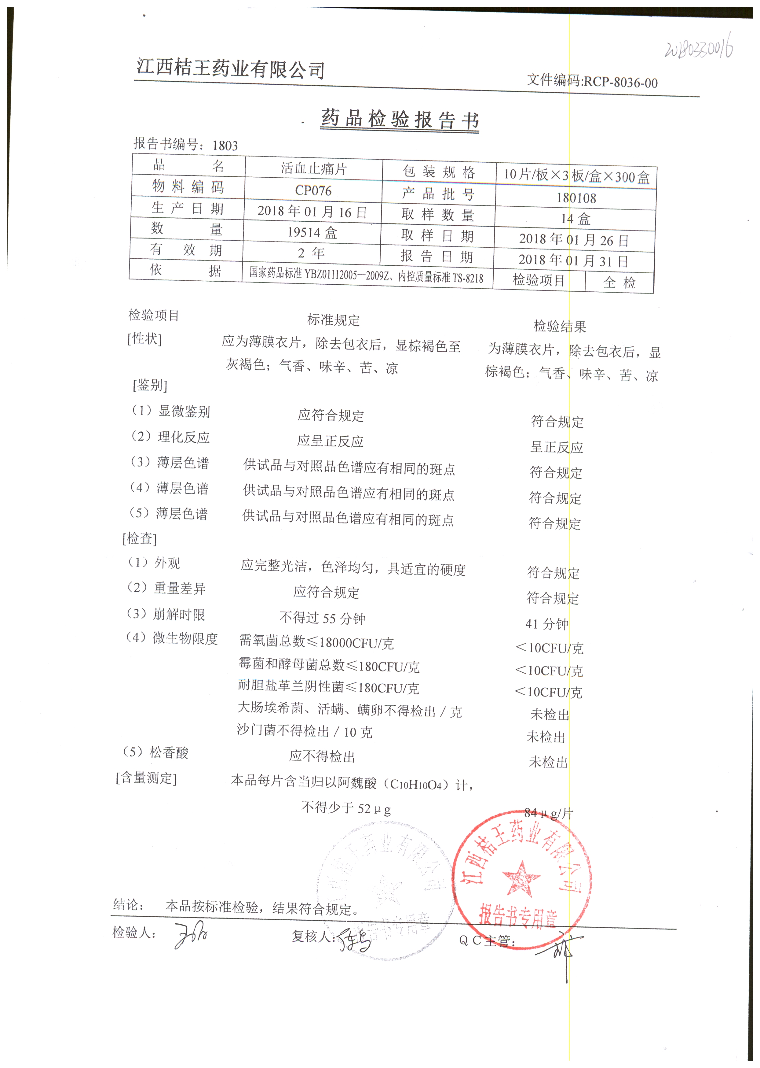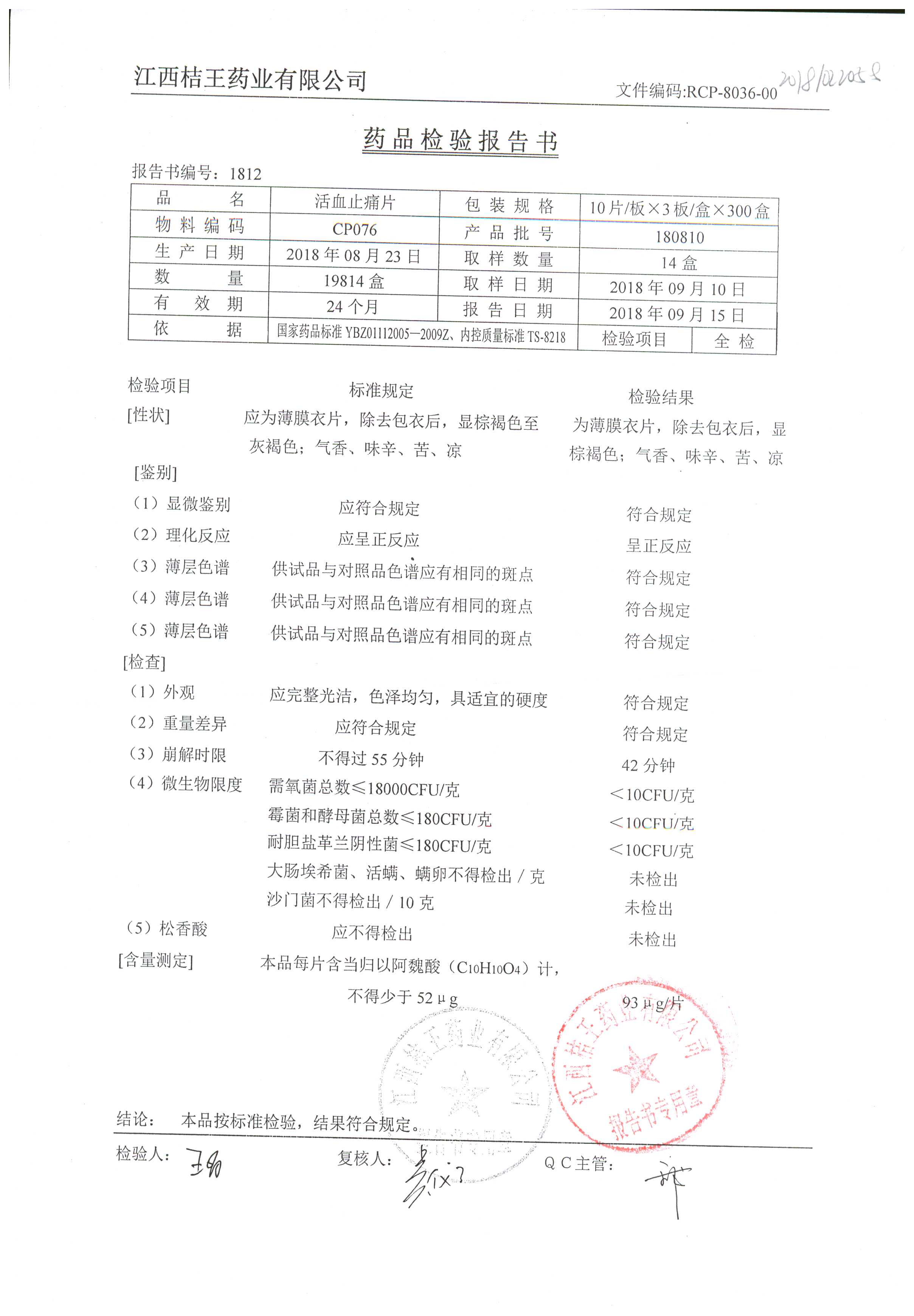 | 名稱 | 規(guī)格 | 批號(hào) | 藥檢報(bào)告 |