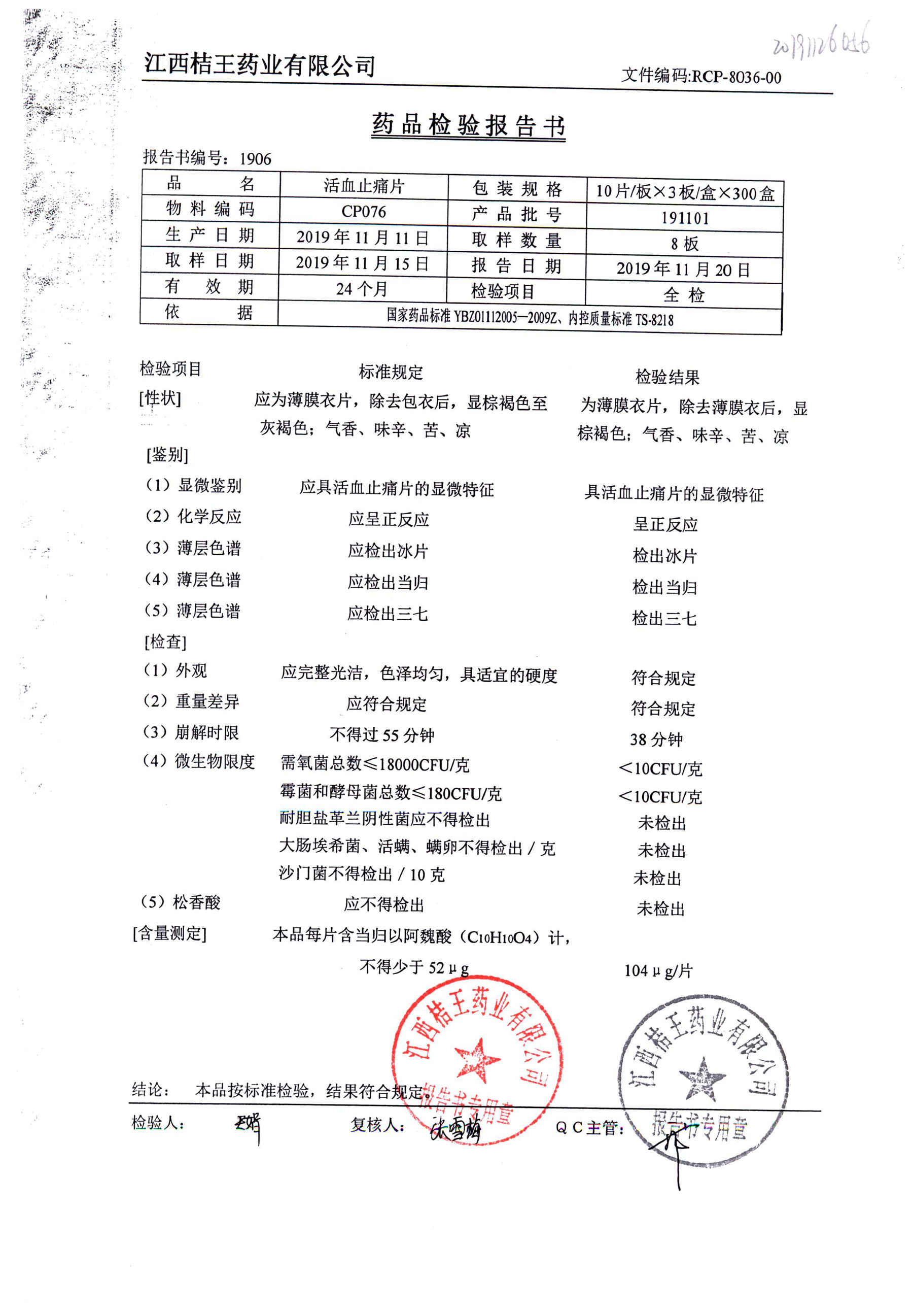 | 活血止痛片 | 10s*3板 | 191101 | 查看詳情 |