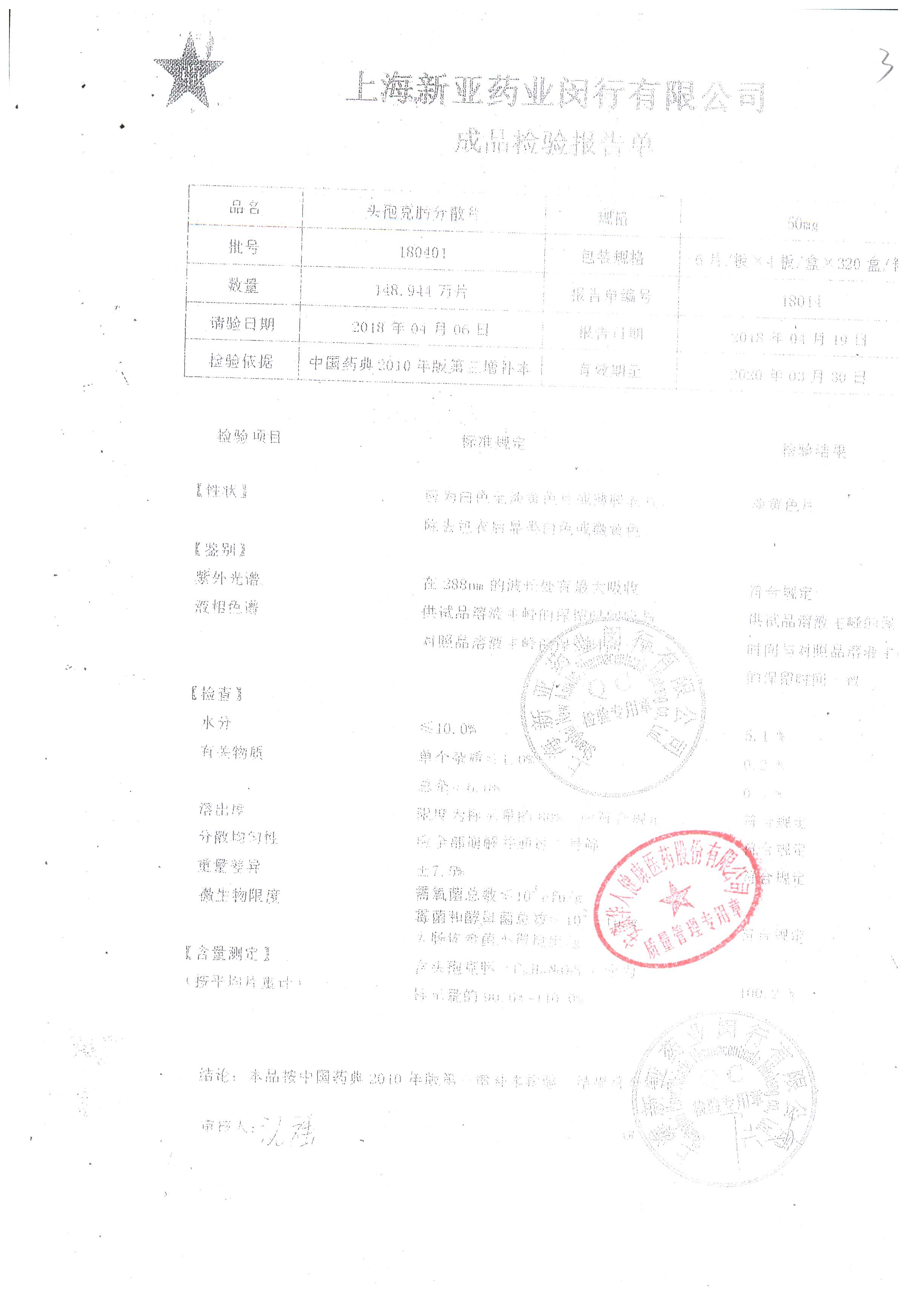 | 頭孢克肟分散片 | 50mg*24s | 190703 | 查看詳情 |