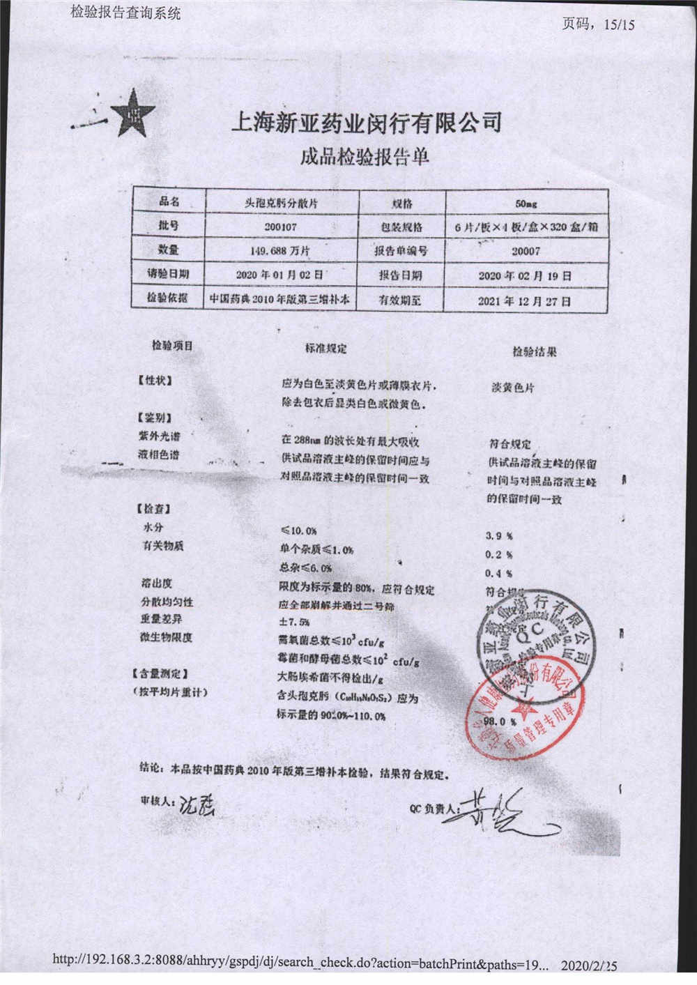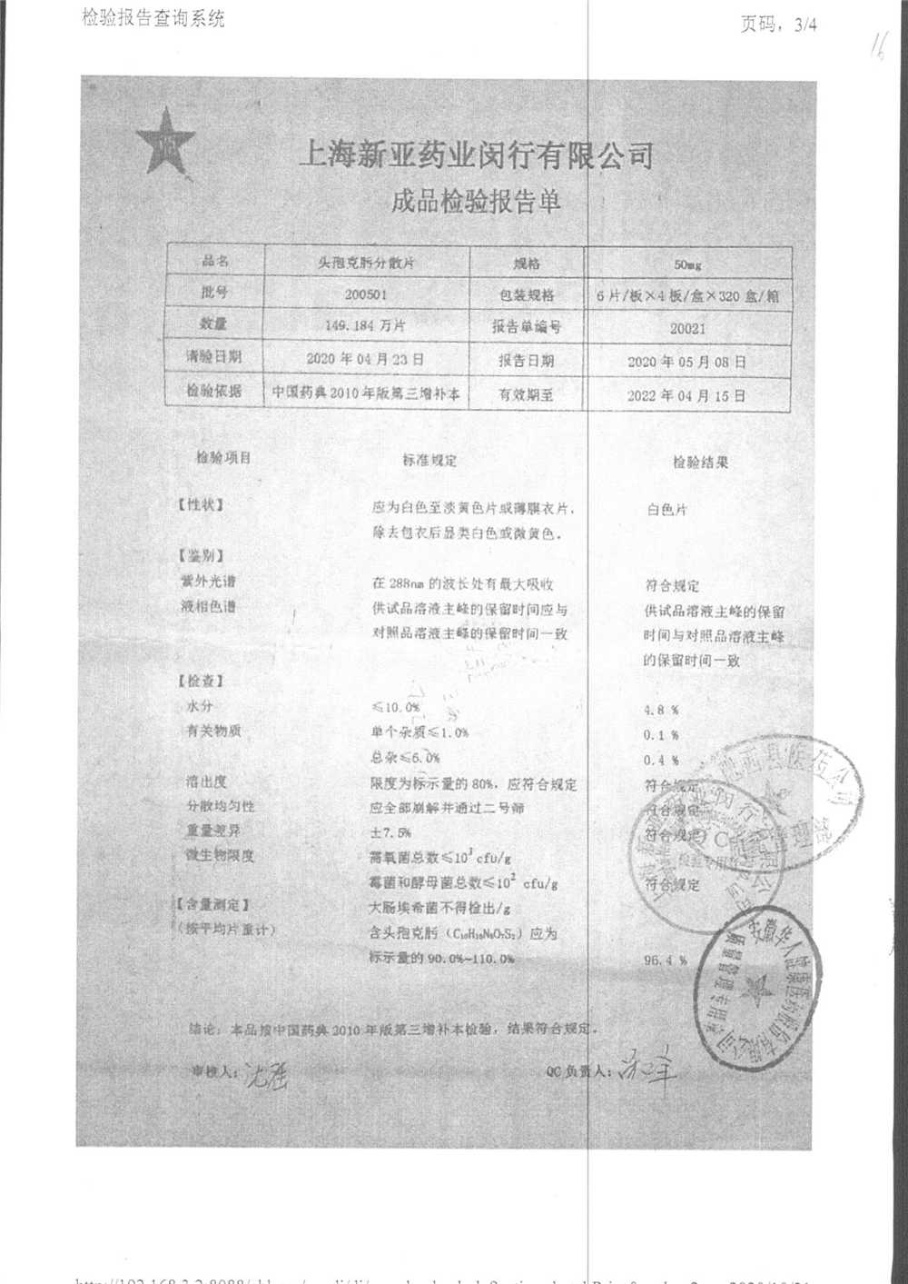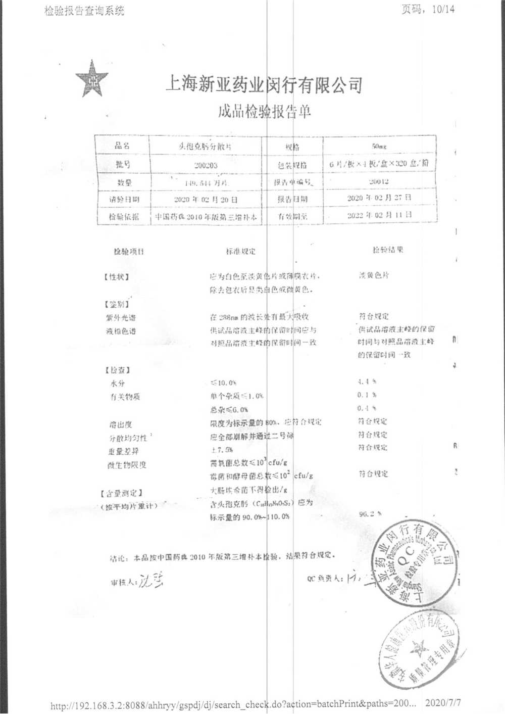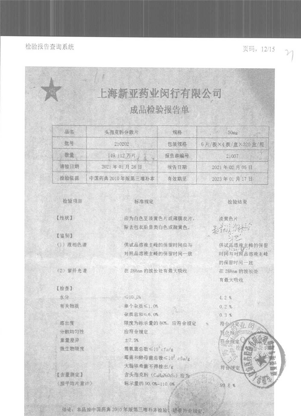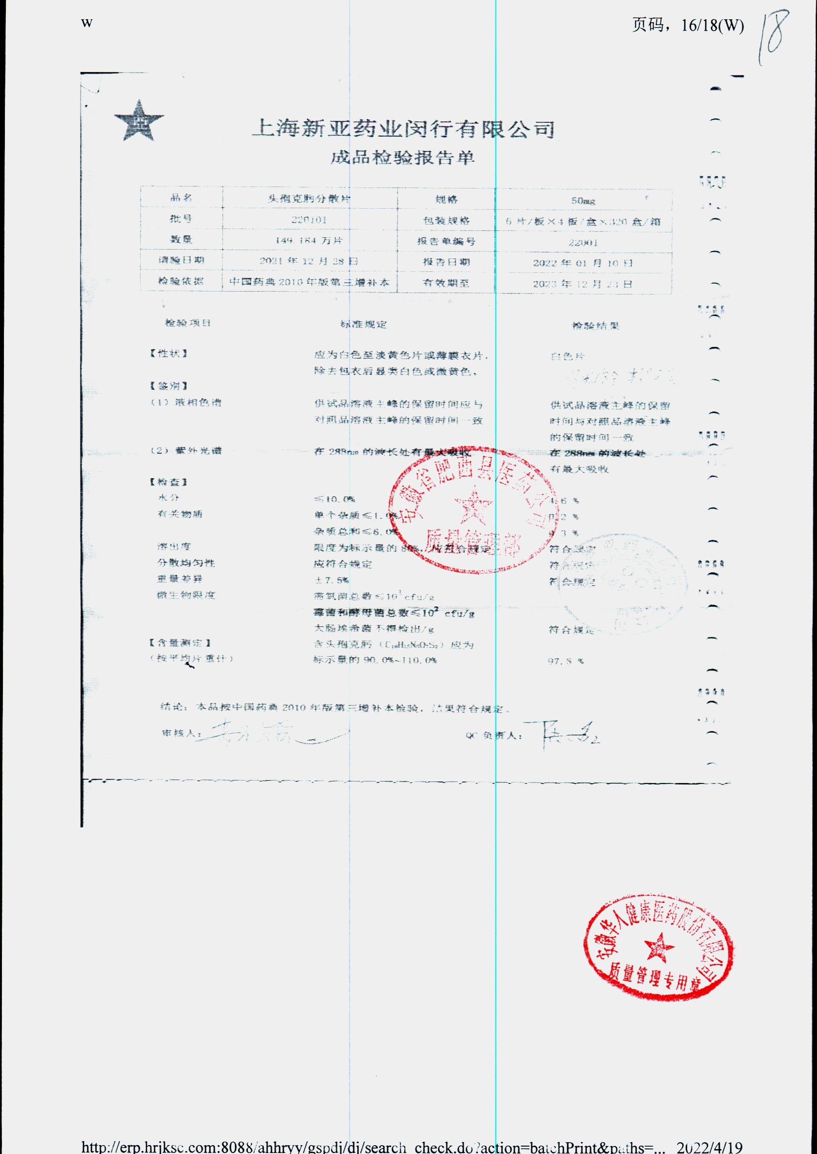 | 頭孢克肟分散片 | 50mg*24s | 210202 | 查看詳情 |