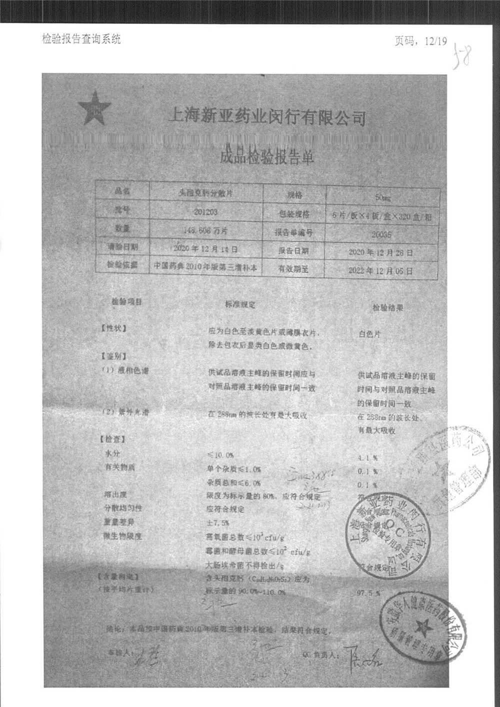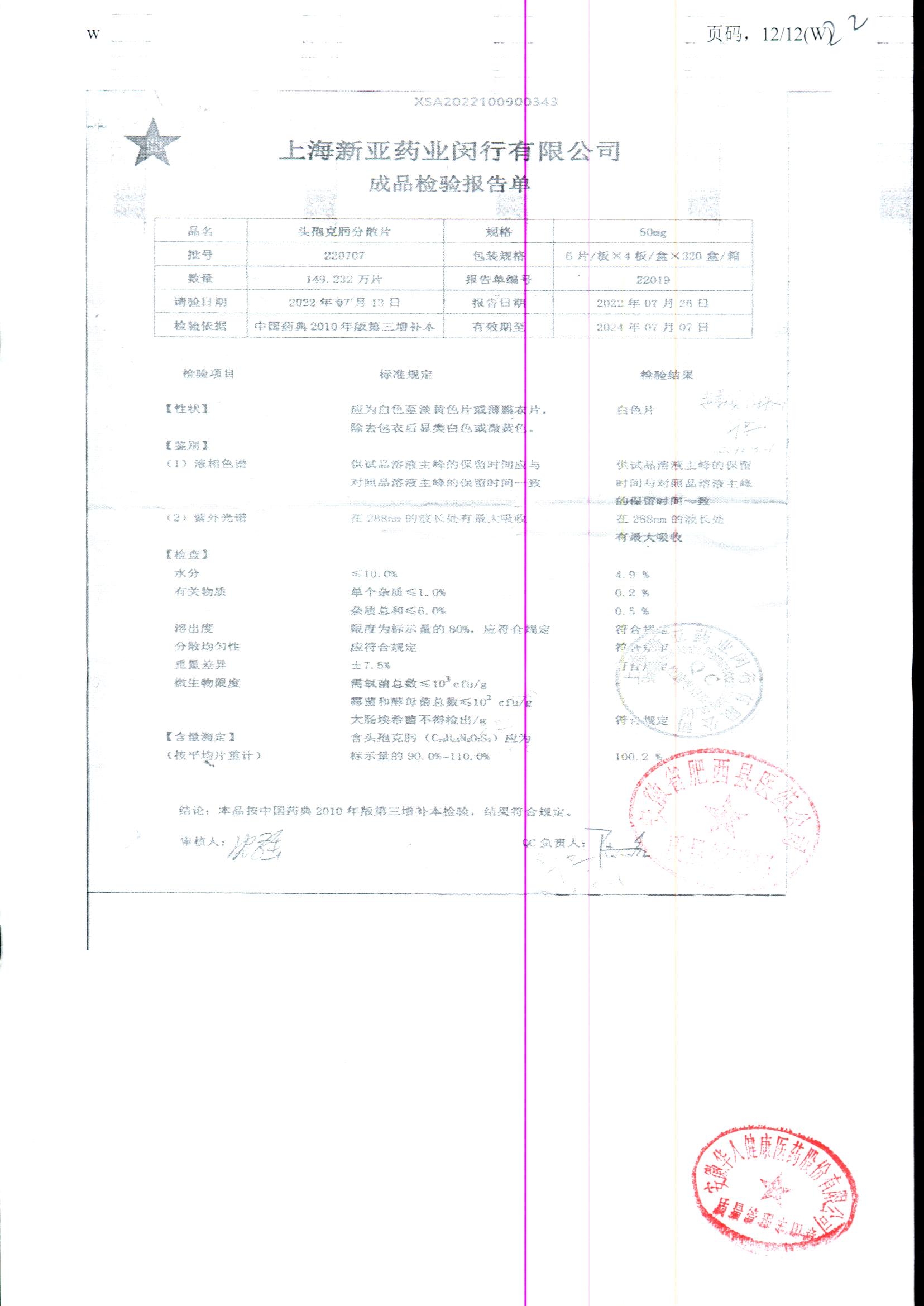 | 頭孢克肟分散片 | 50mg*24s | 191202 | 查看詳情 |