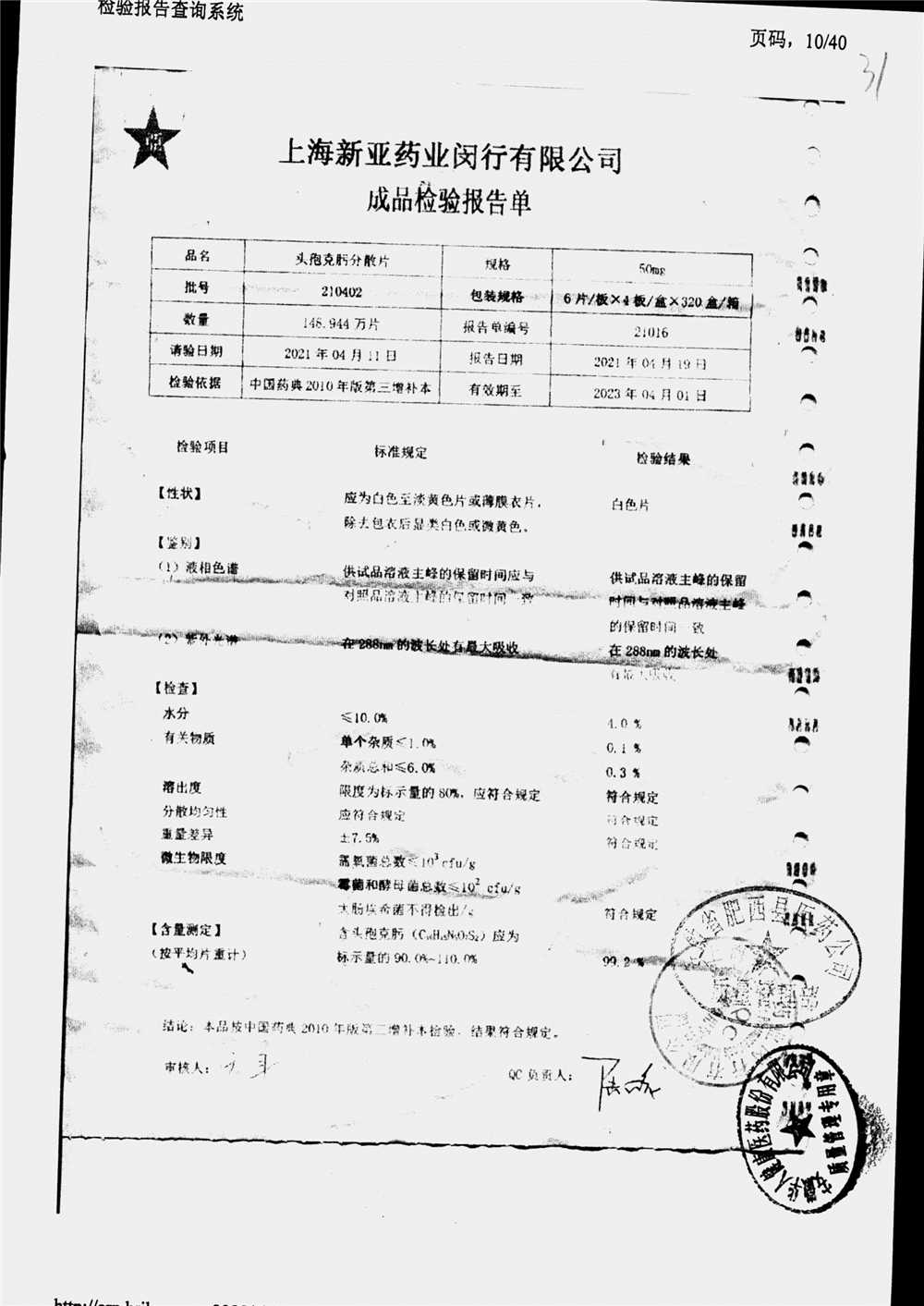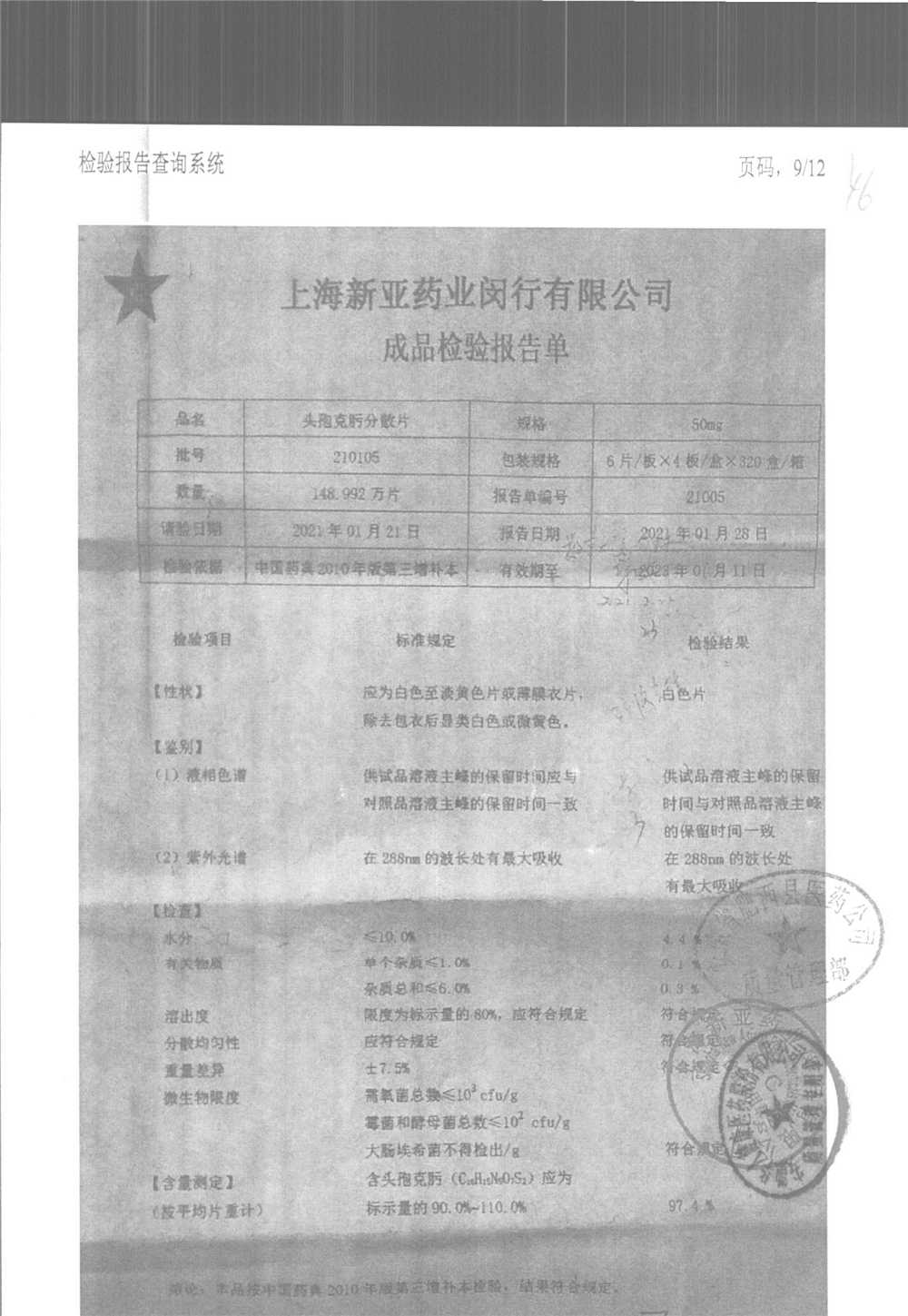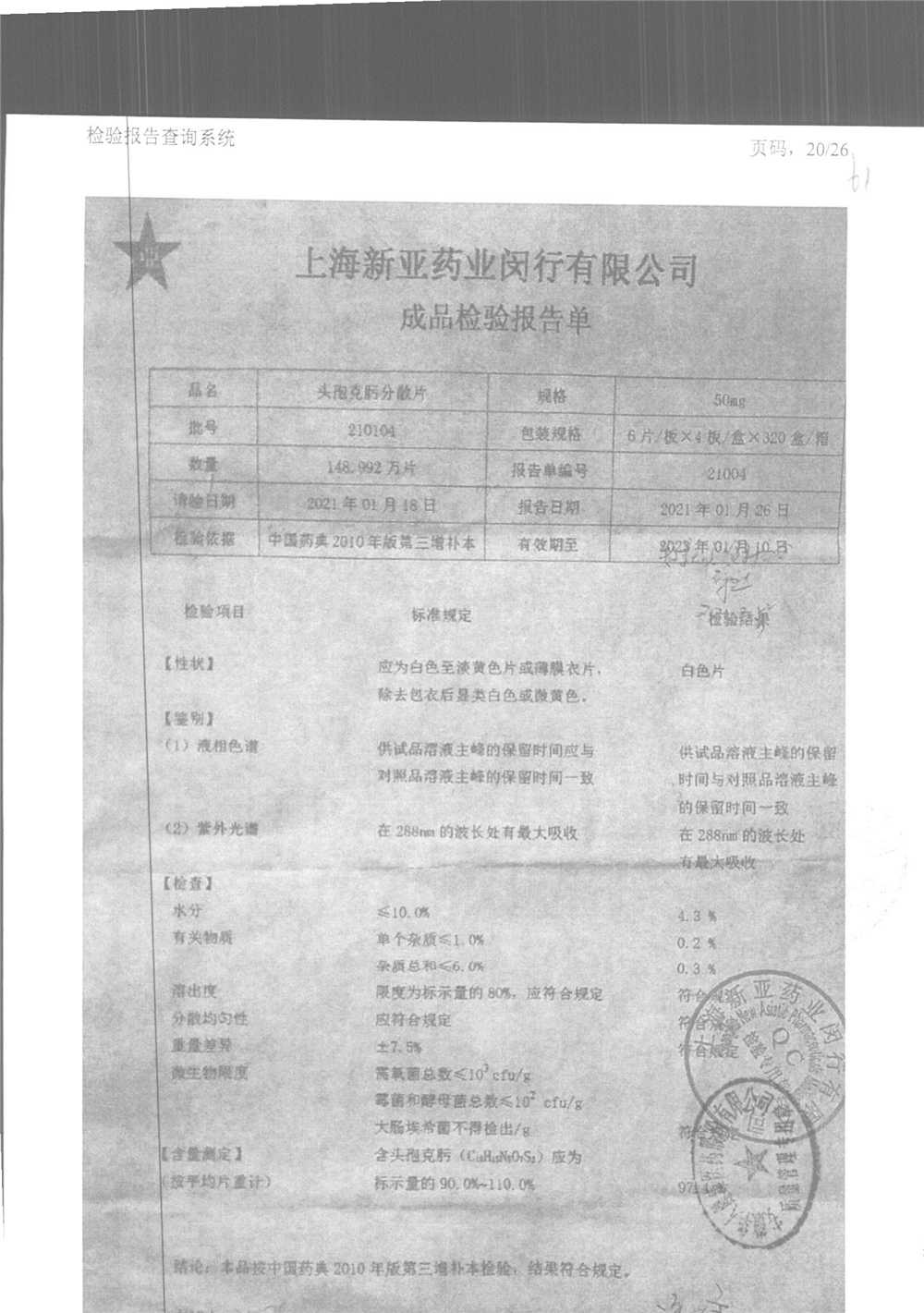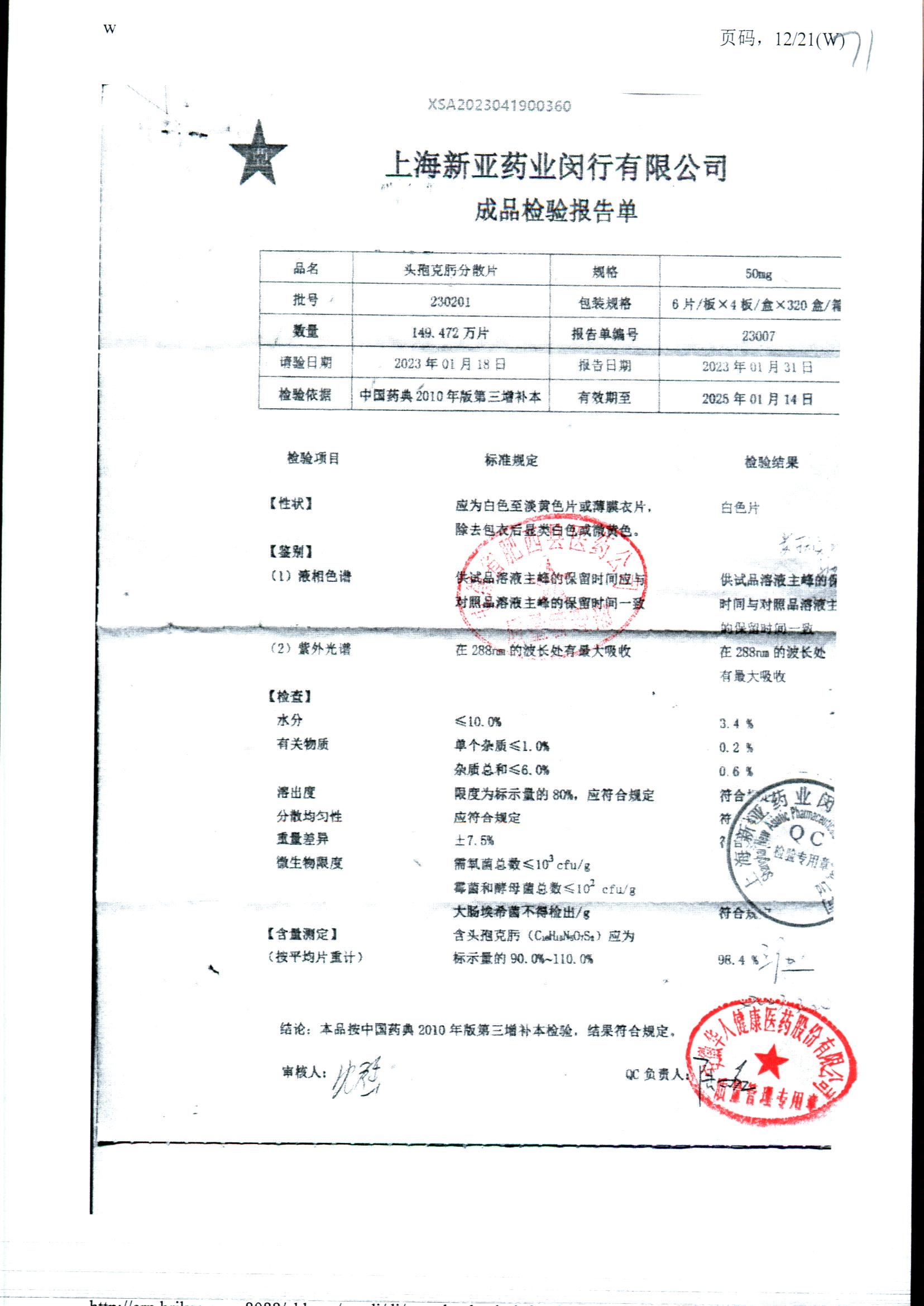 | 頭孢克肟分散片 | 50mg*24s | 210404 | 查看詳情 |