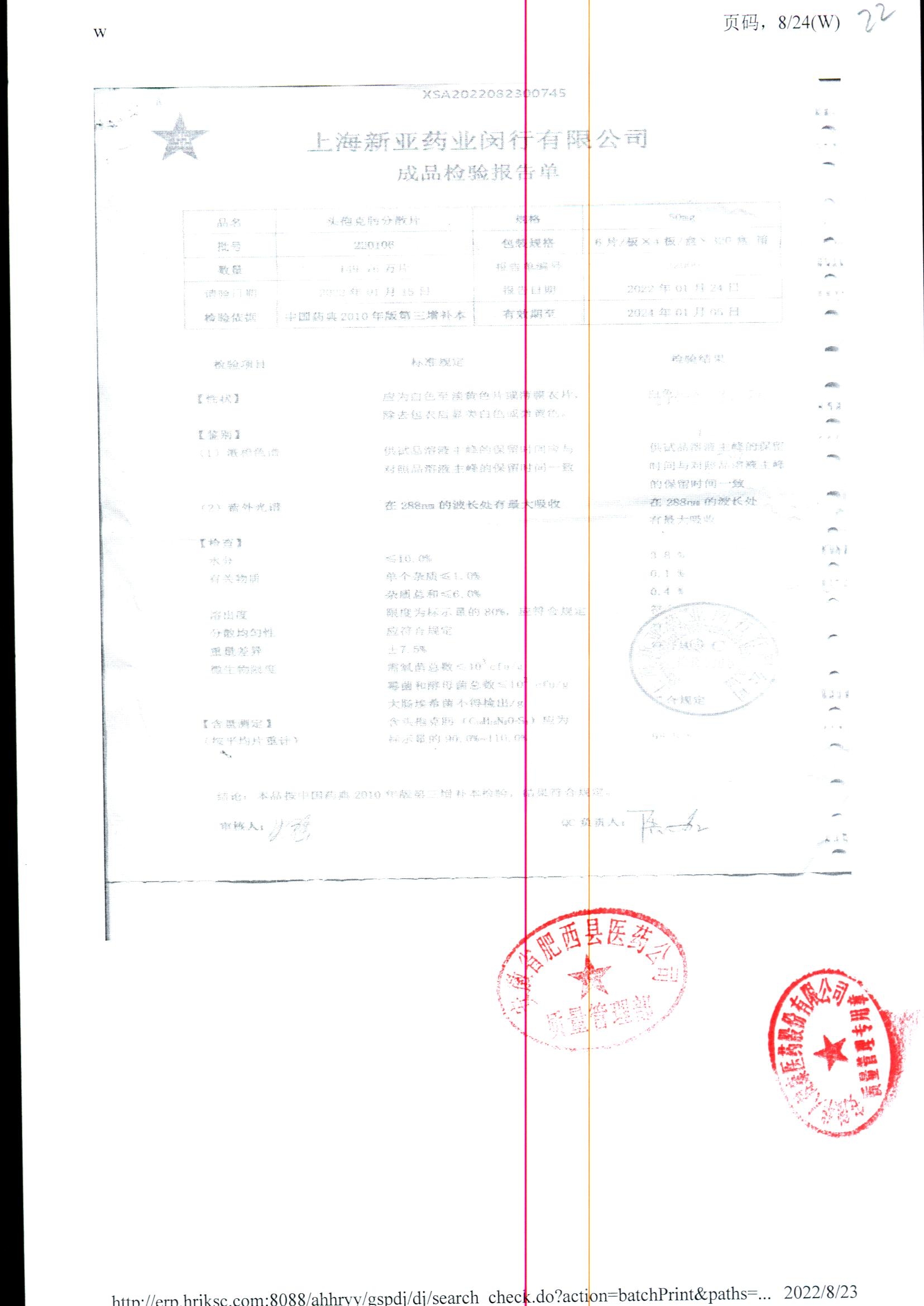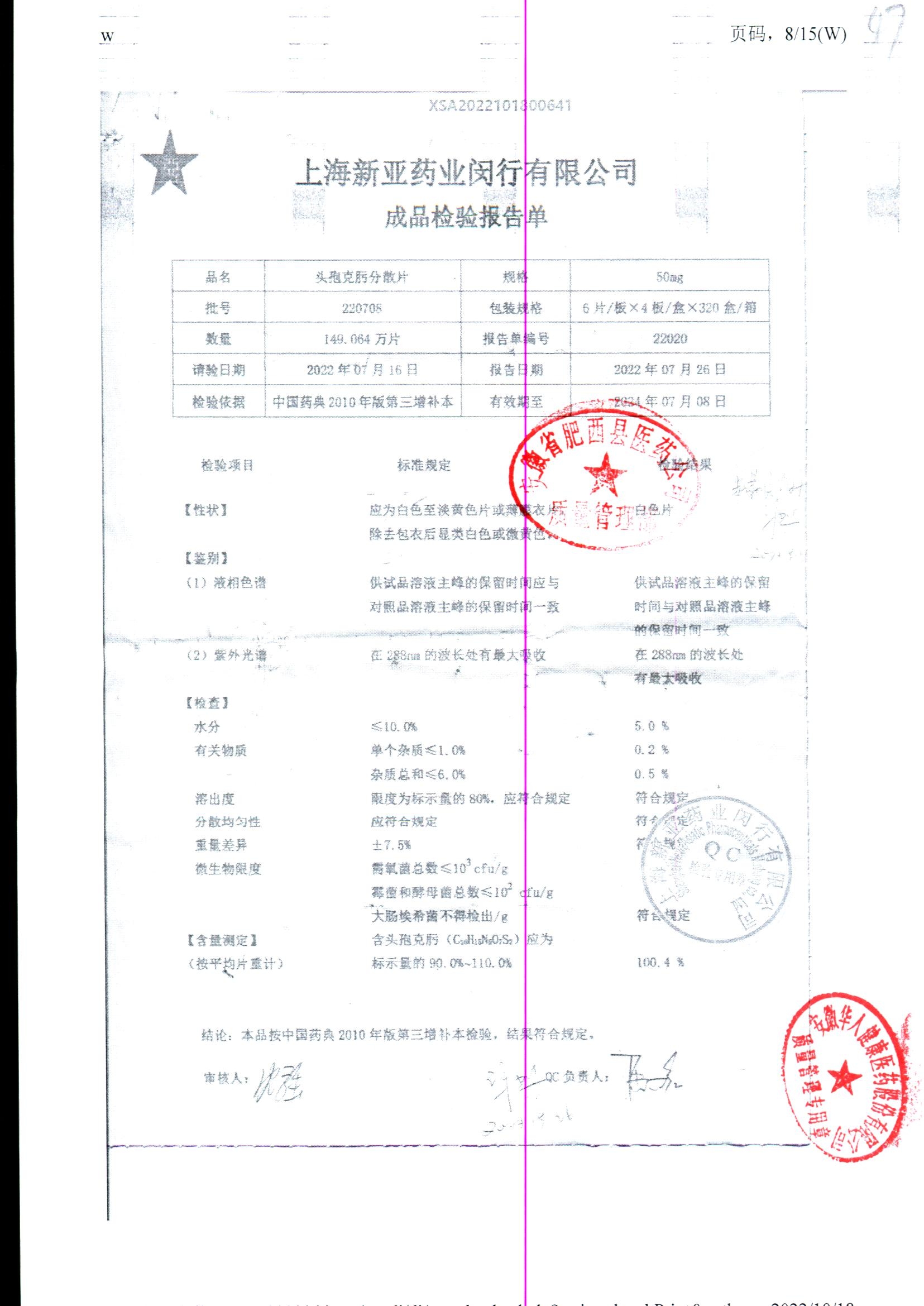 | 頭孢克肟分散片 | 50mg*24s | 220801 | 查看詳情 |