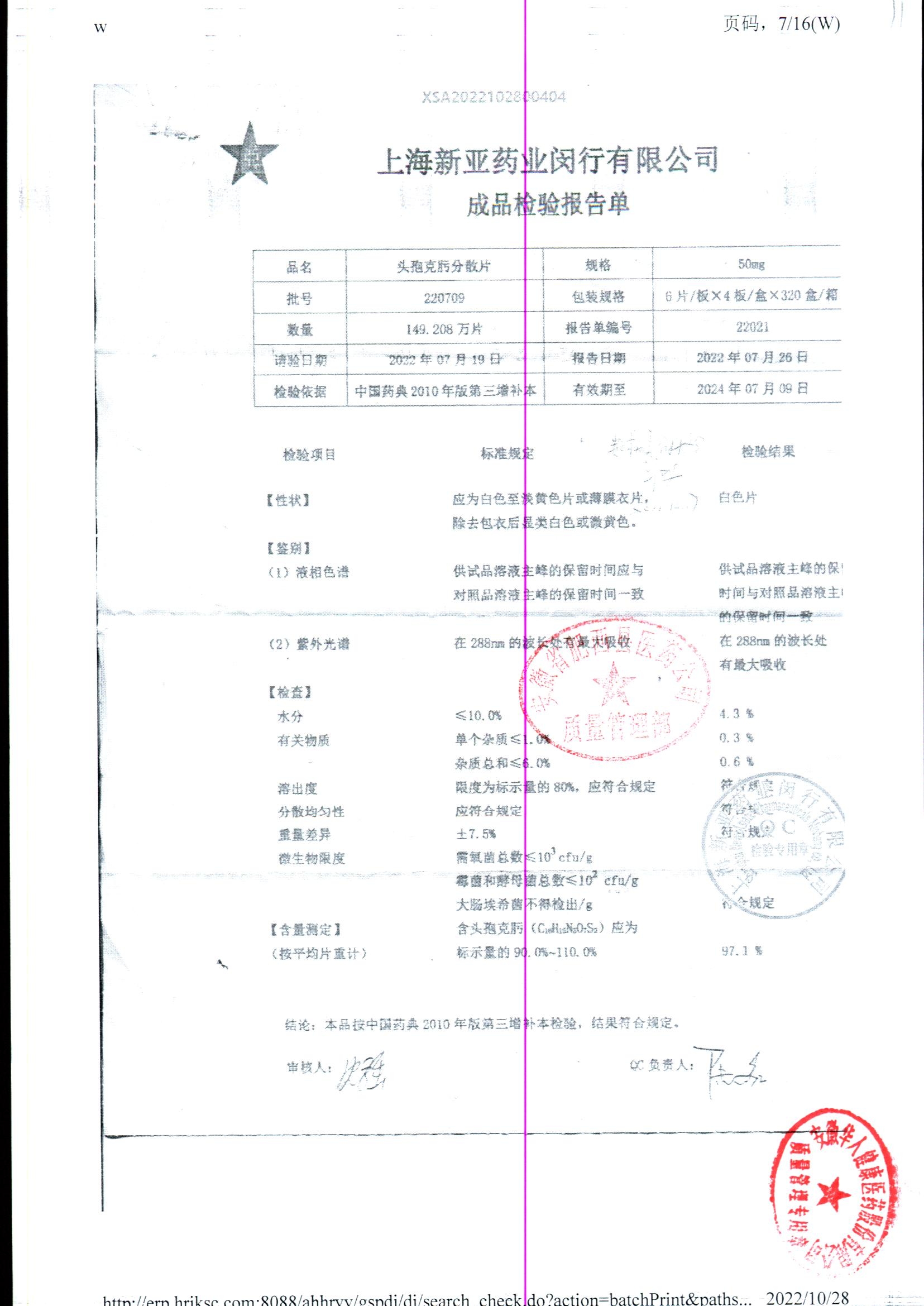 | 頭孢克肟分散片 | 50mg*24s | 220709 | 查看詳情 |