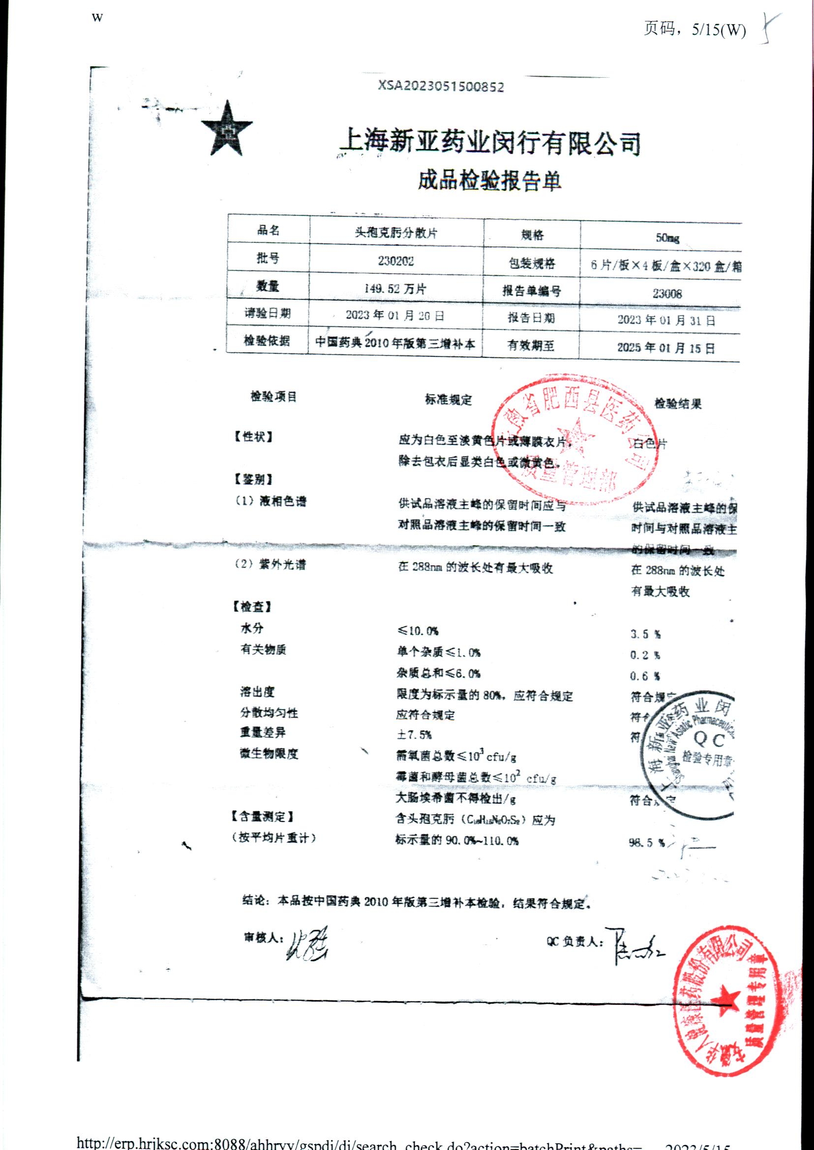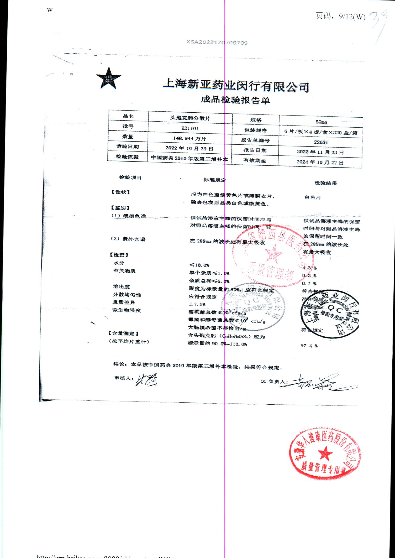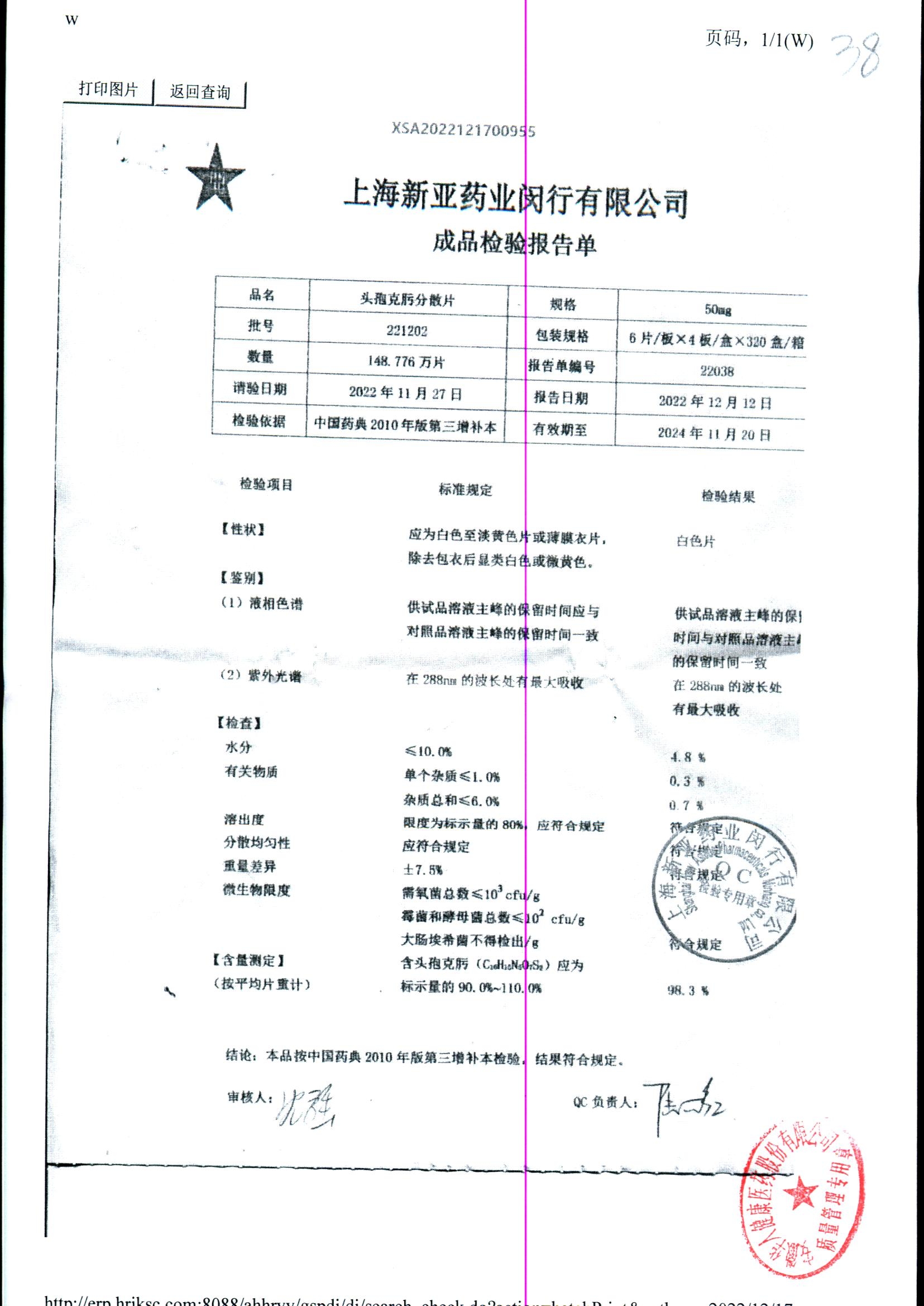 | 頭孢克肟分散片 | 50mg*24s | 230502 | 查看詳情 |