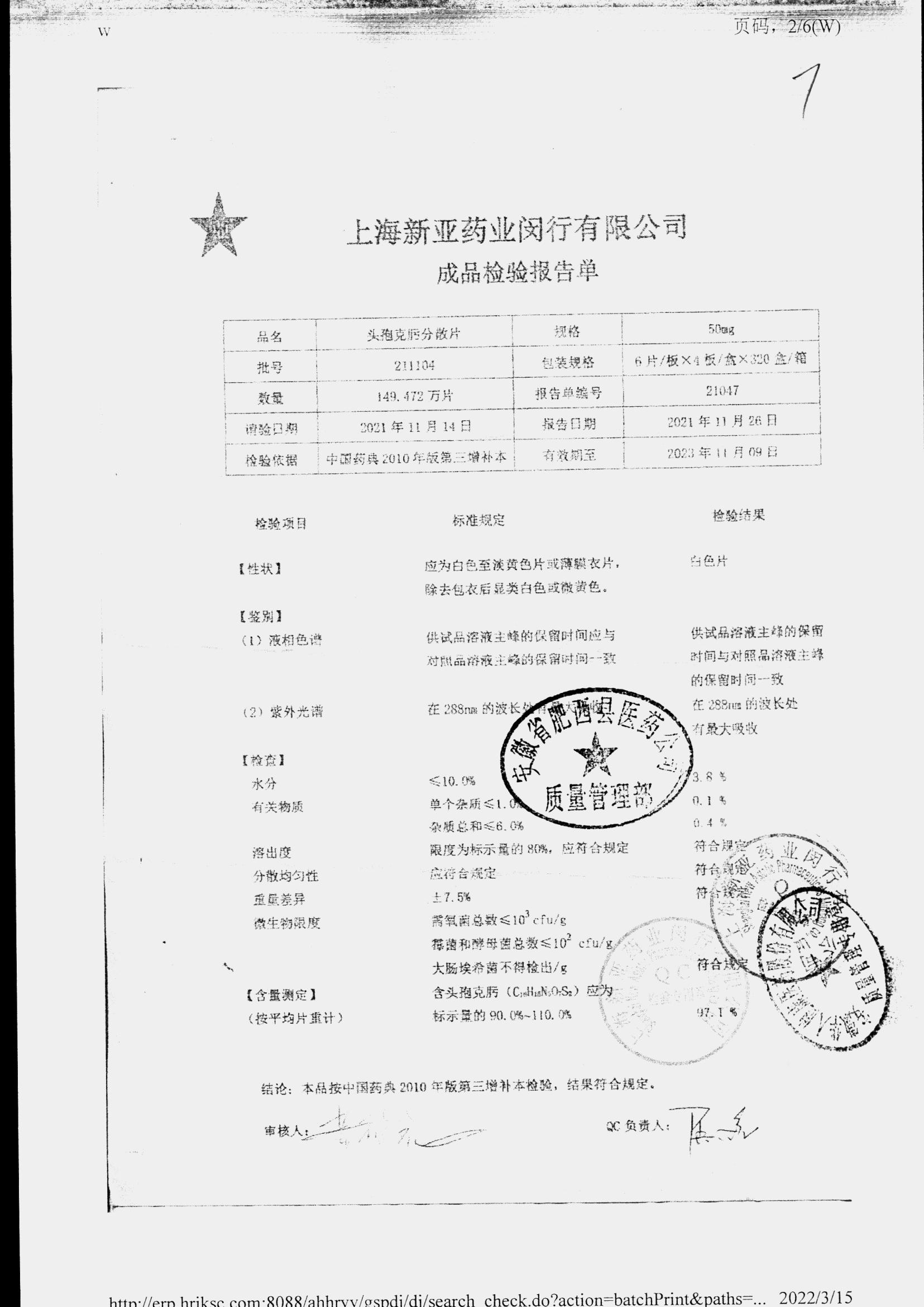| 頭孢克肟分散片 | 50mg*24s | 211103 | 查看詳情 |
