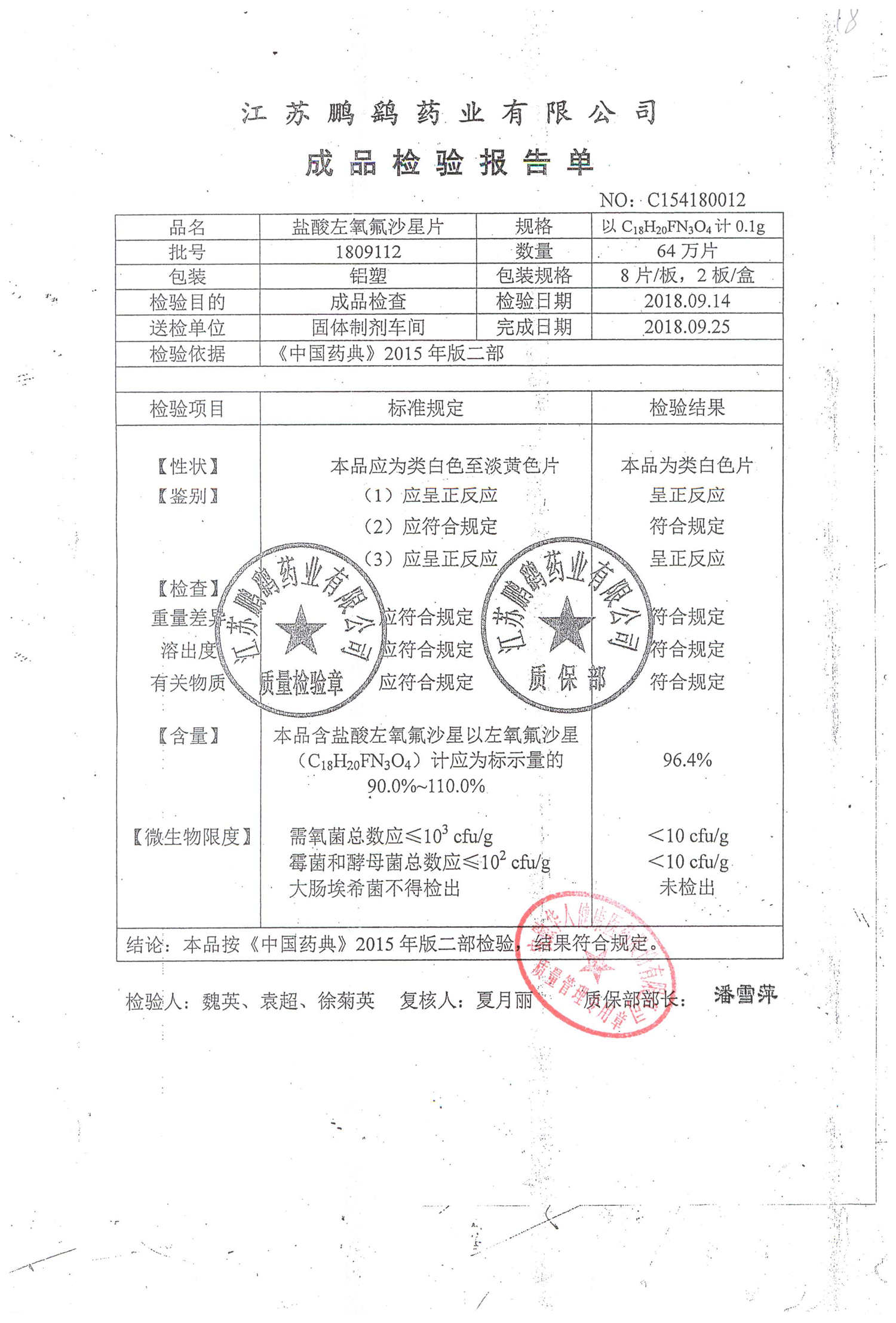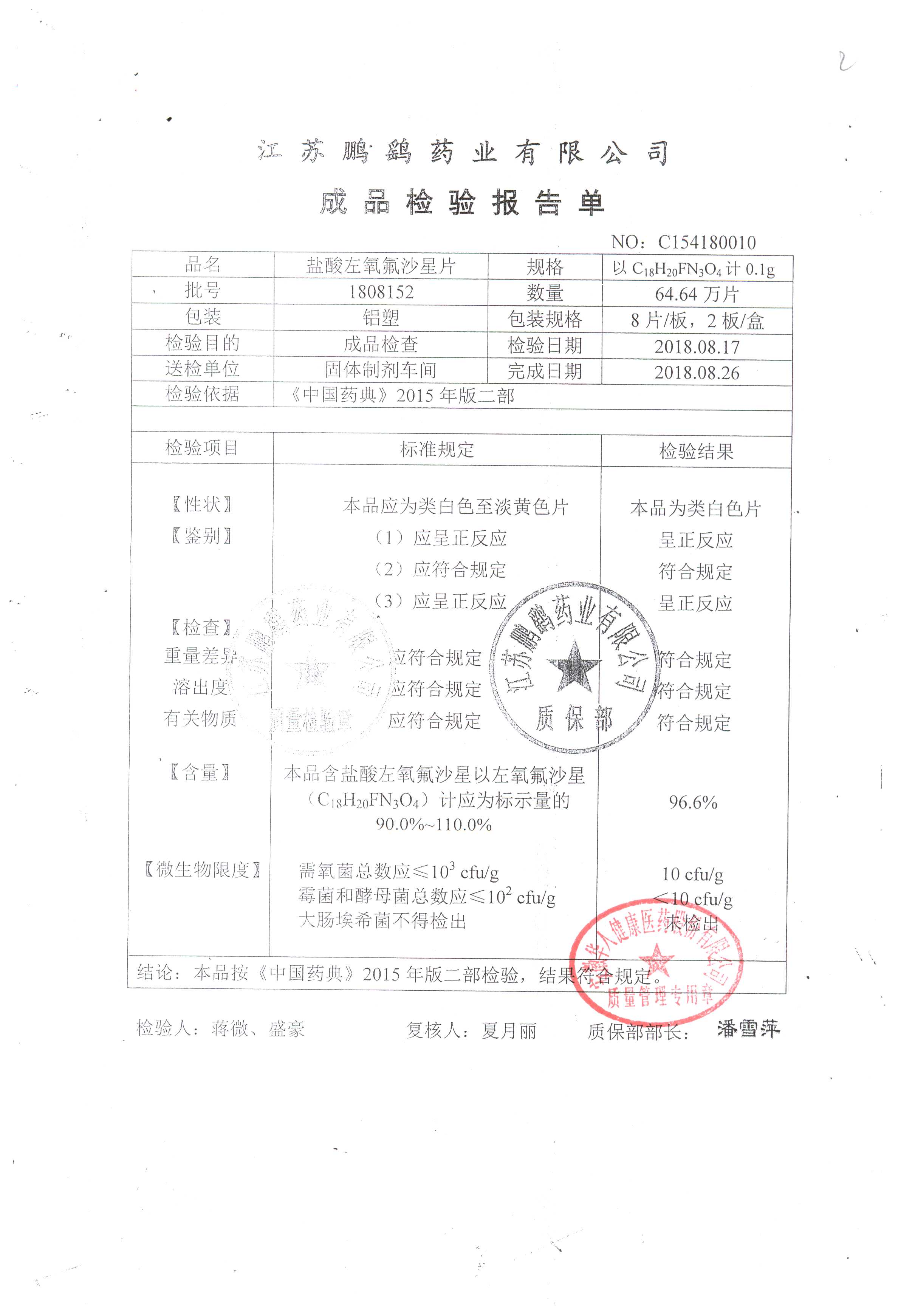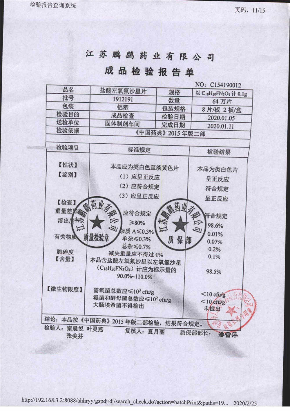 | 鹽酸左氧氟沙星片 | 16s | 2012071 | 查看詳情 |