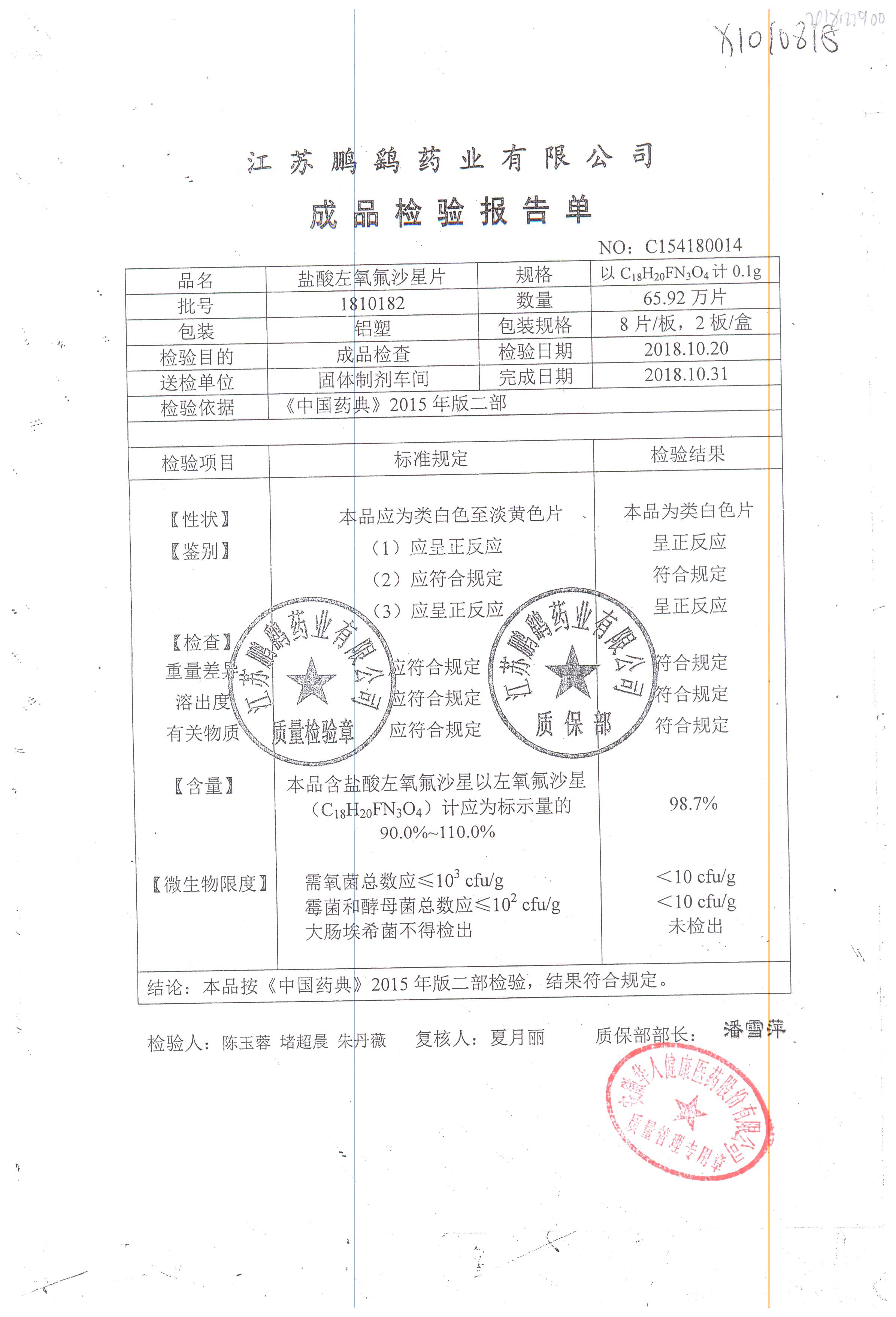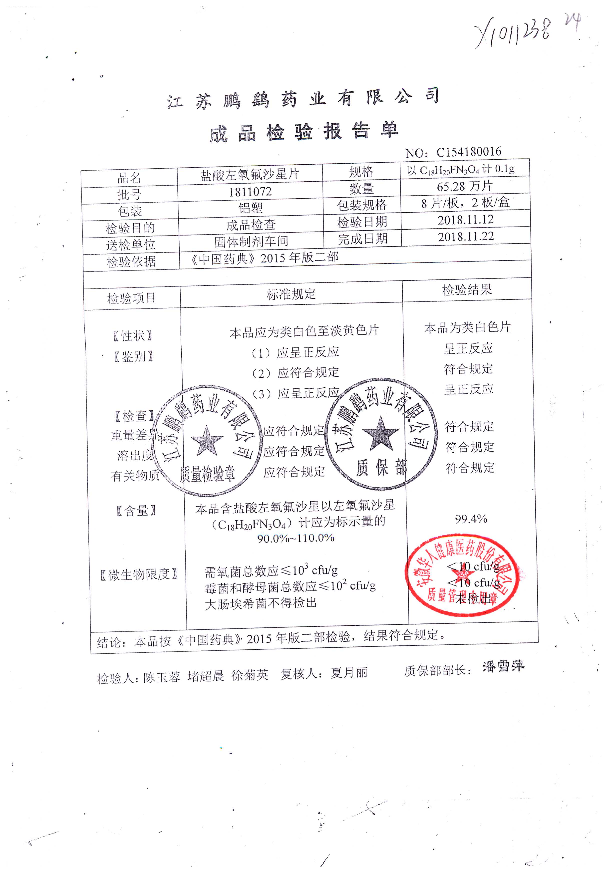 | 鹽酸左氧氟沙星片 | 16s | 1803051 | 查看詳情 |