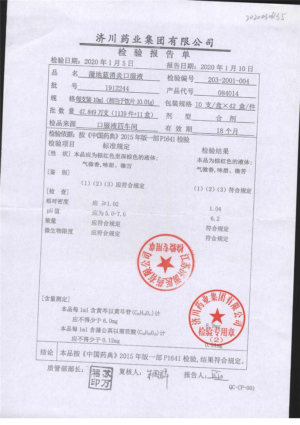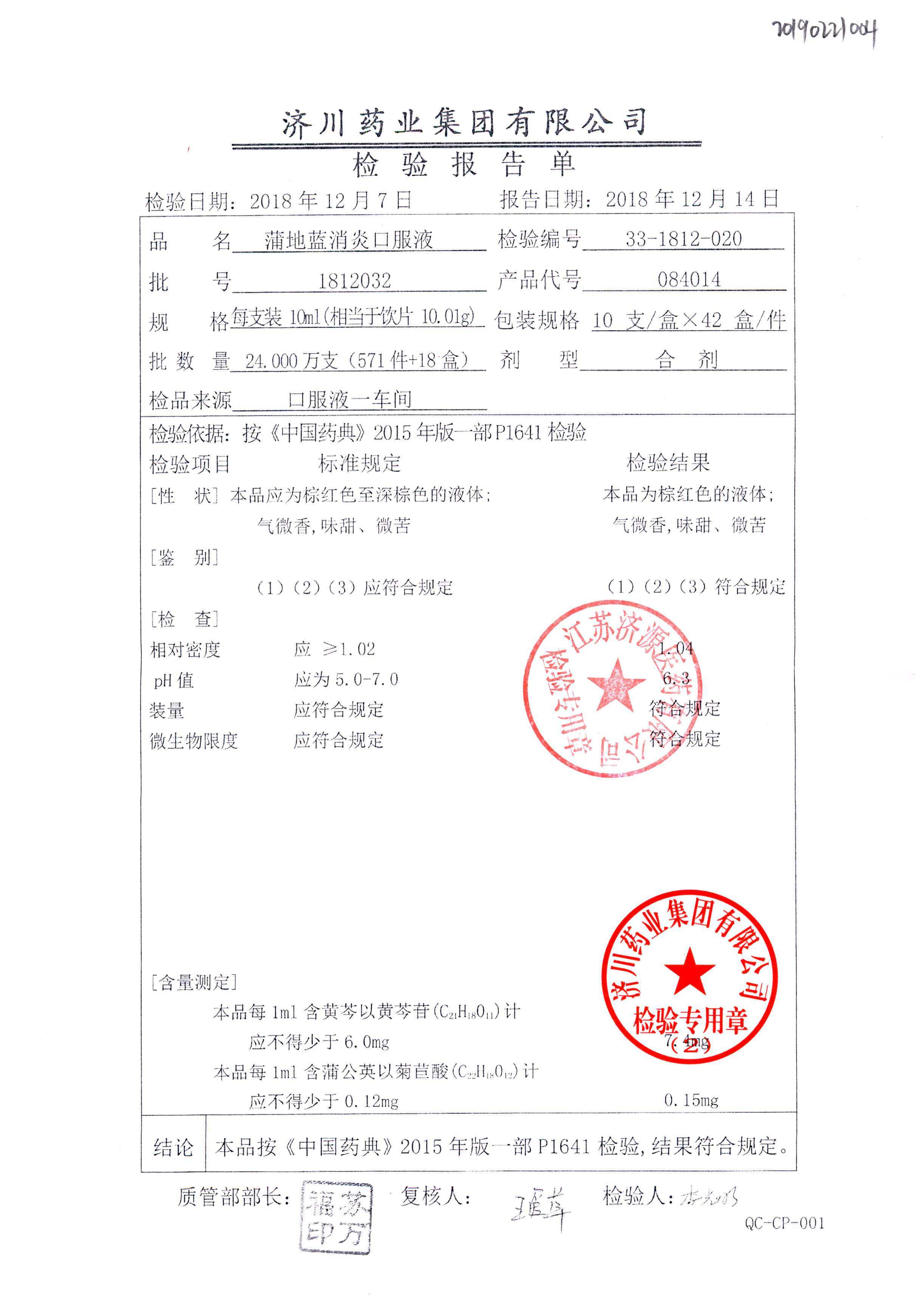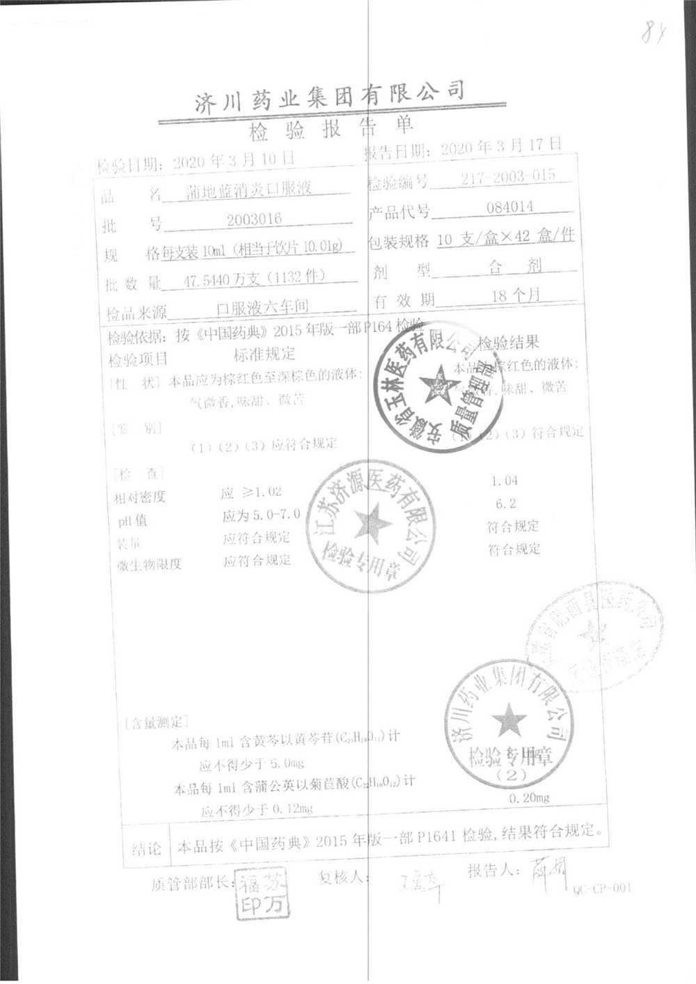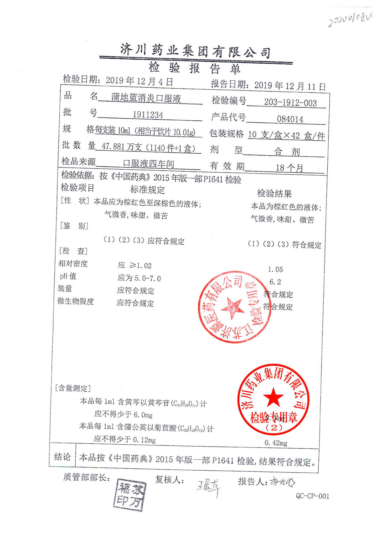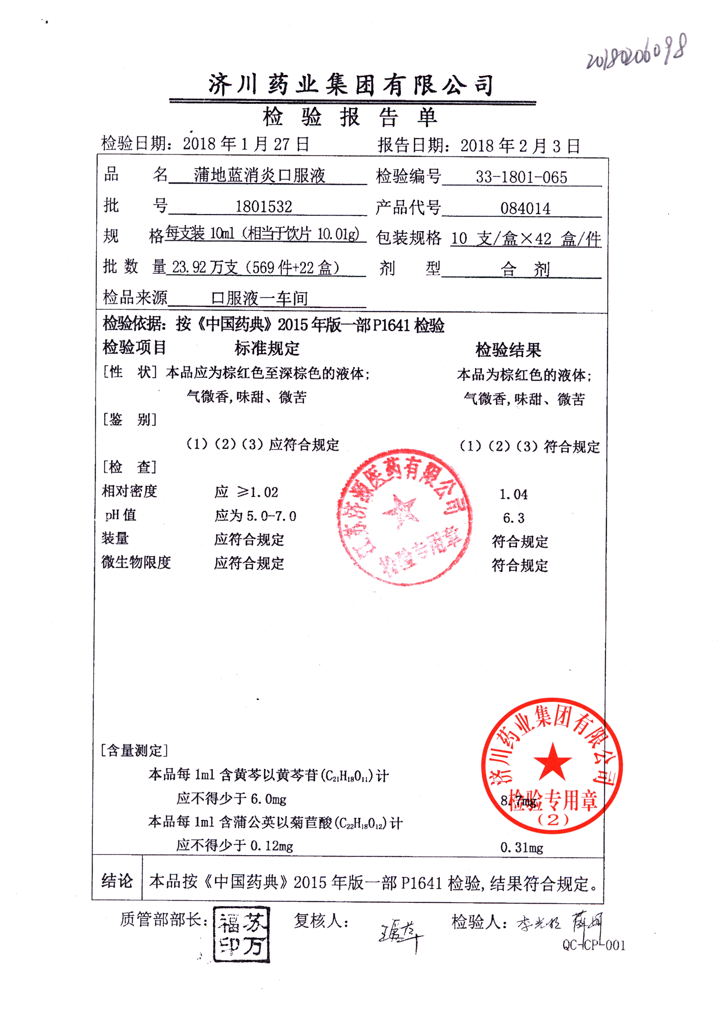 | 蒲地藍消炎口服液 | 10ml*10支 | 1805A74 | 查看詳情 |